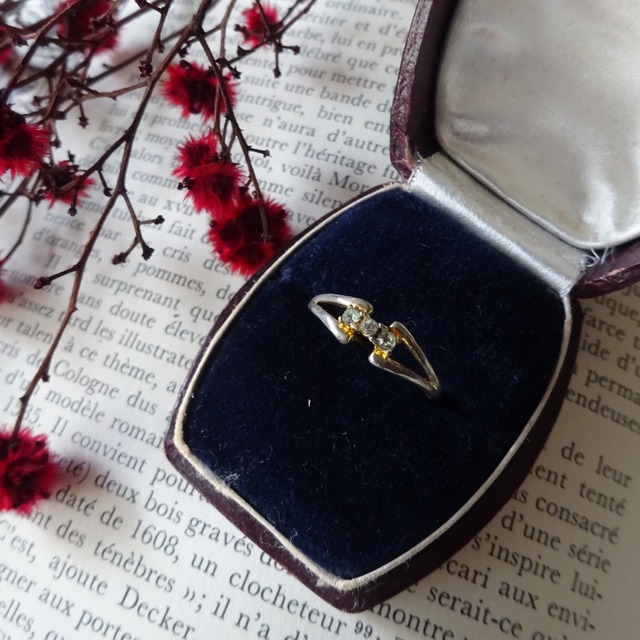 細身でクリアの石が3つ並んだ上品な一品 モチーフにかけて太くなるデザインなので指を細く見せてくれてスッキリした手元を演出してくれます。 他の指輪と重ね付けしても邪魔にならないデザインなので使いやすいです。 サイズ(cm) 13号 内径: 1.7 状態 使用感あり 素材はおそらく金メッキで、ところどころ擦れて変色しています。 ※当店で扱っている商品は全てがセカンドハンドです、返品・交換は致しかねますのでよくご検討頂いた上でのご購入を強くお勧め致します。お手元に届いた際、ガッカリされないよう努めて参りますが、モニター環境や、人の手での検品となります為認識の誤差が生じてしまうかもしれません、気になる方はご購入前にお気軽にお問い合わせくださいませ。
