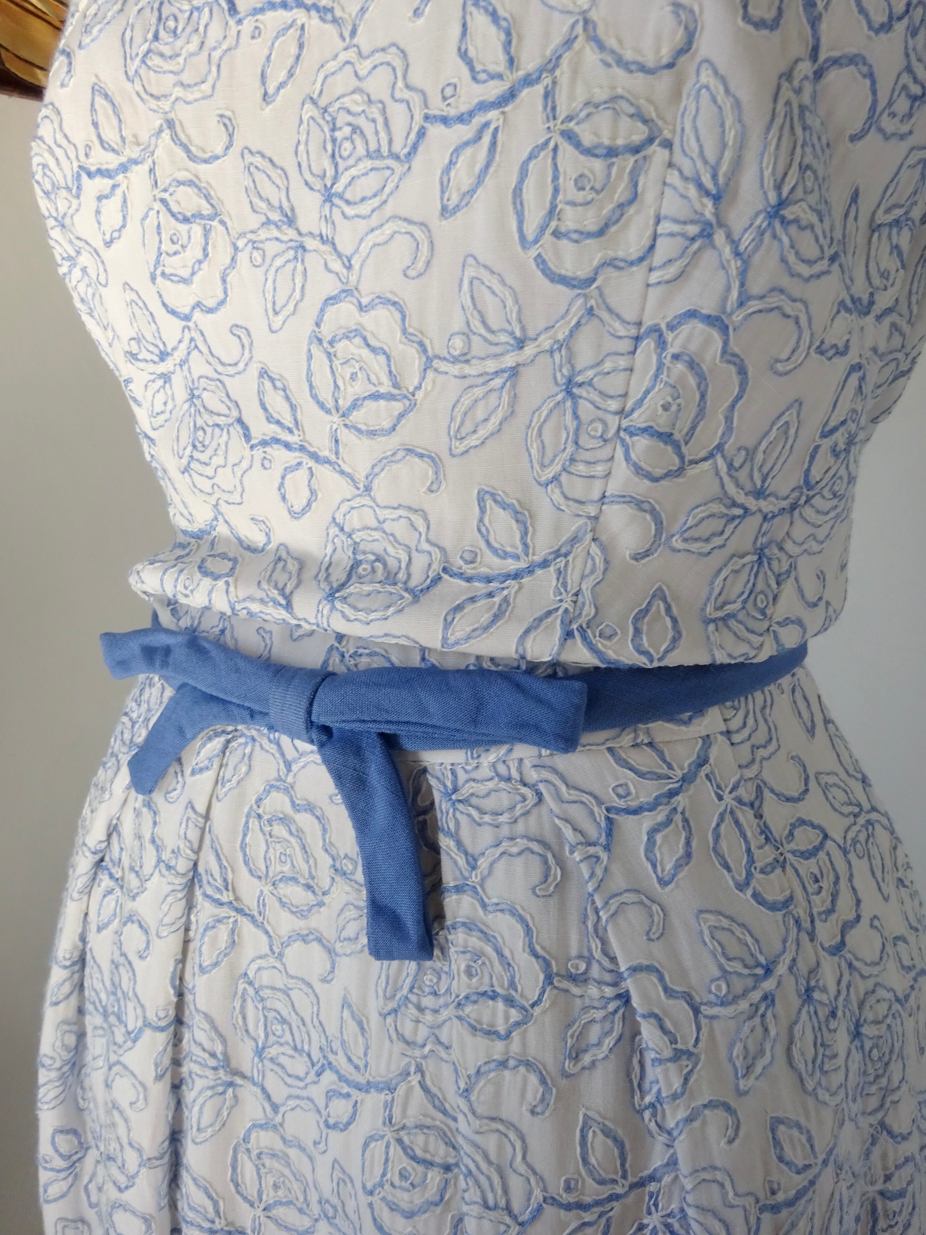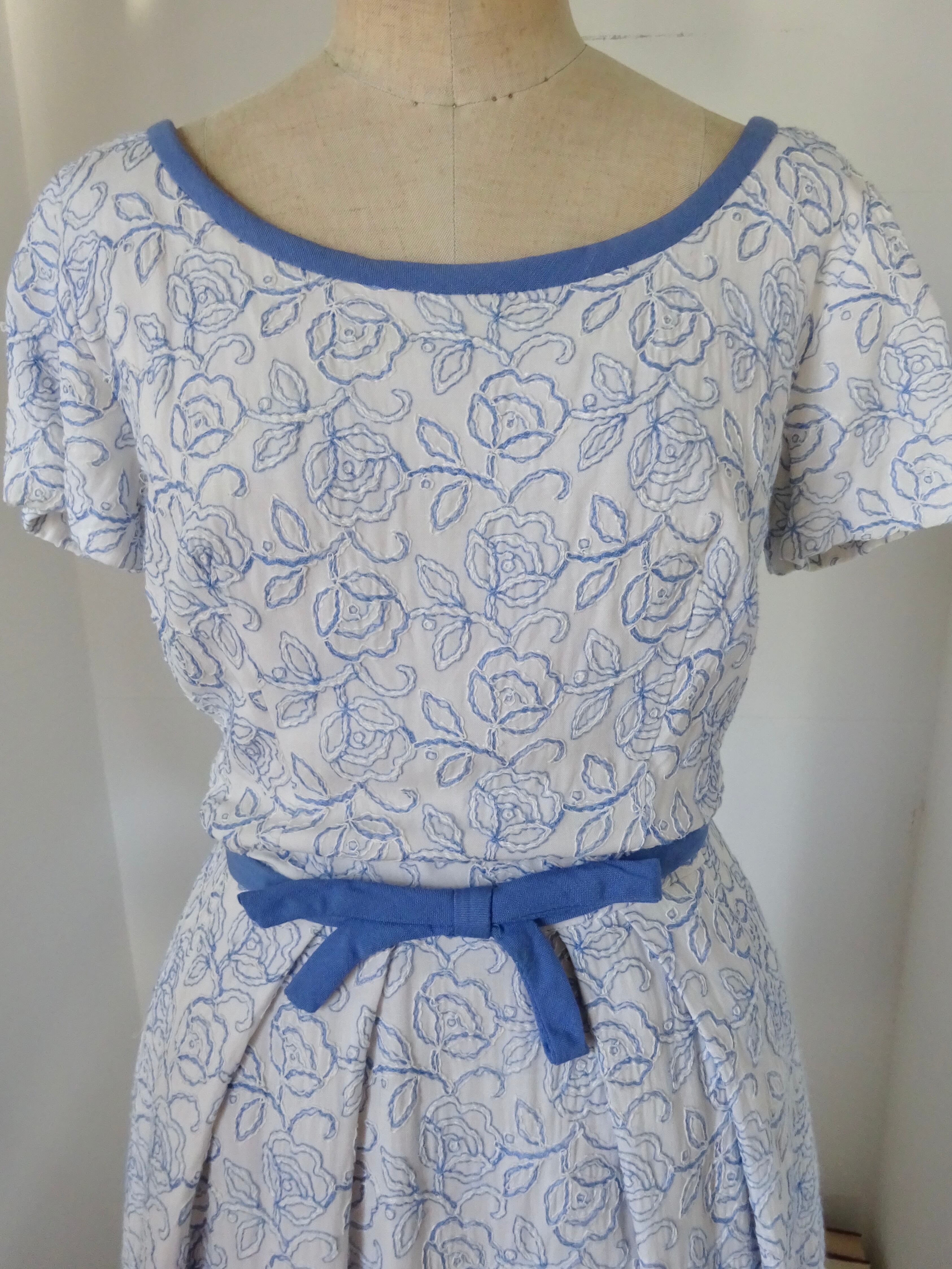 全体に刺繍が施された贅沢なテキスタイルを用いて、立体的な丁寧な作りのワンピース