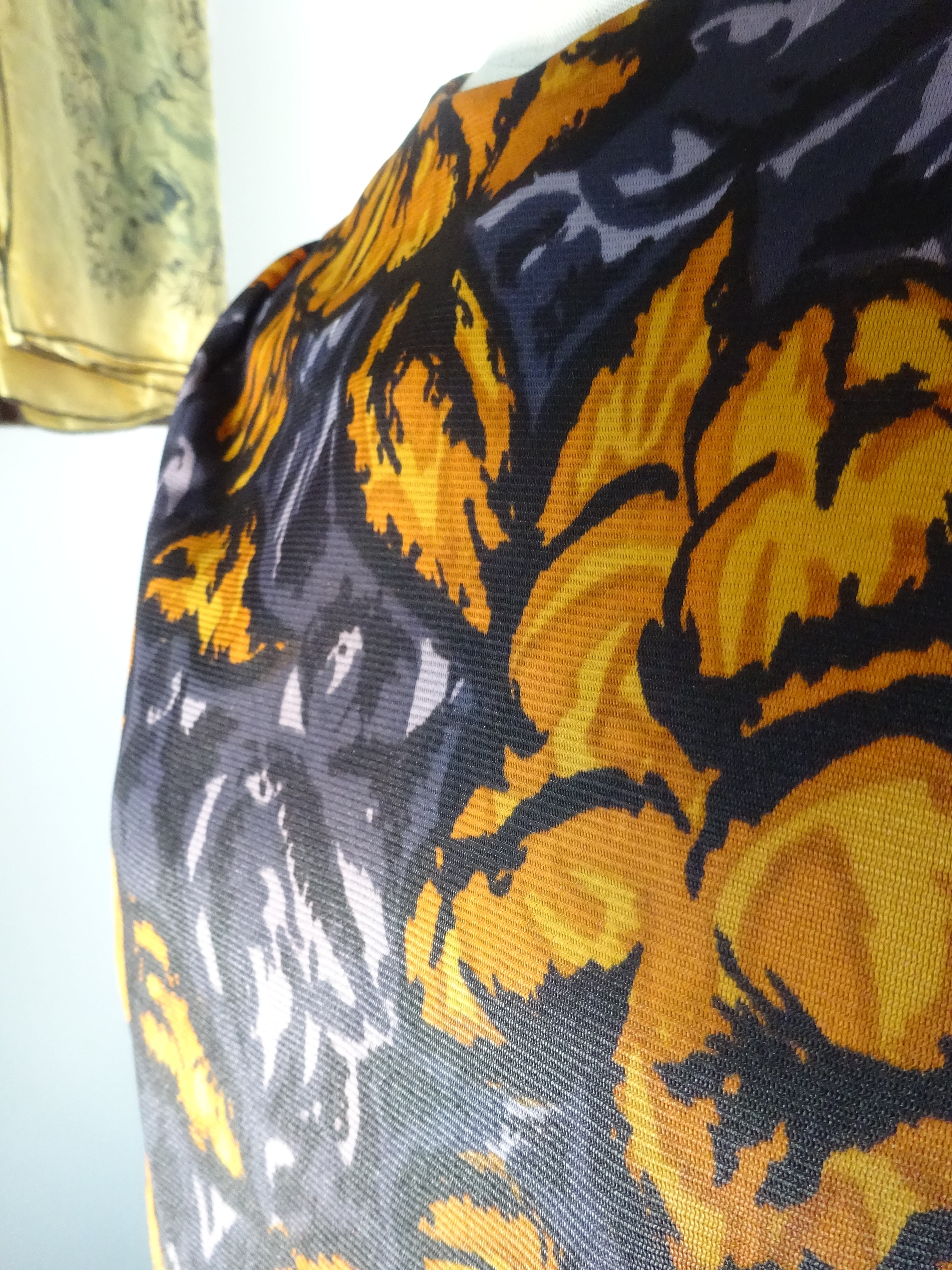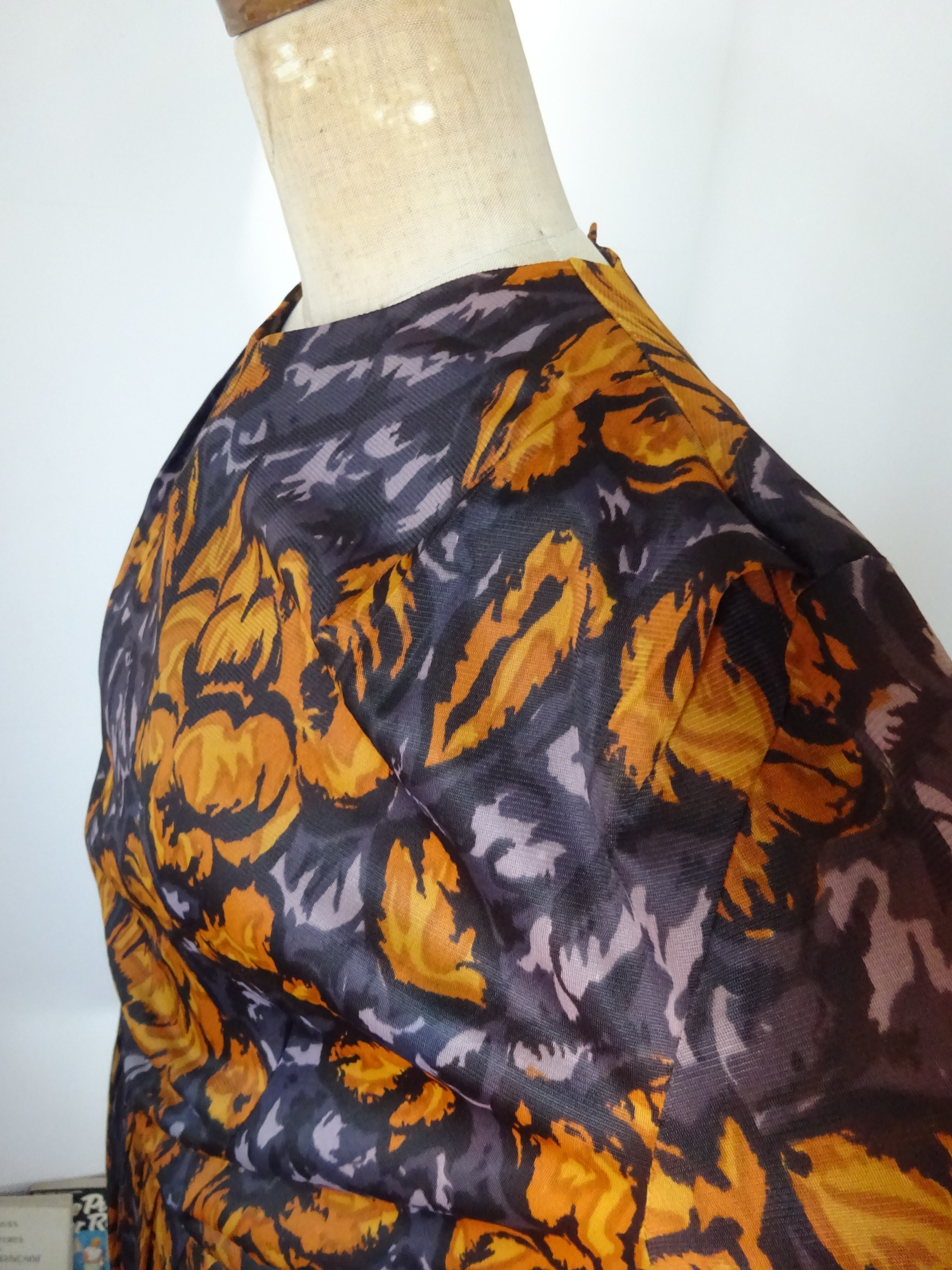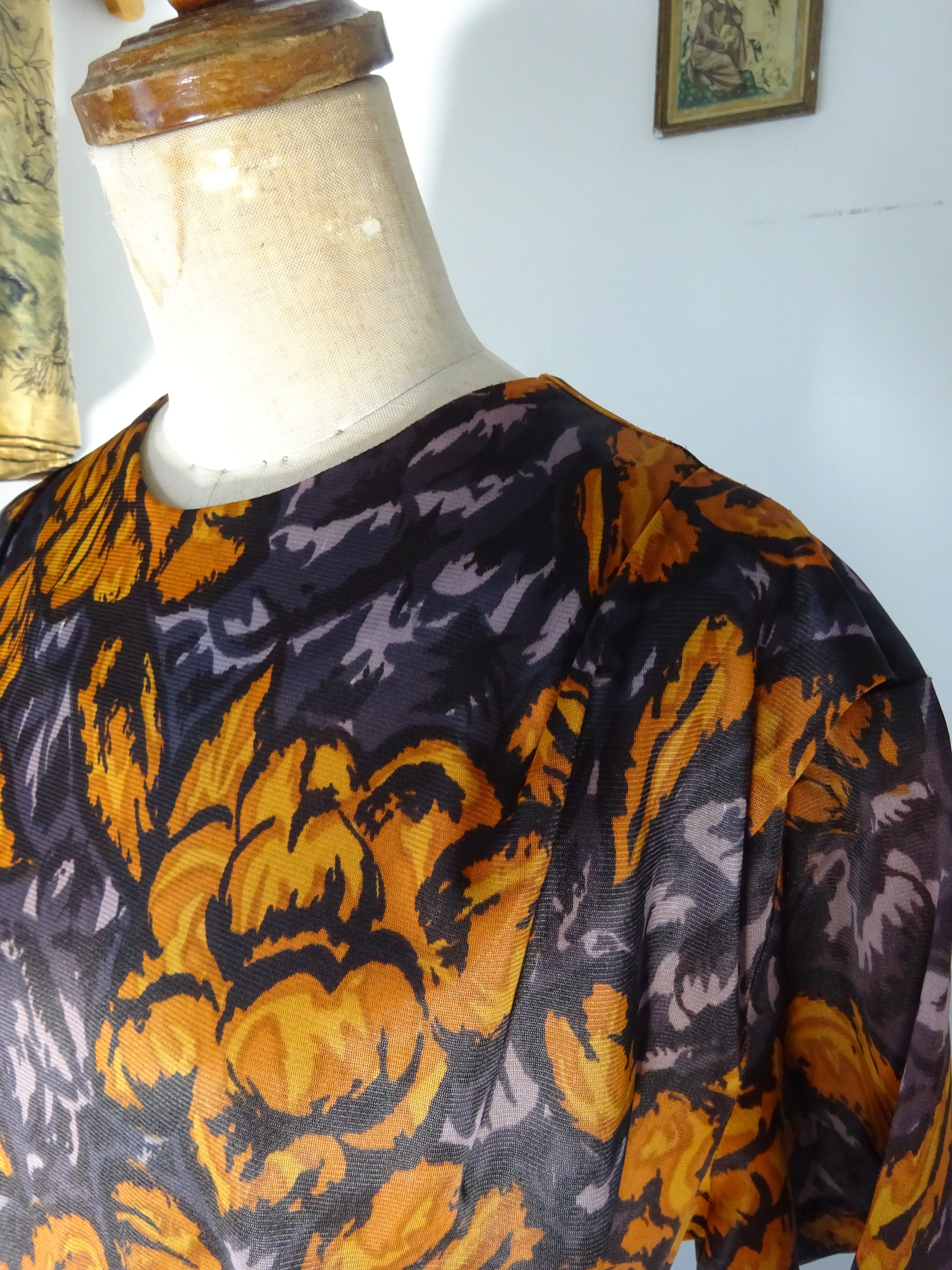 大きな薔薇柄が目を惹く薄手のテロっとしたワンピース