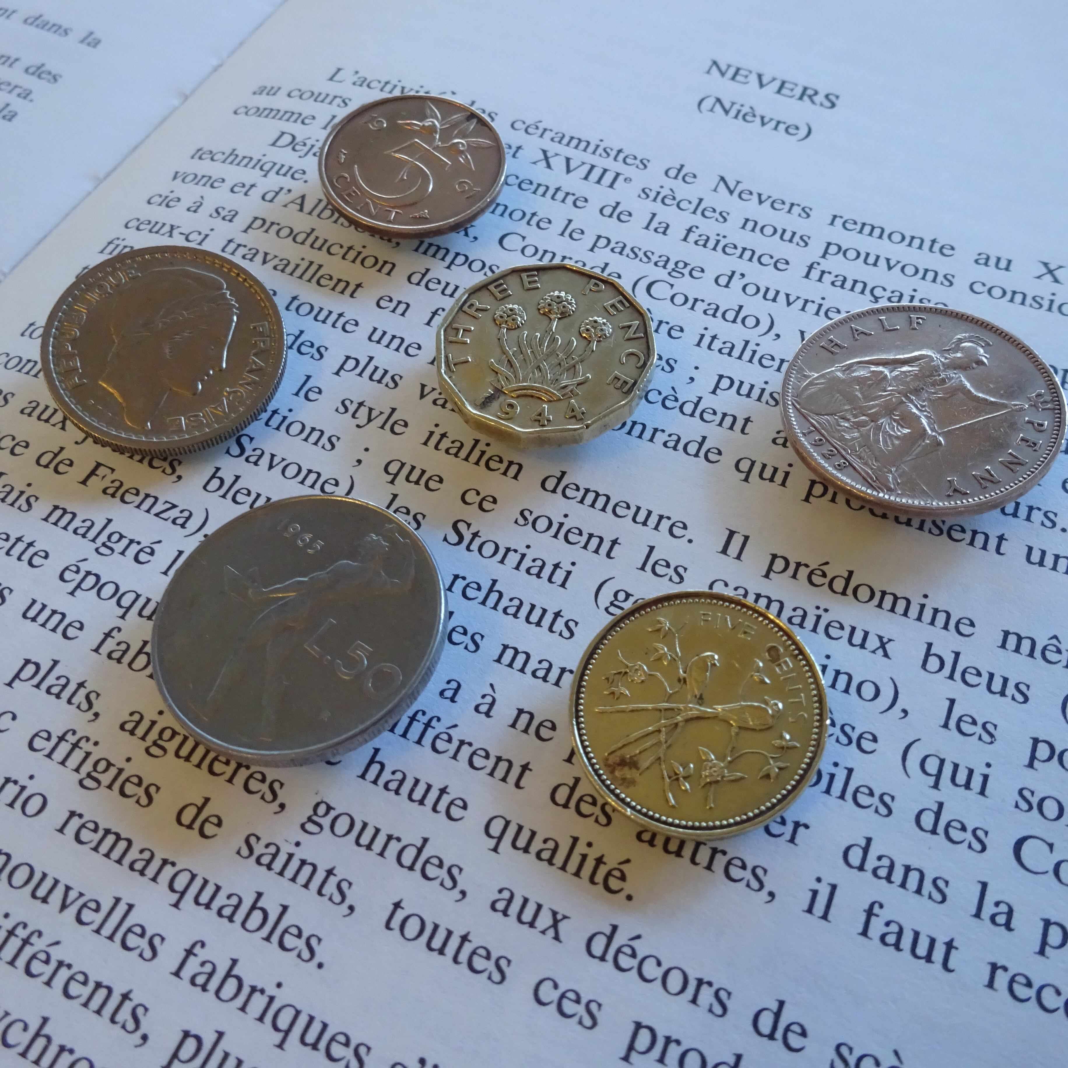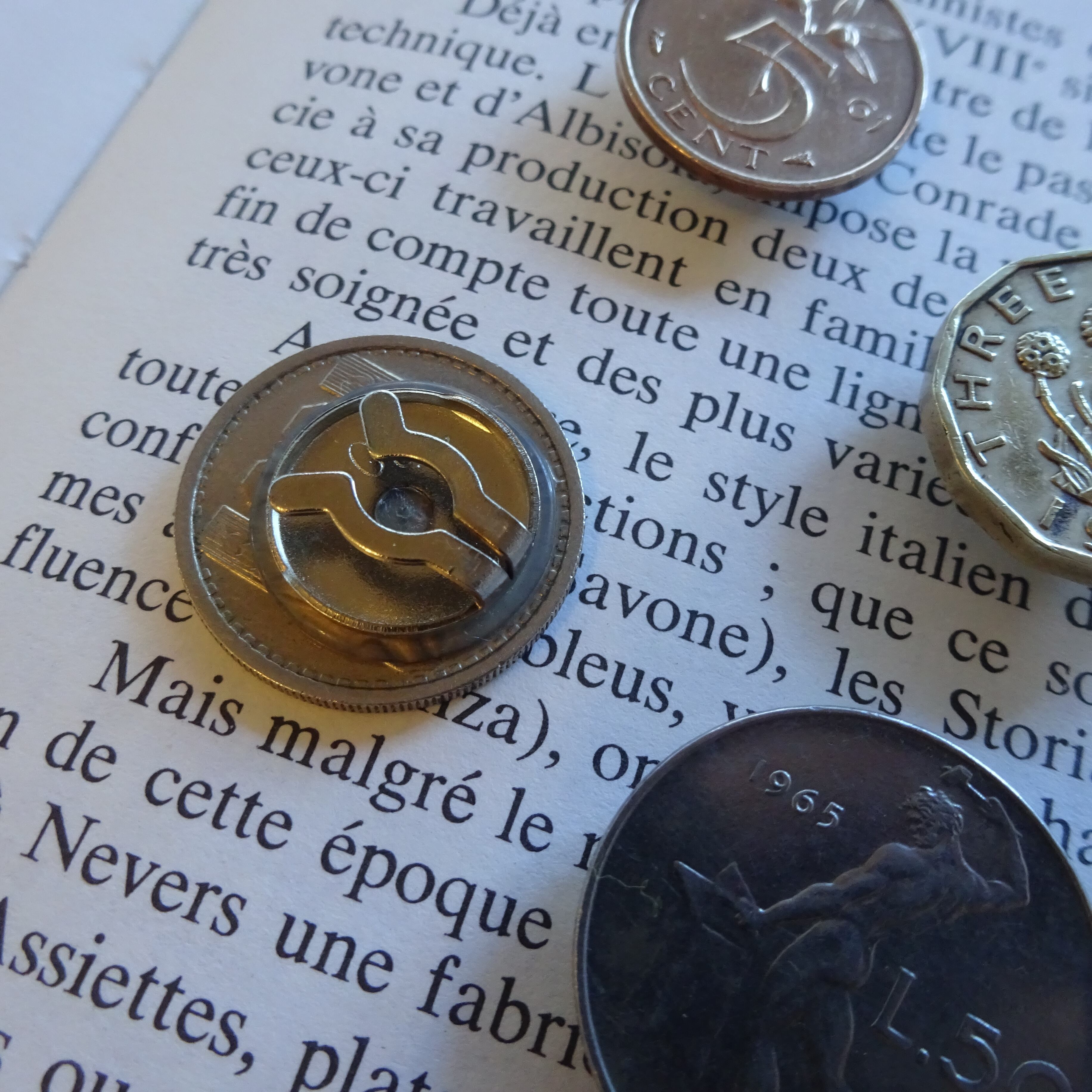 イギリスやフランス、オランダ、イタリアの古い硬貨を使ったボタンカバーです。