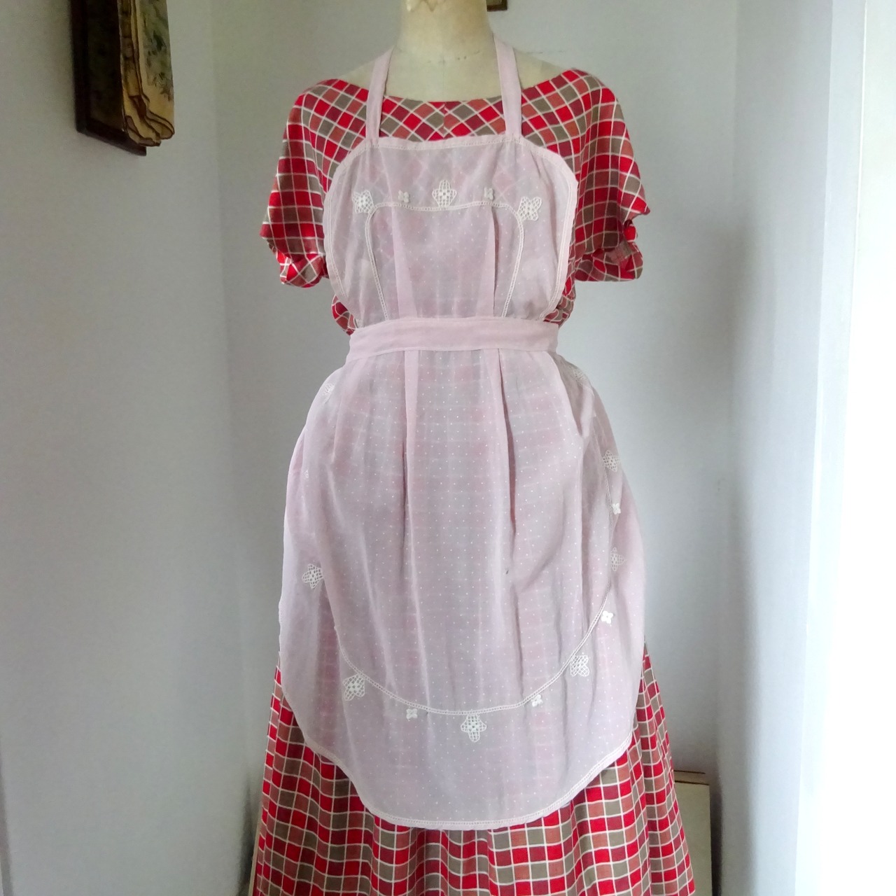 ヴィンテージエプロンの中でもエレガントで可愛らしく、上品なタイプです。