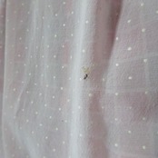 ベビーピンクに白いドット、レースの装飾が可愛らしいシルクオーガンジーの古いハンドメイドのエプロンです。