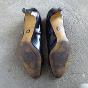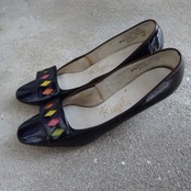 黒のエナメルにダイヤ柄のパンプス