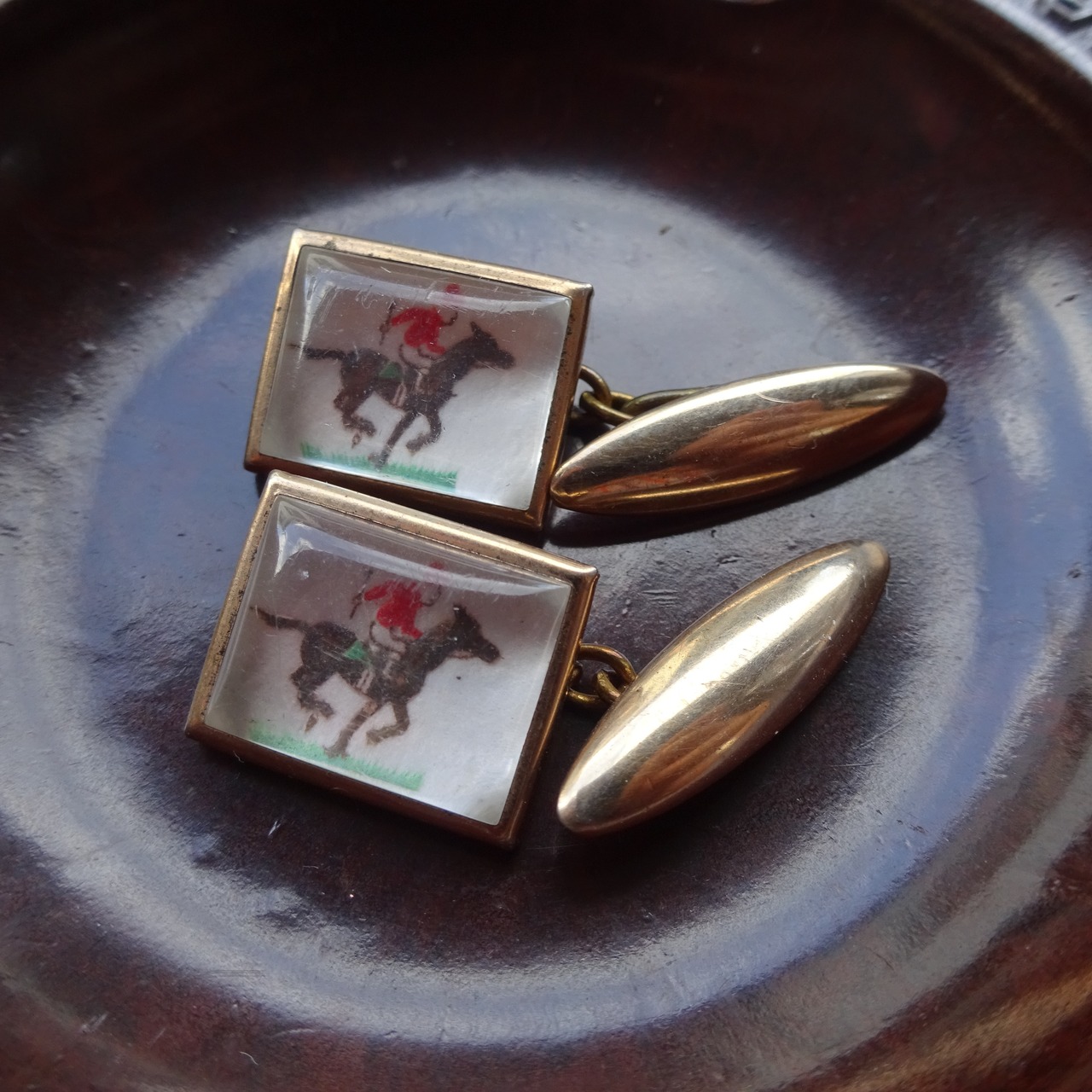 英国の紳士服を扱うヴィンテージショップなどで時折目にする乗馬シリーズのカフリンクス