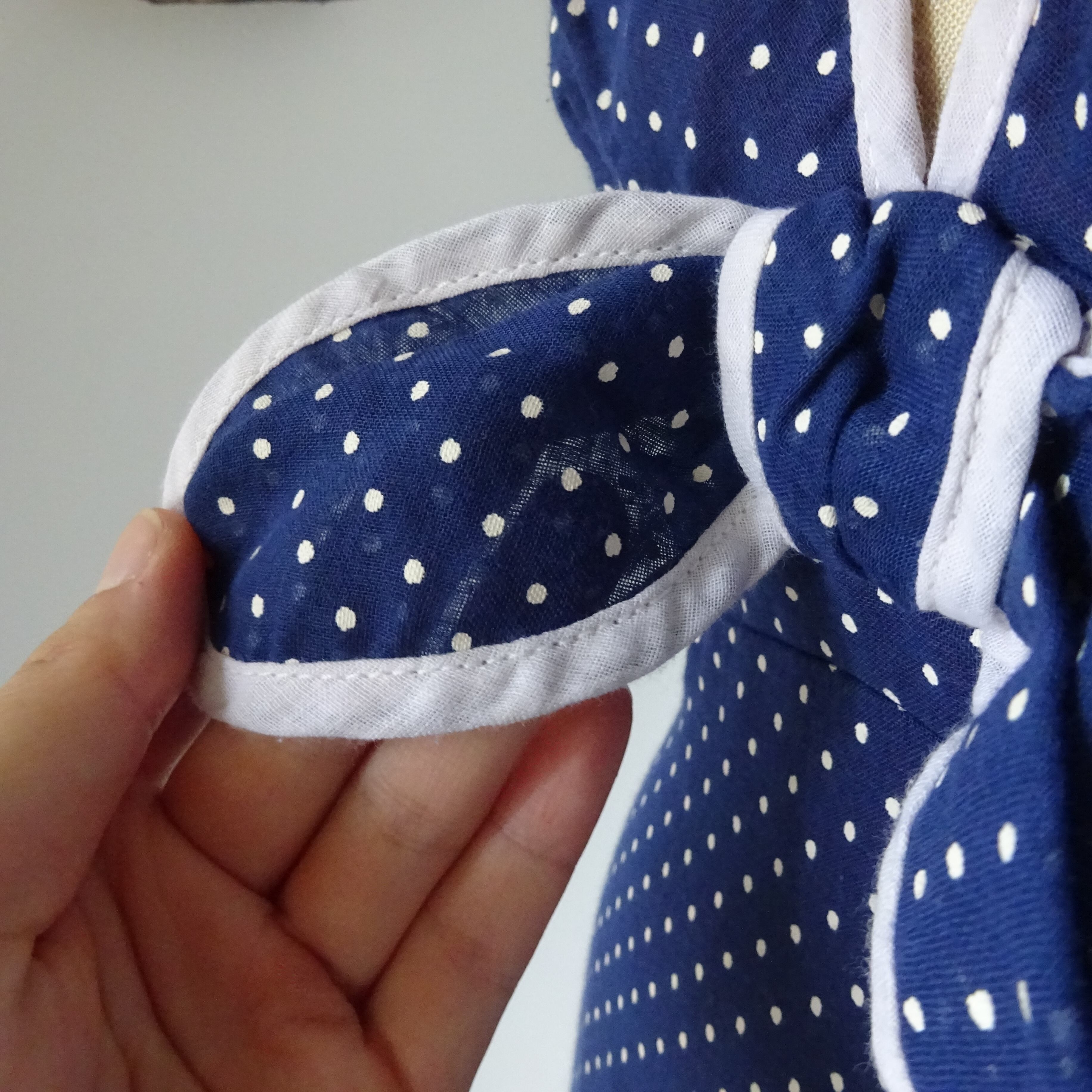 ガーゼのような薄手の生地に裏地が貼ってあり、フリルの透かしも楽しめます。