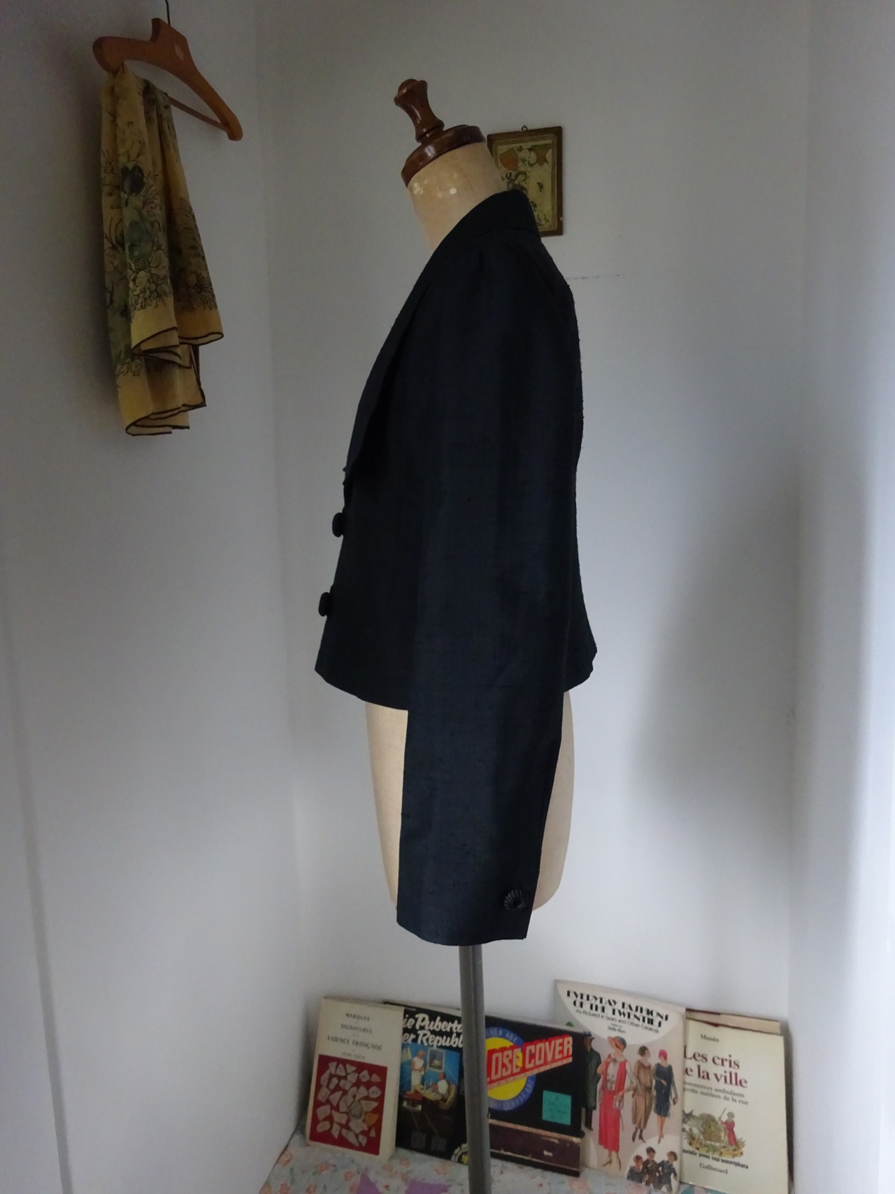 麻とコットンのような軽やかで張りのある生地で、曲線や立体感がとても素晴らしいワンピースとジャケットです。
