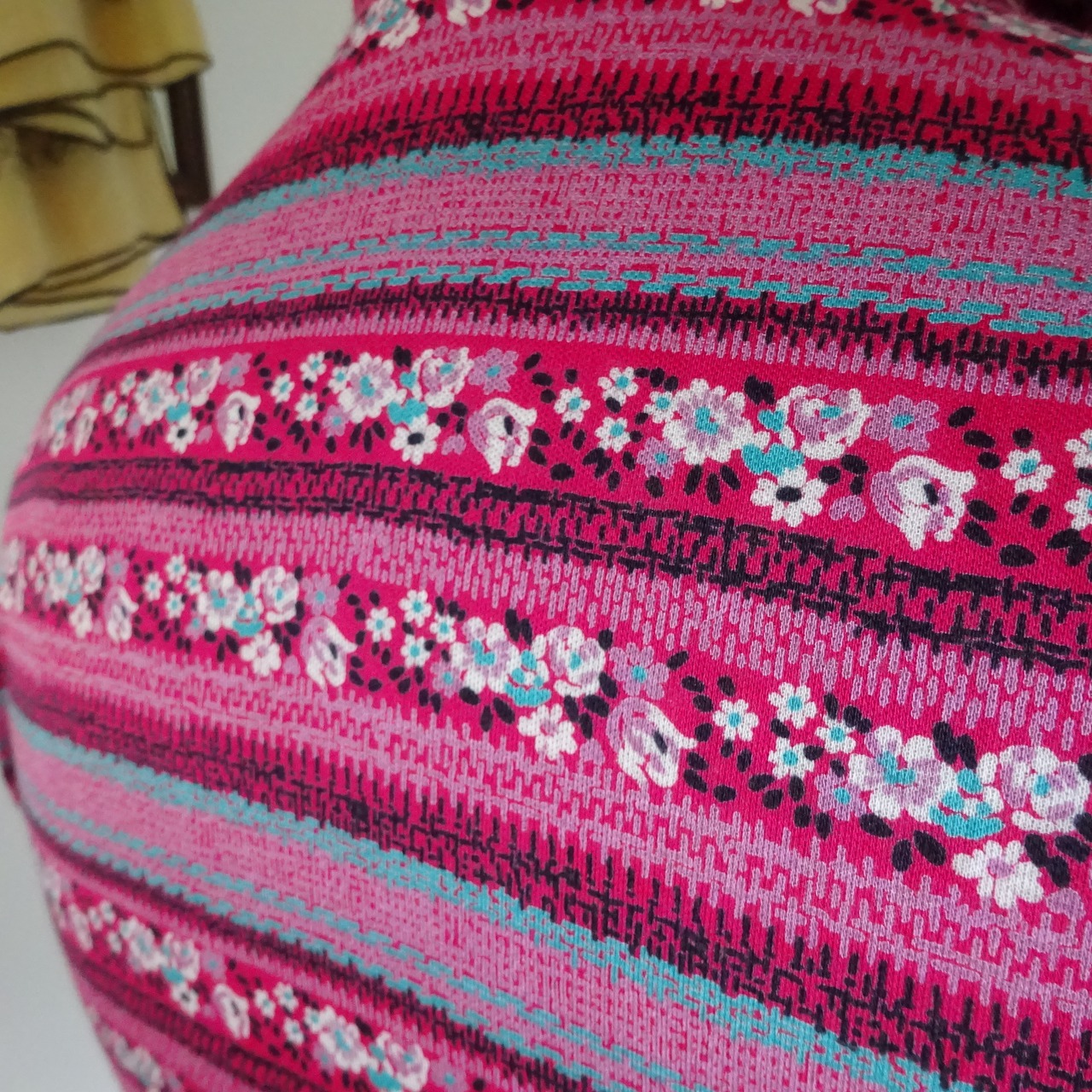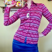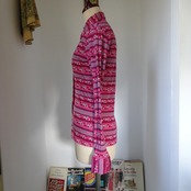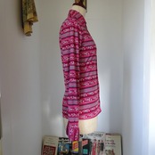 マゼンダピンクにターコイズブルーの色合わせがとても良いブラウス