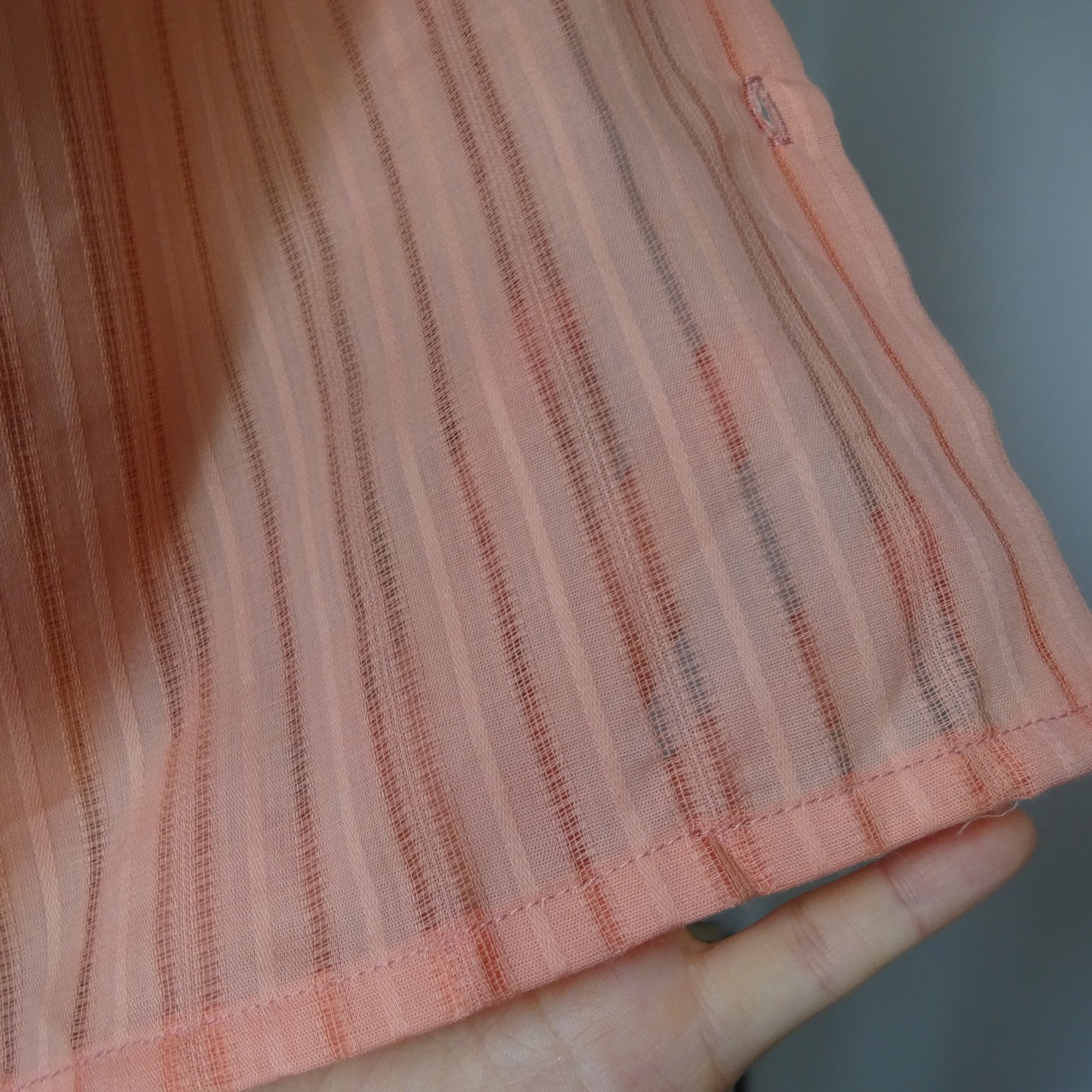 サーモンピンクの綺麗な色合いが目を惹くシャツ
