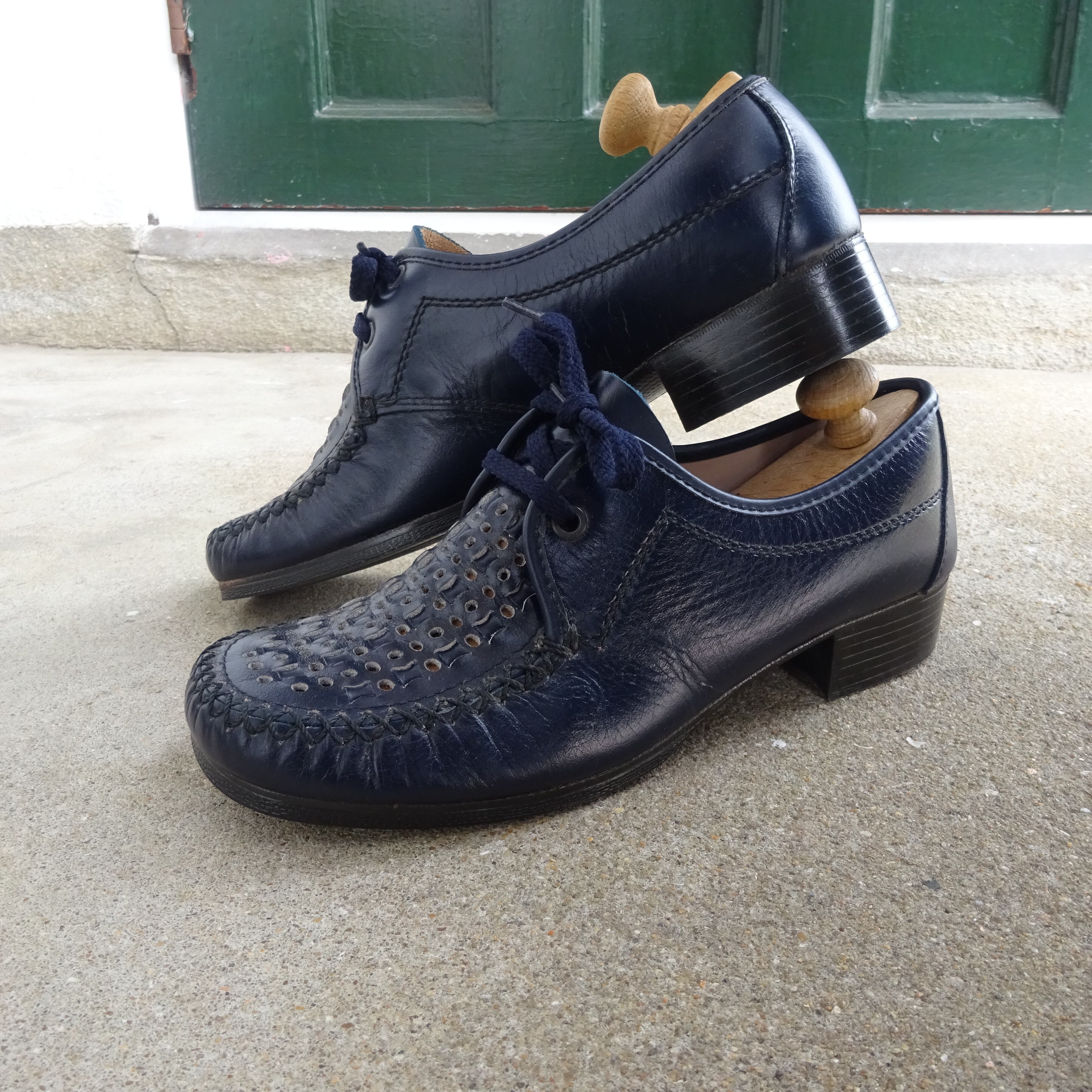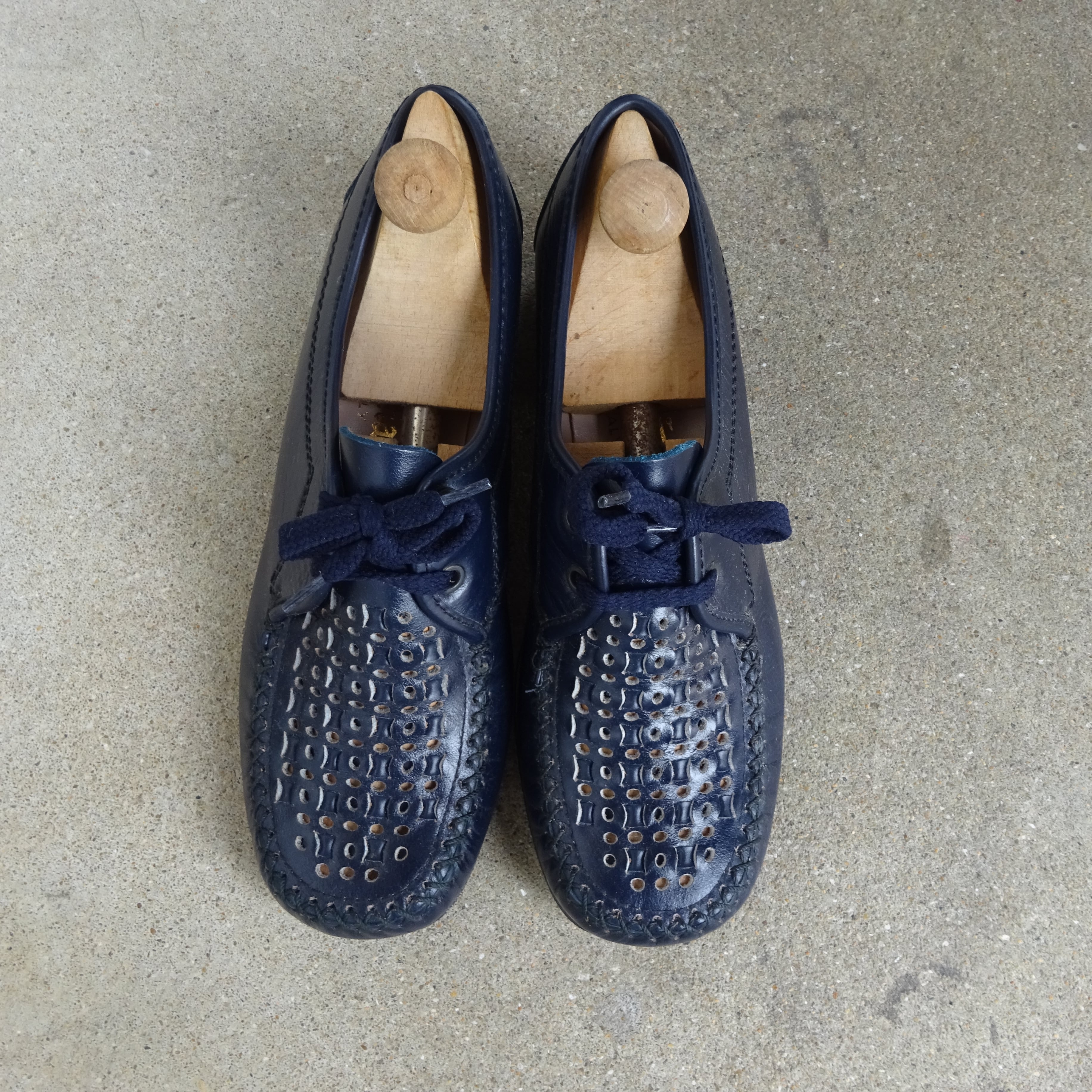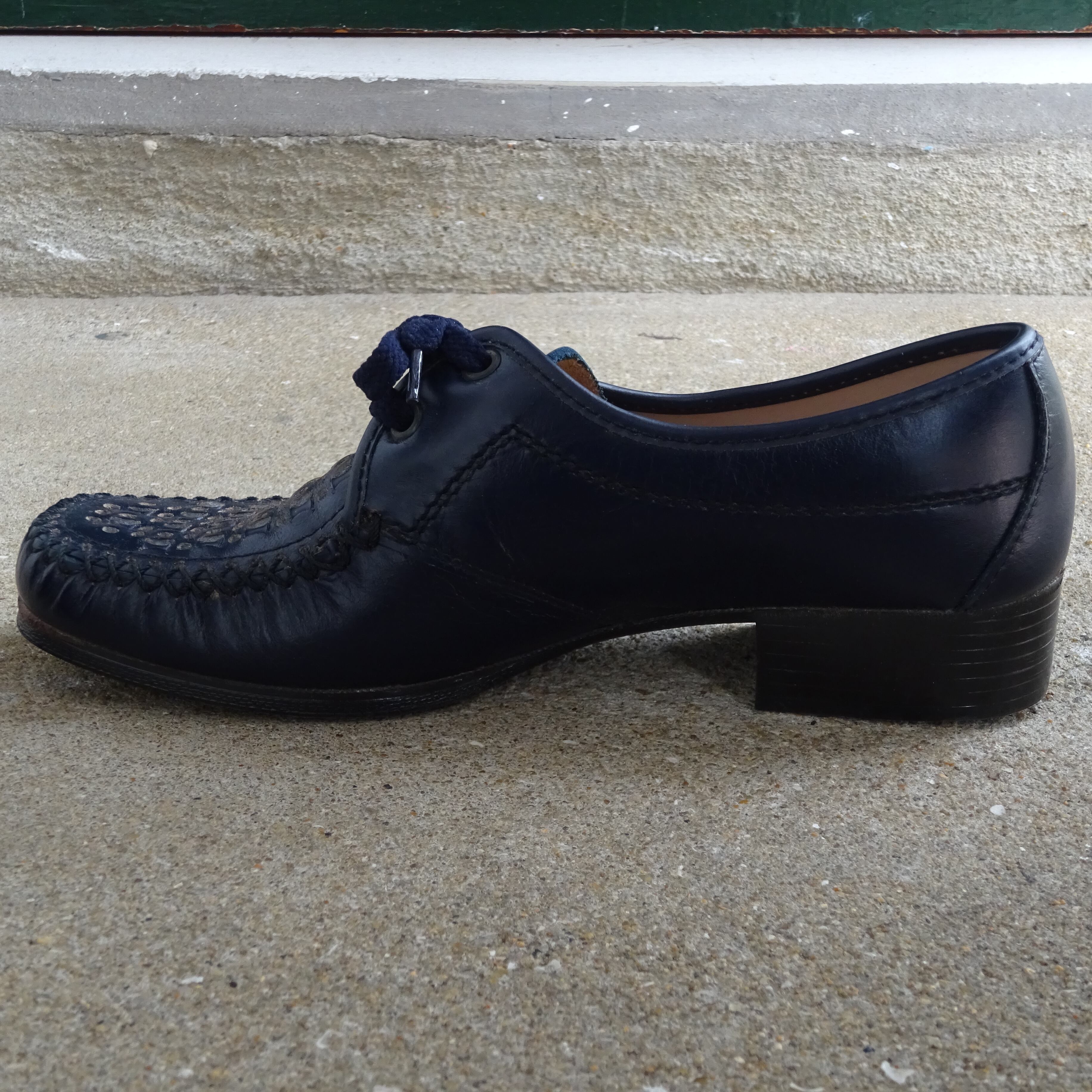 70年代の靴ですが、どことなく40年代っぽいエレガントさがありクラシカルスタイルから、プレッピーやトラッド、更にはベルボトムのサイケデリックまで幅広く合わせられる優れ物。