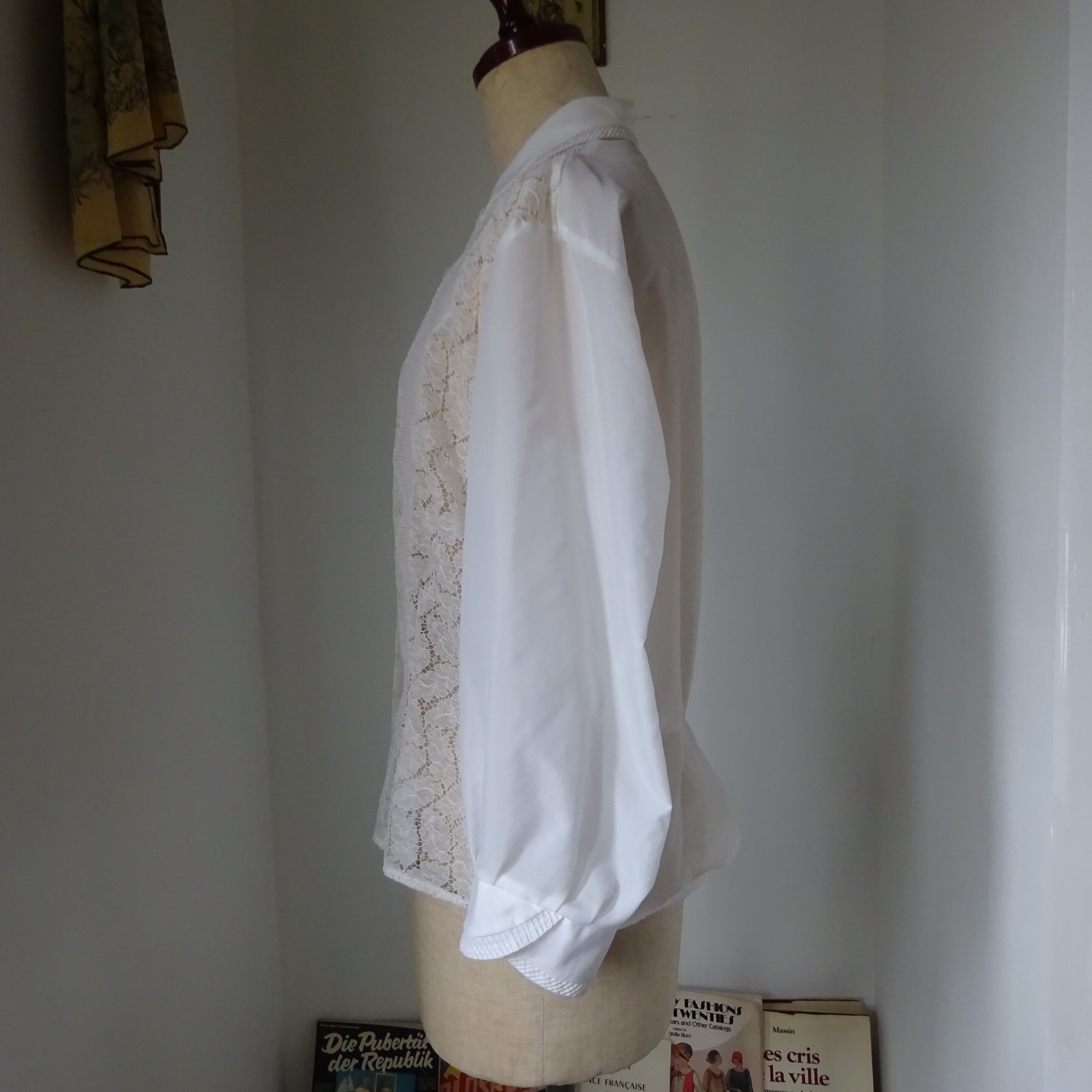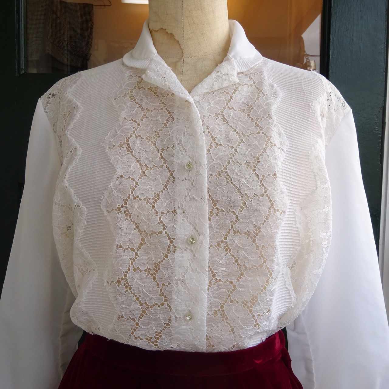 当時最先端だったであろうナイロン素材に、レースを掛け合わせたとてもエレガントなブラウス