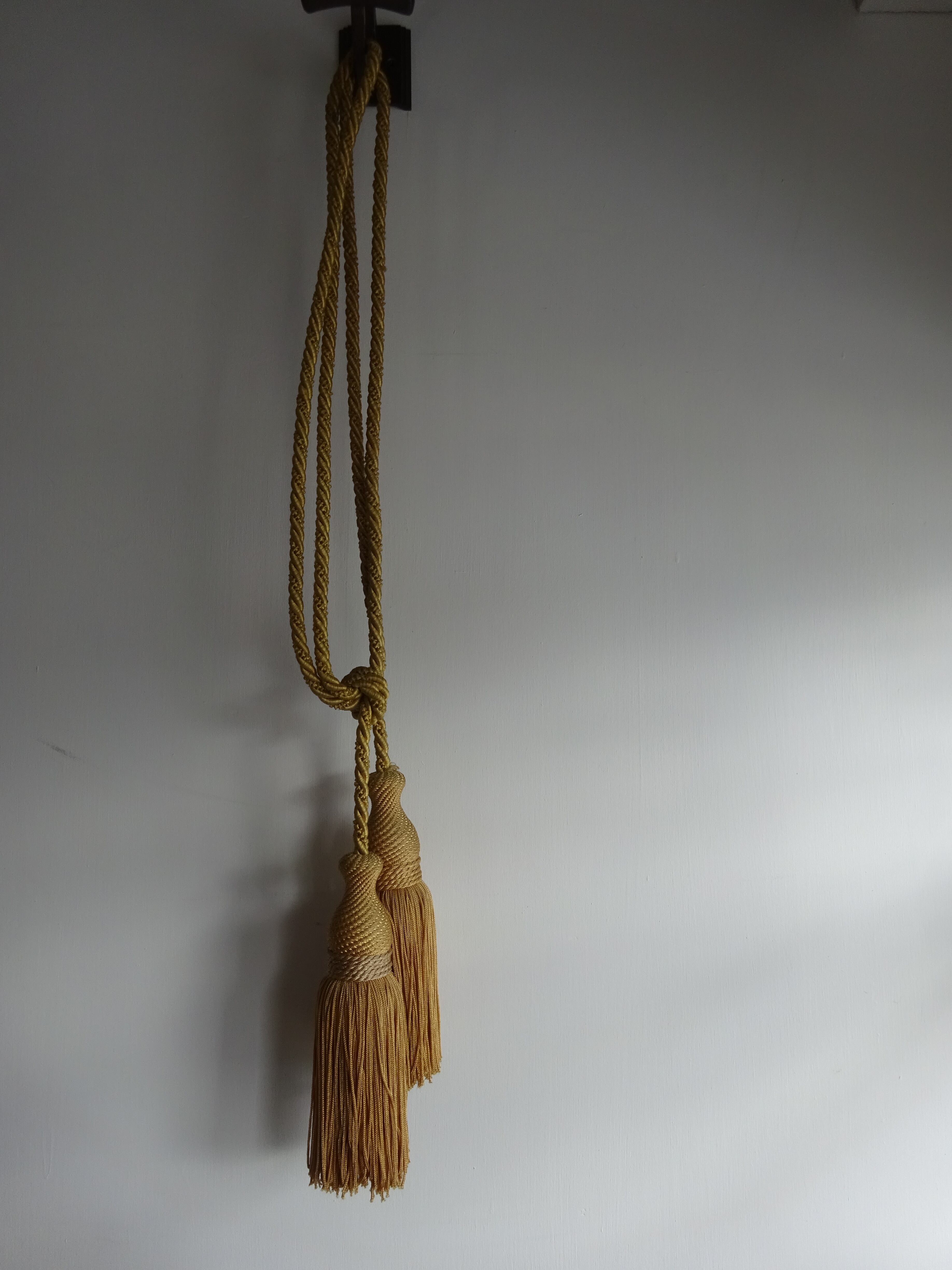 在庫が2つあり、カーテンに対で使うこともできますし、首から下げてネックレスのように、腰に着けてベルトのようにしても楽しめる一品です。