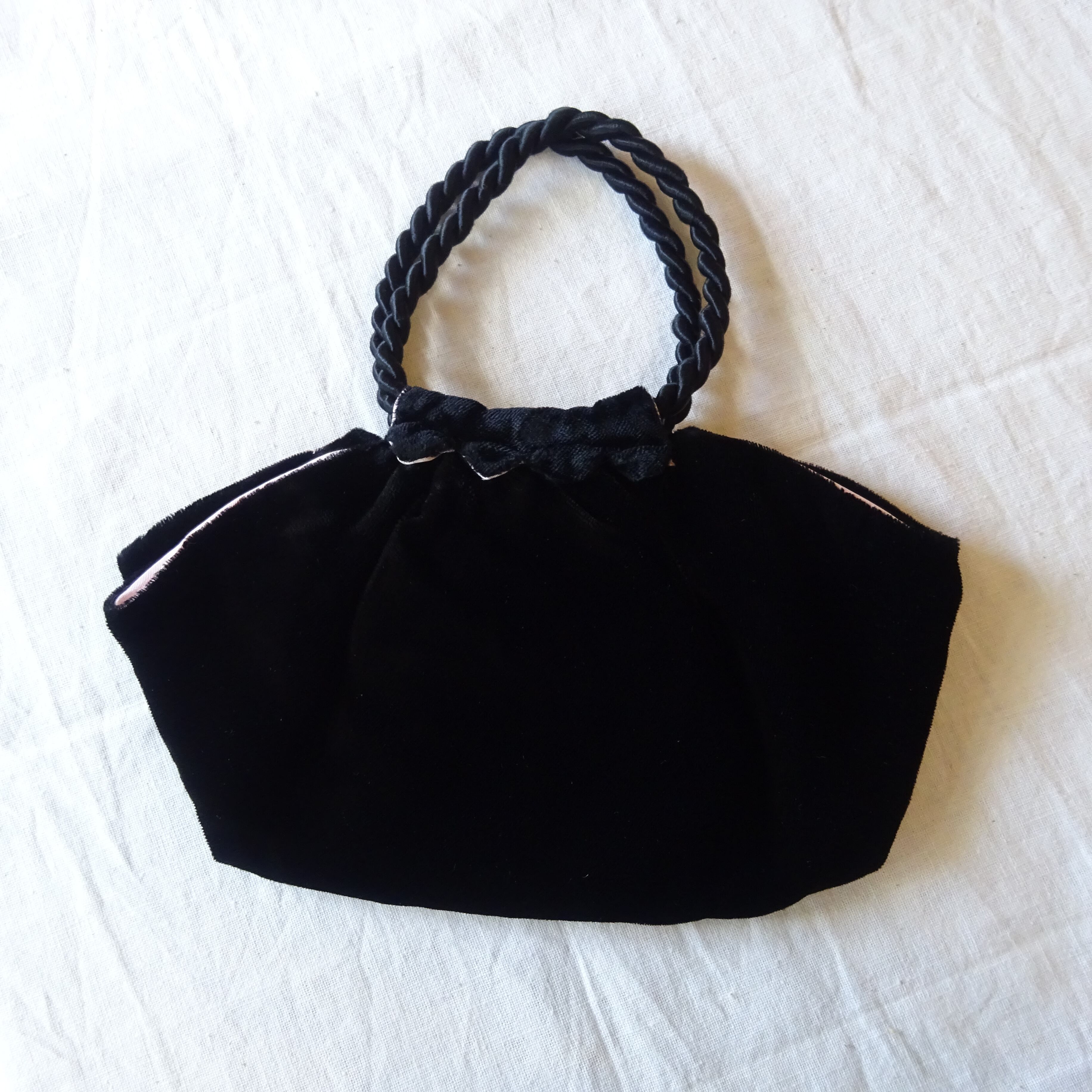 上質なヴィンテージのベロアにベビーピンクのグログランが使われた小さな鞄