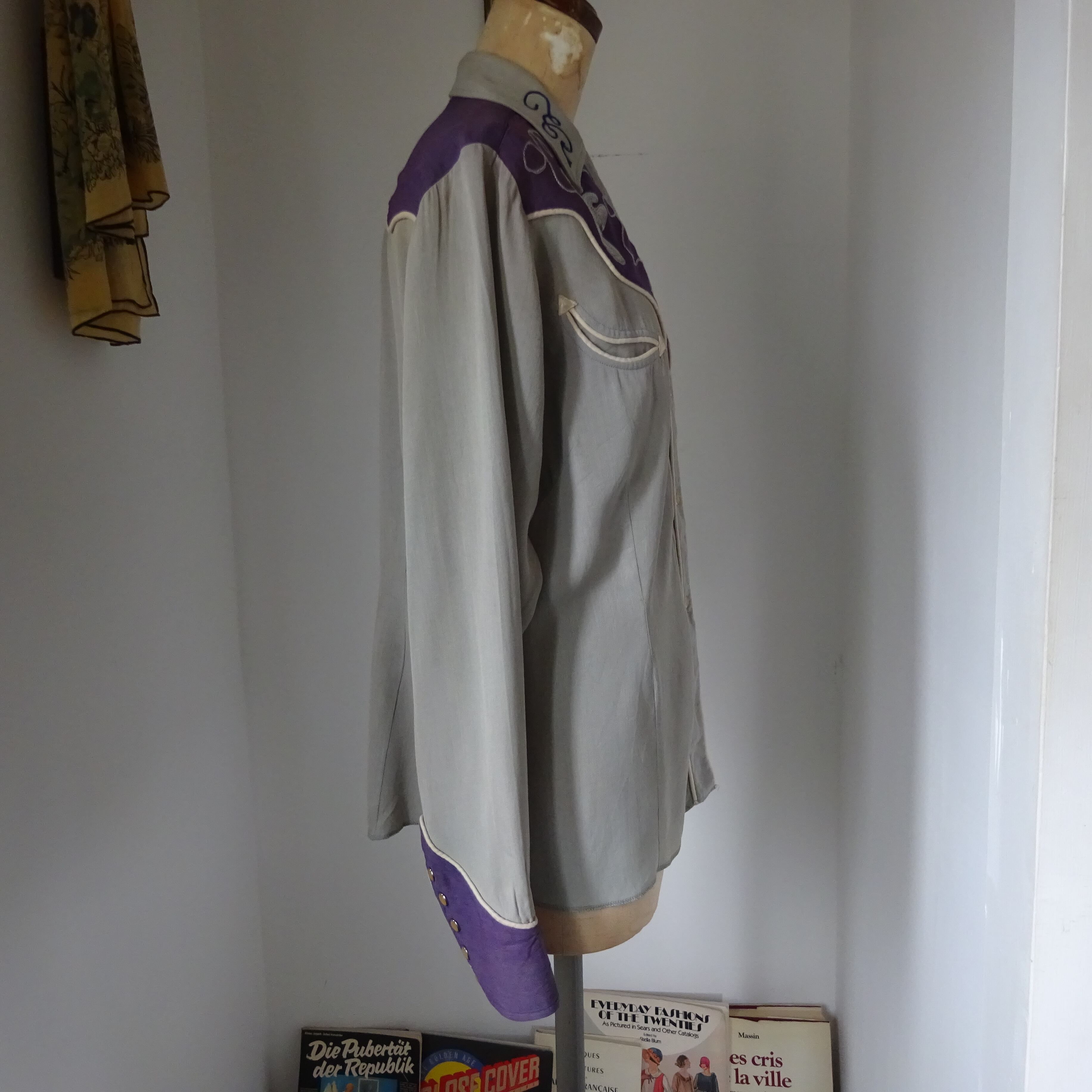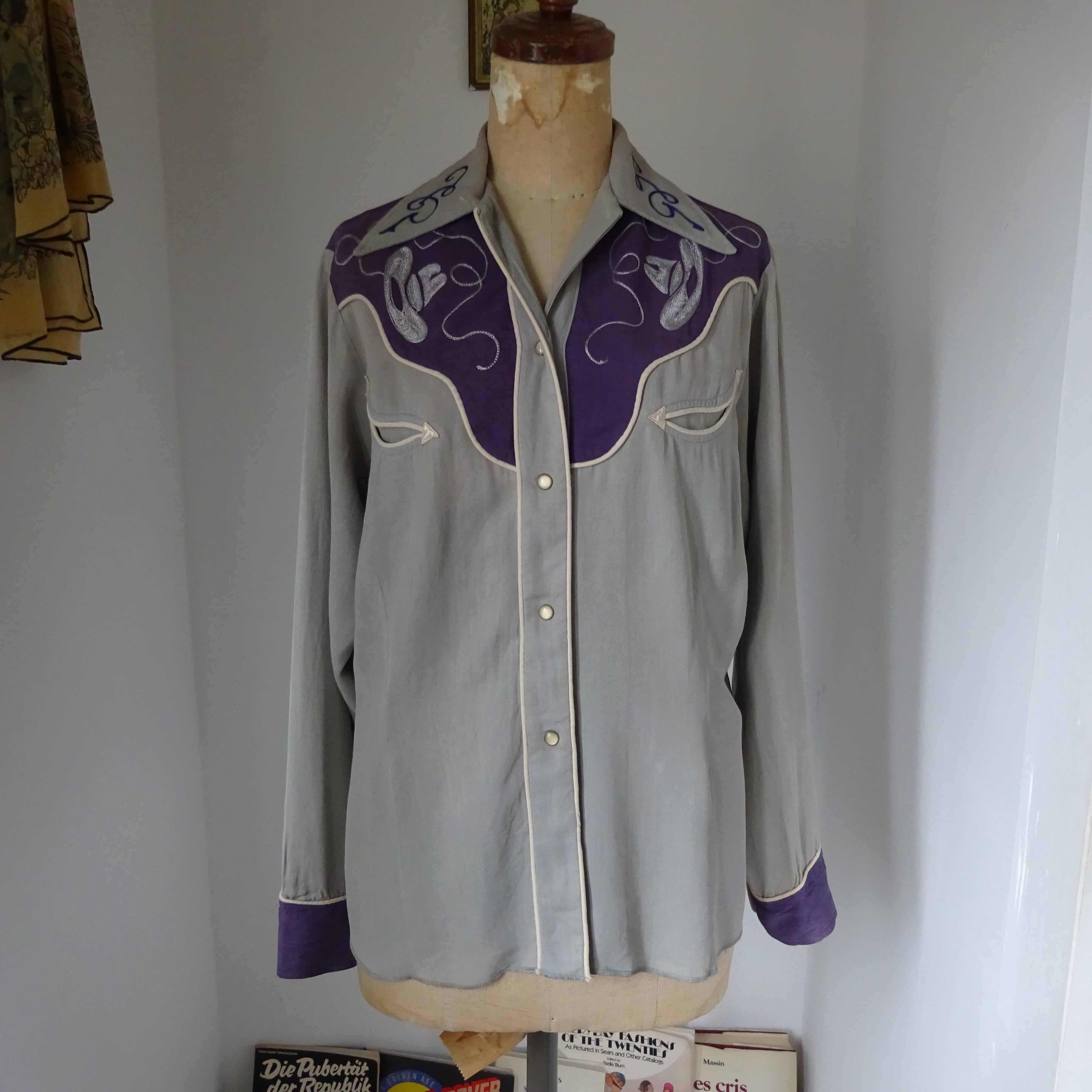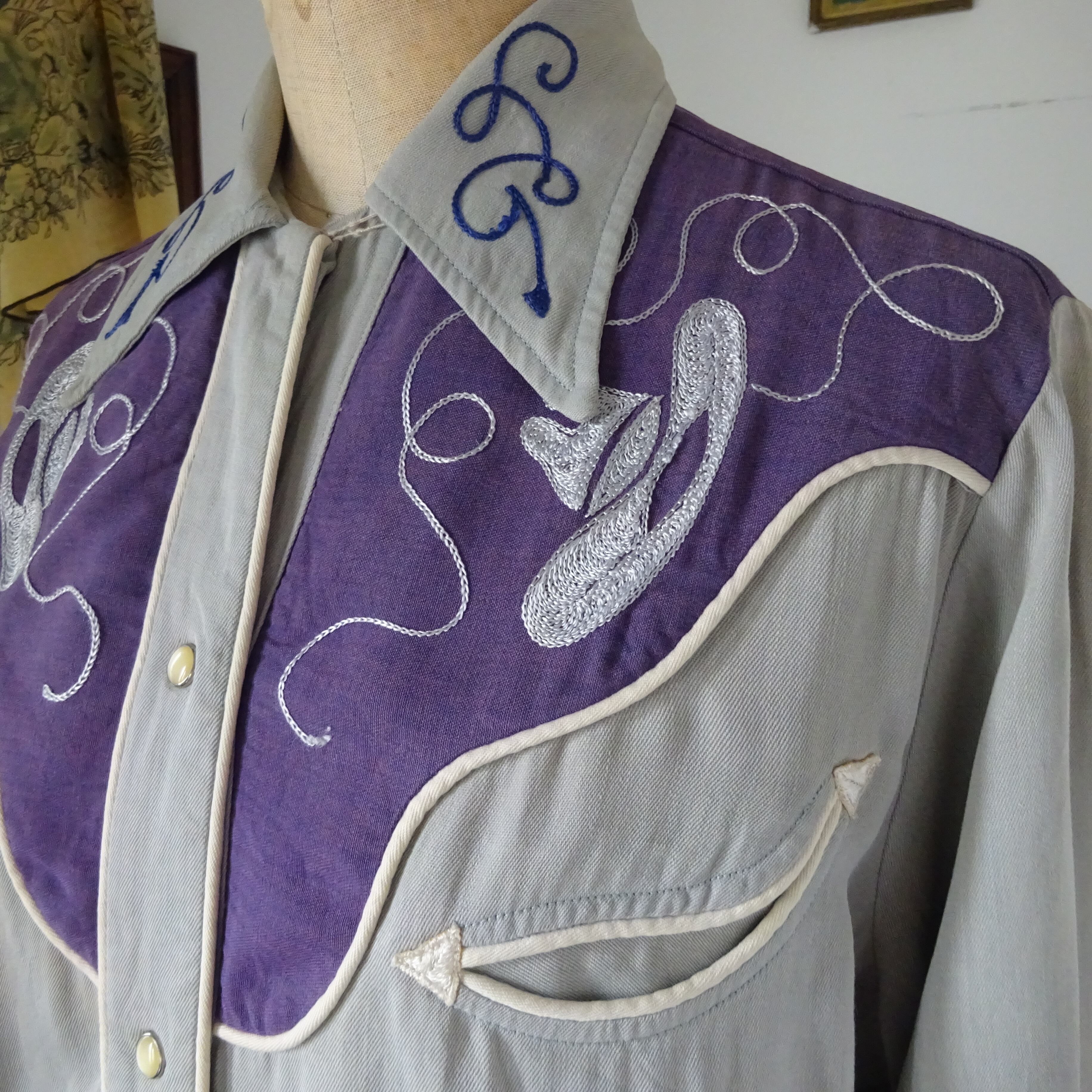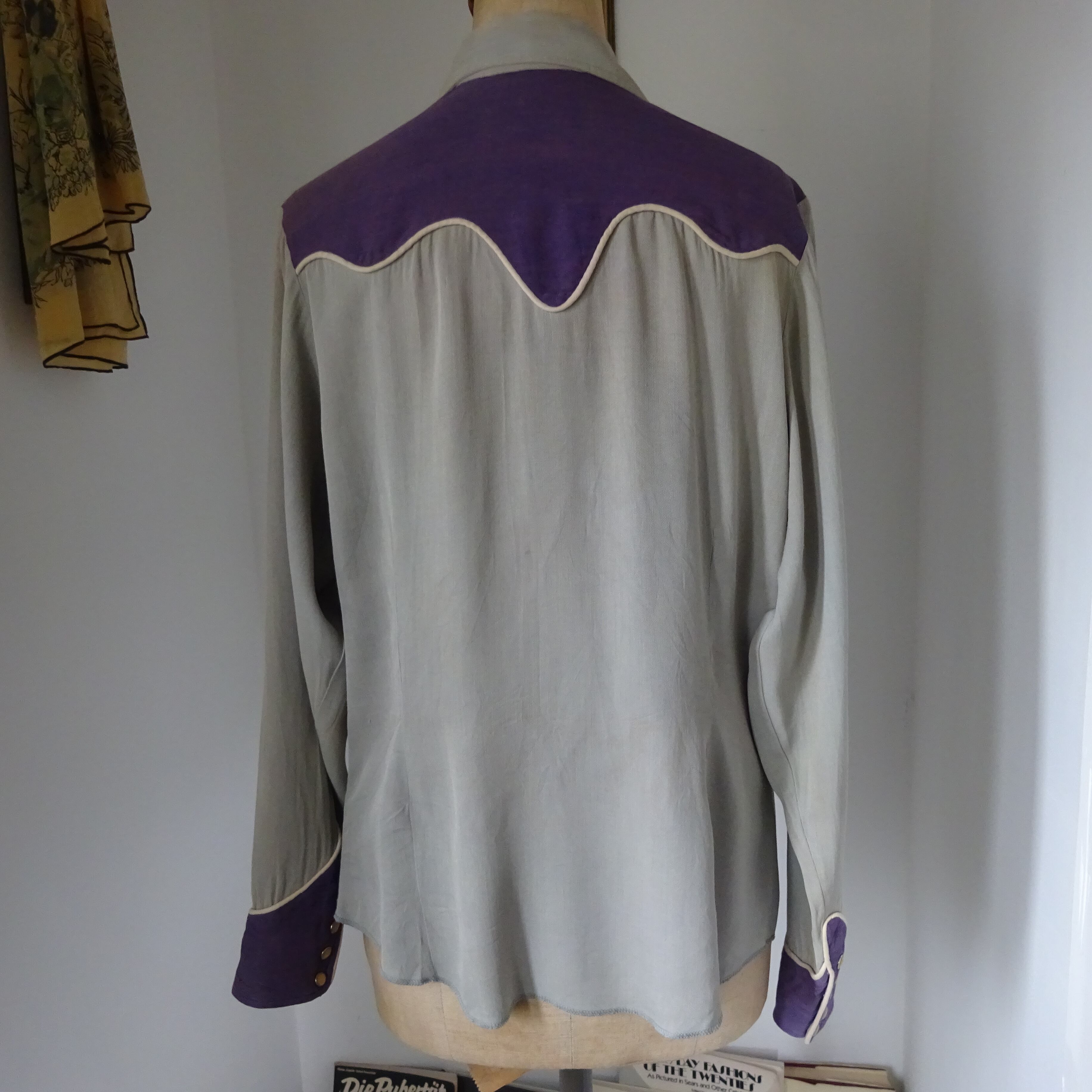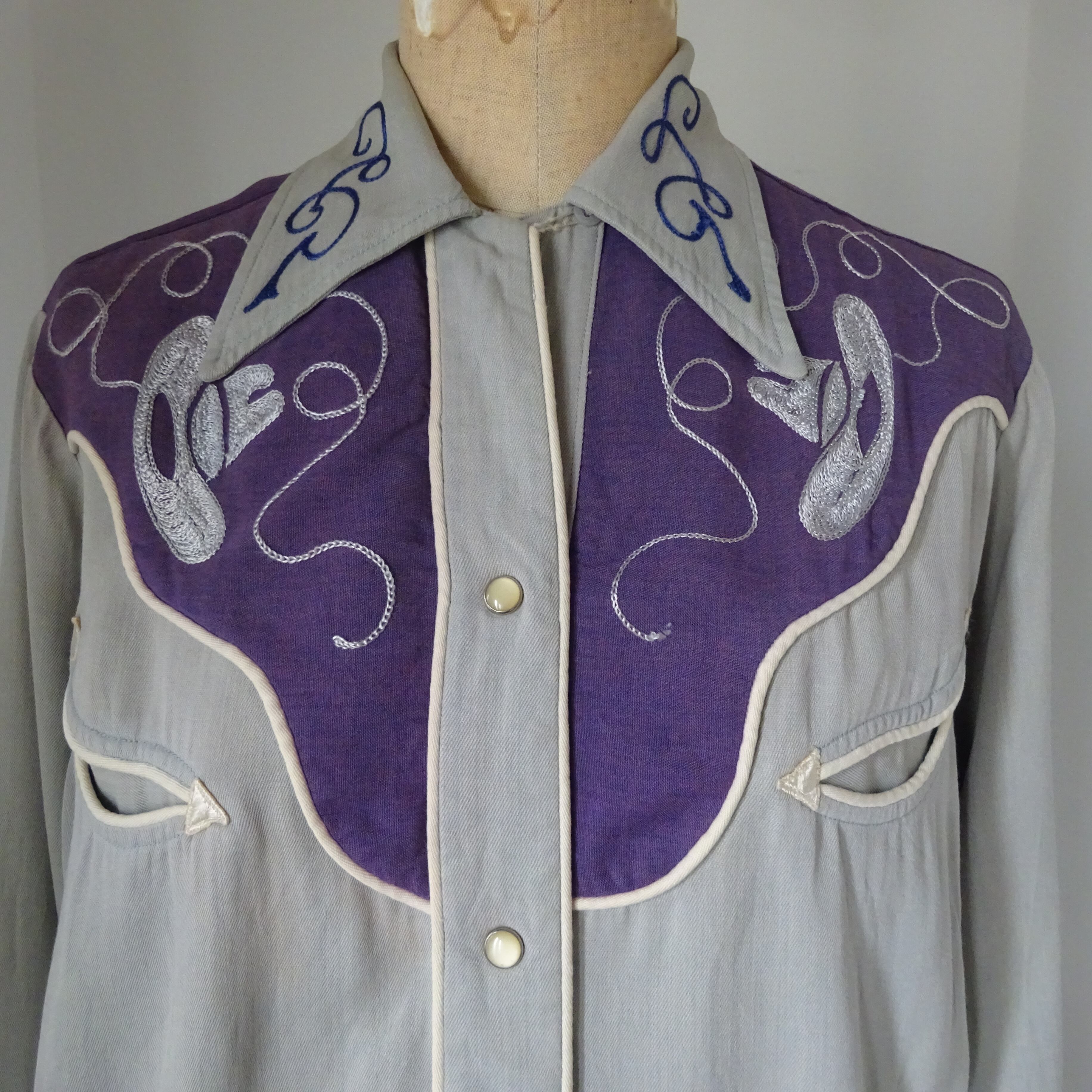 落ち着いた色合いのレーヨン素材・ギャバジン織のウエスタンシャツ