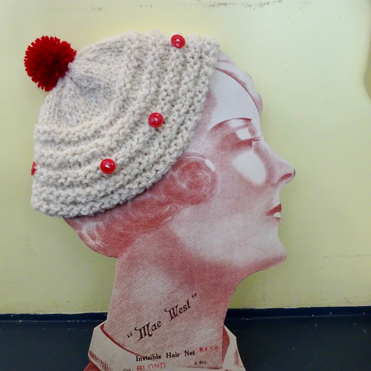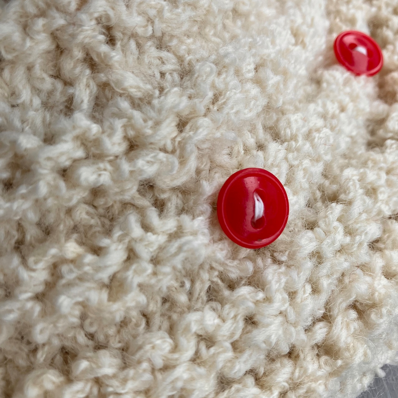 飾りでついているボタンは50'sの可愛らしいプラスチックボタンです。