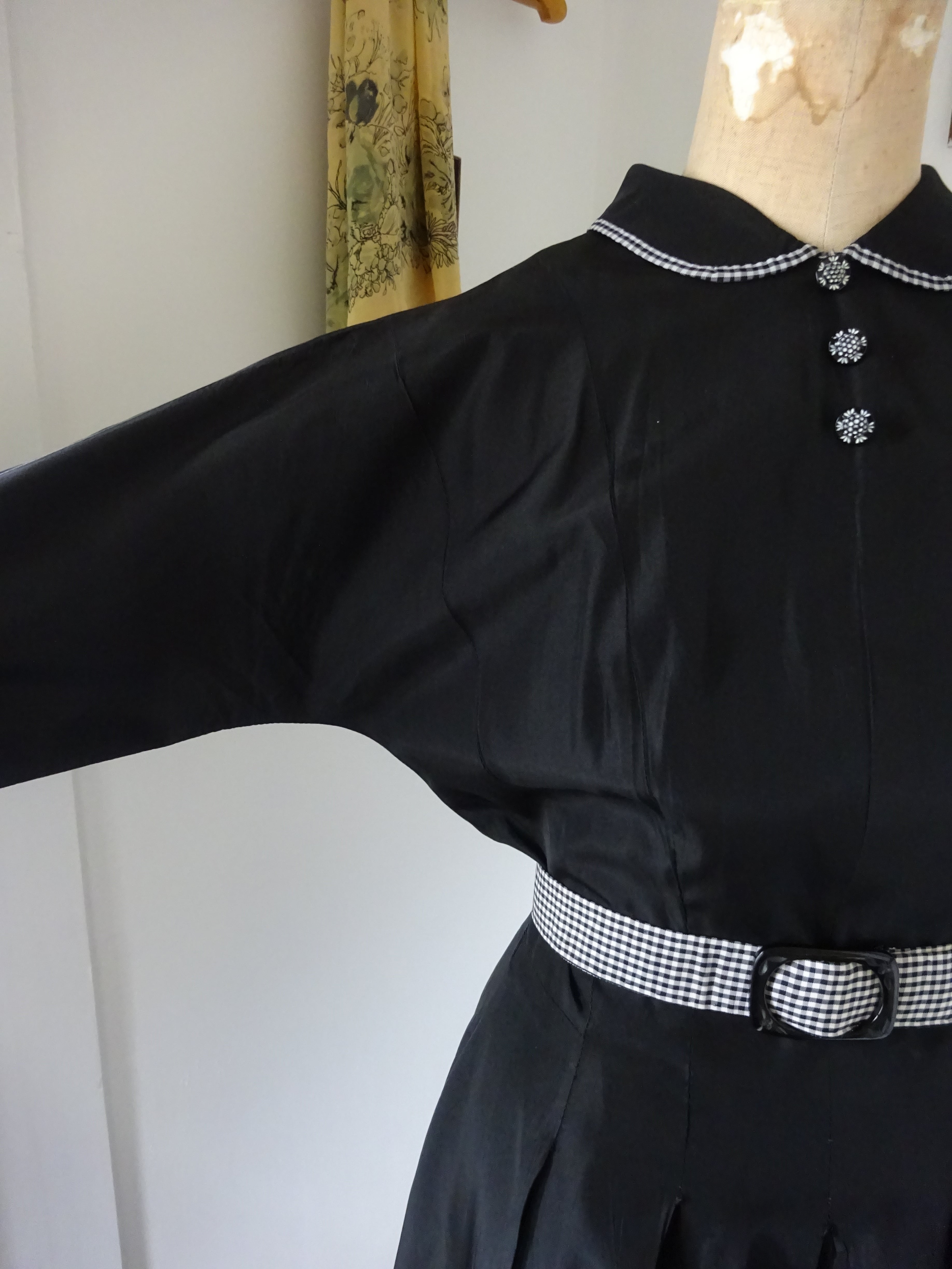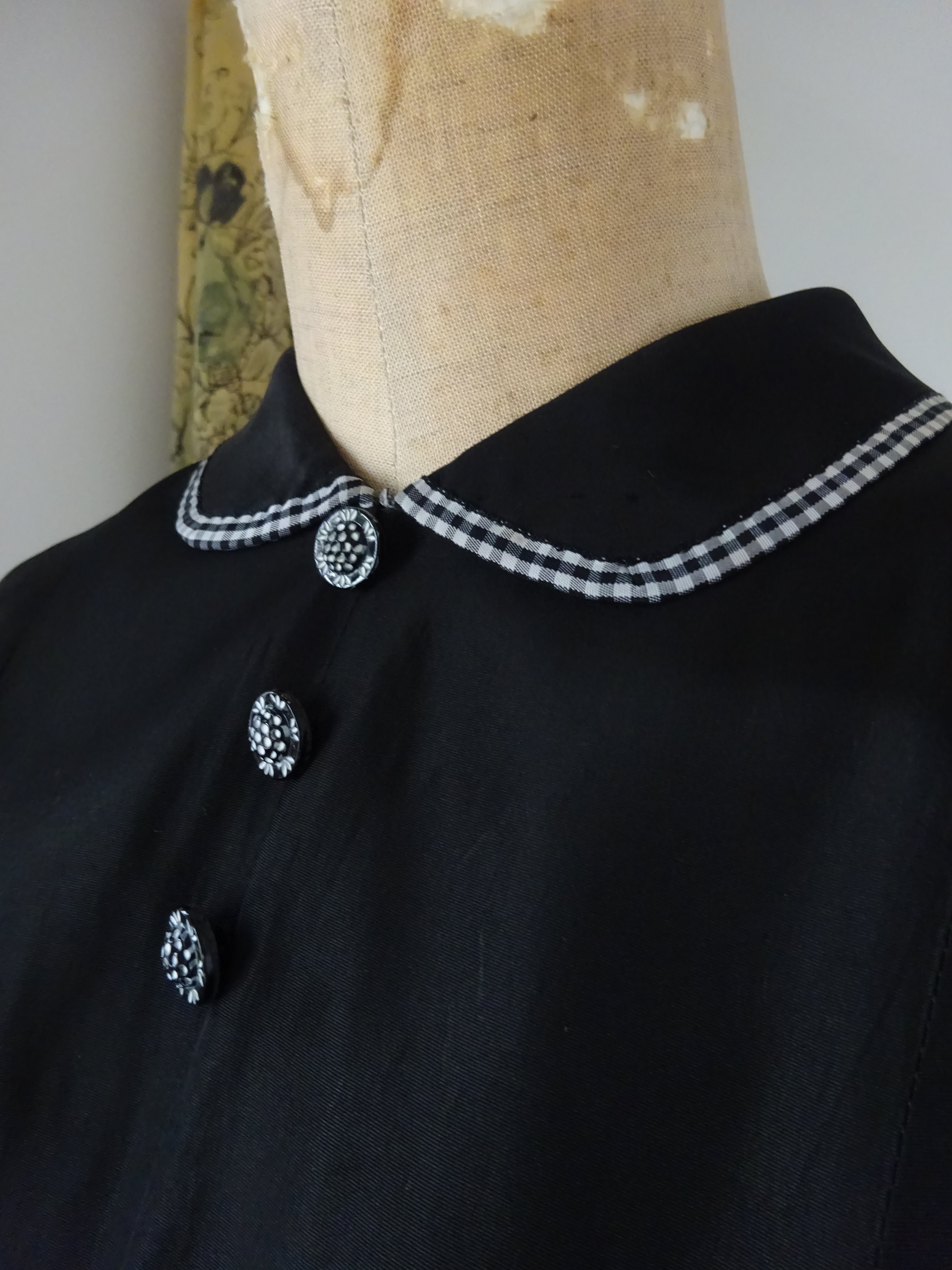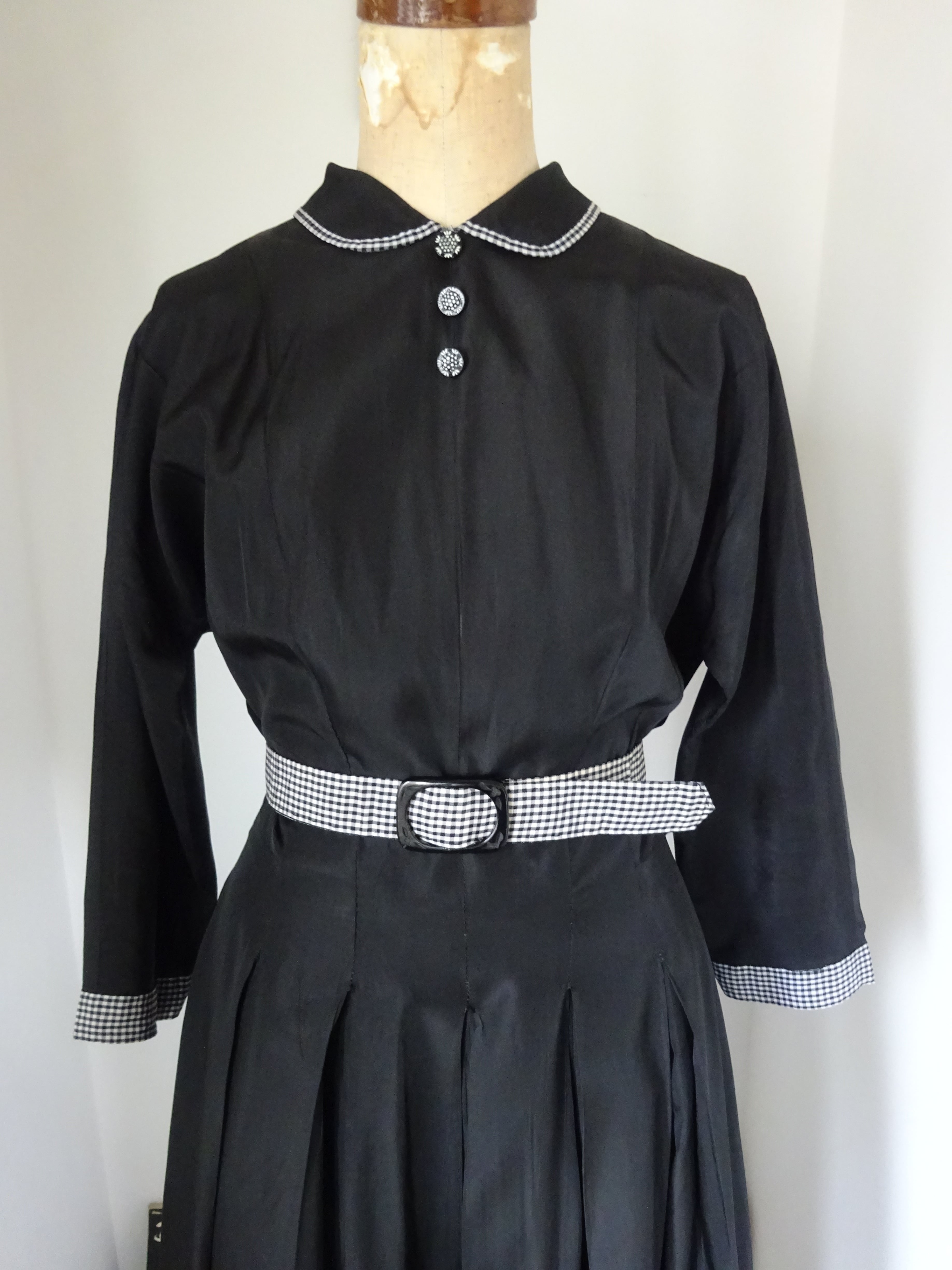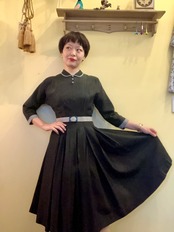 小さな丸襟にギンガムチェックのとても上品で可愛らしいヴィンテージのドレス
