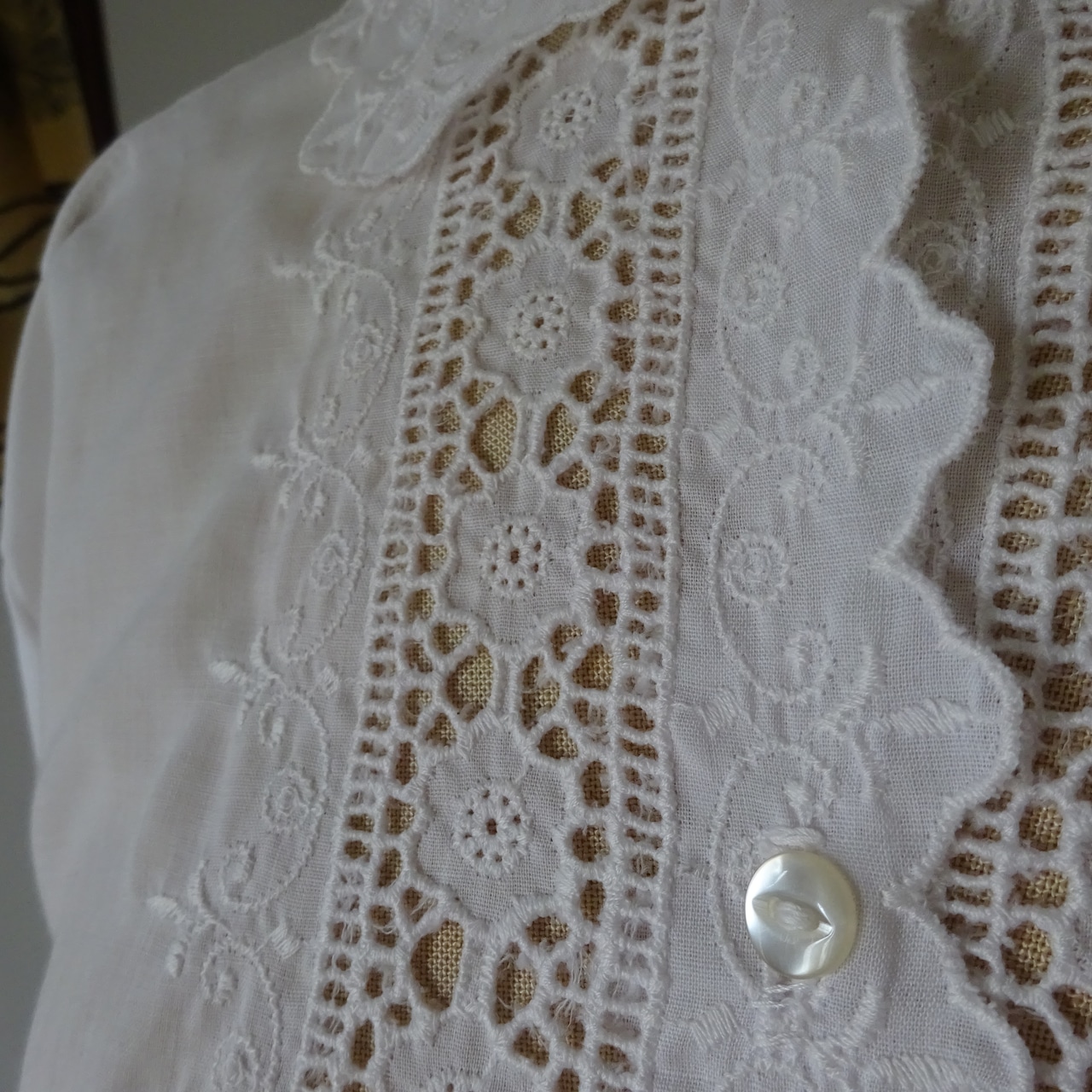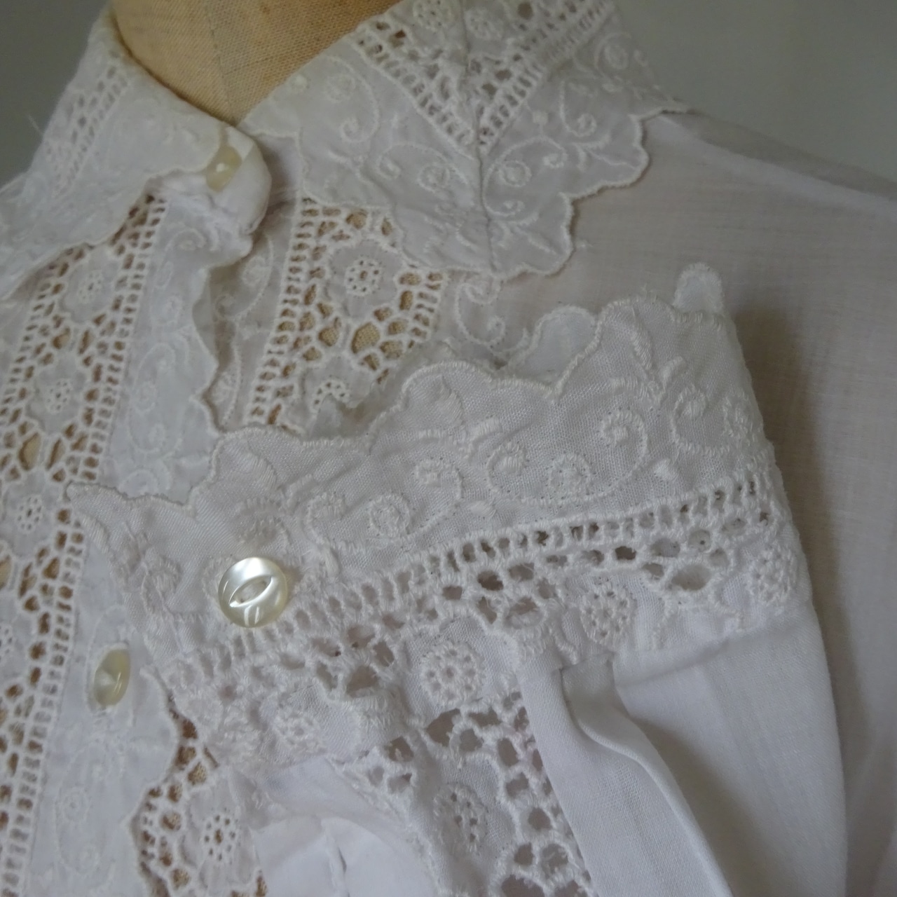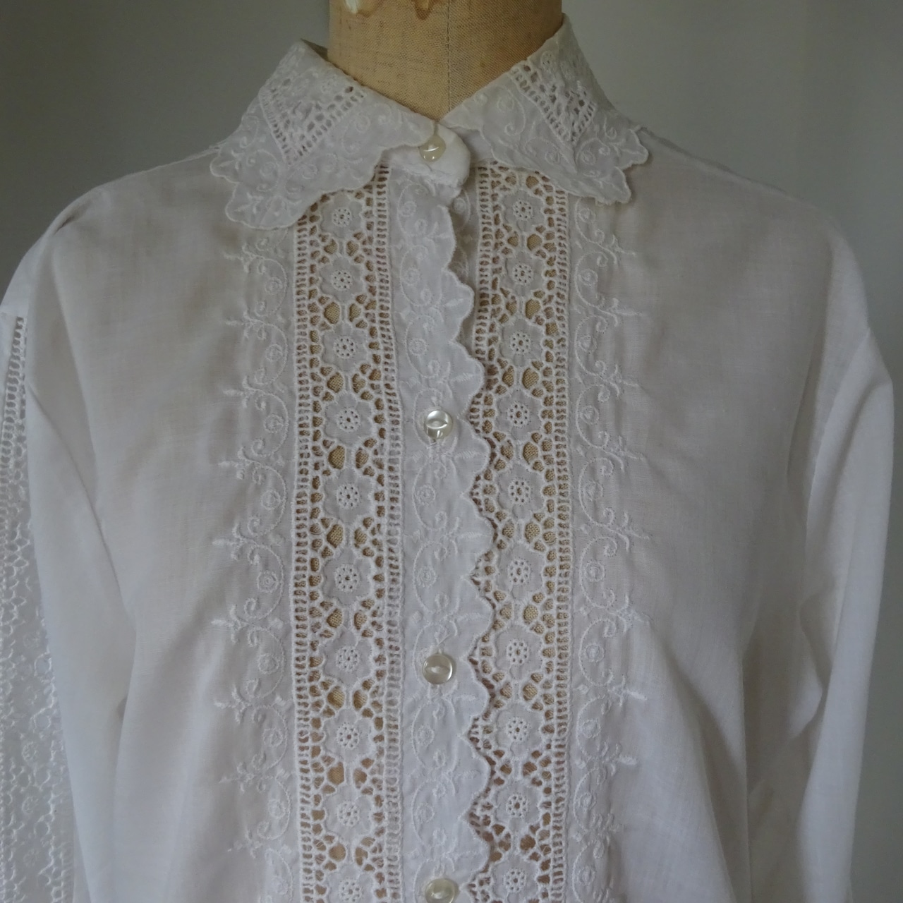 刺繍の透かしがたくさん入った可愛らしいブラウスです。