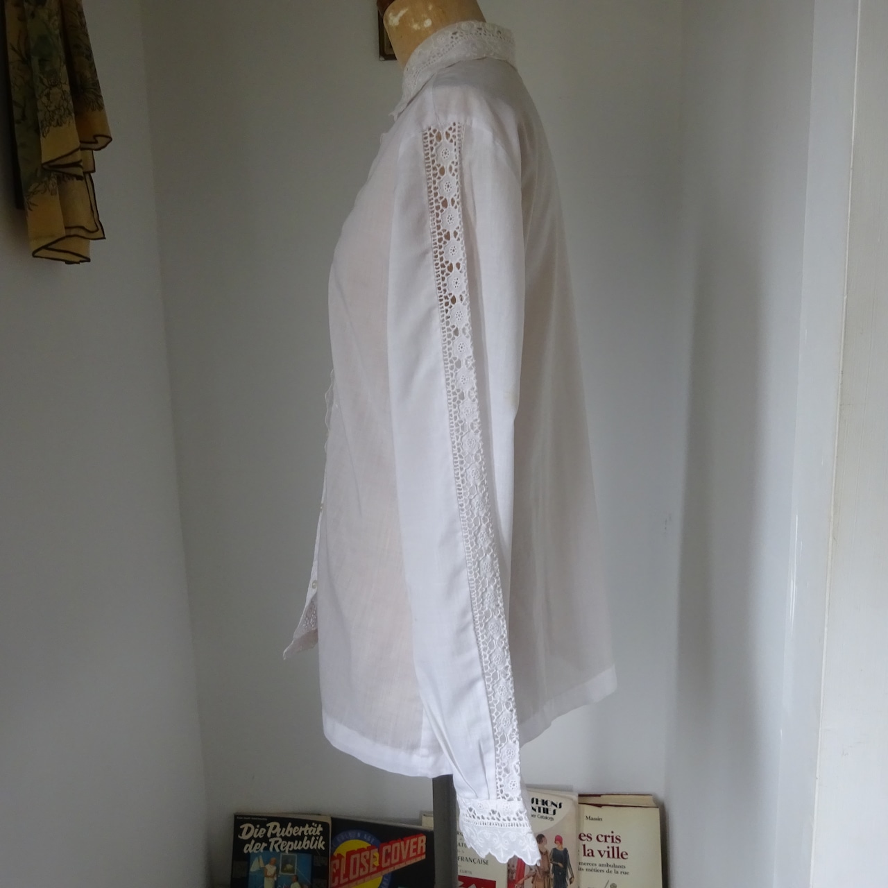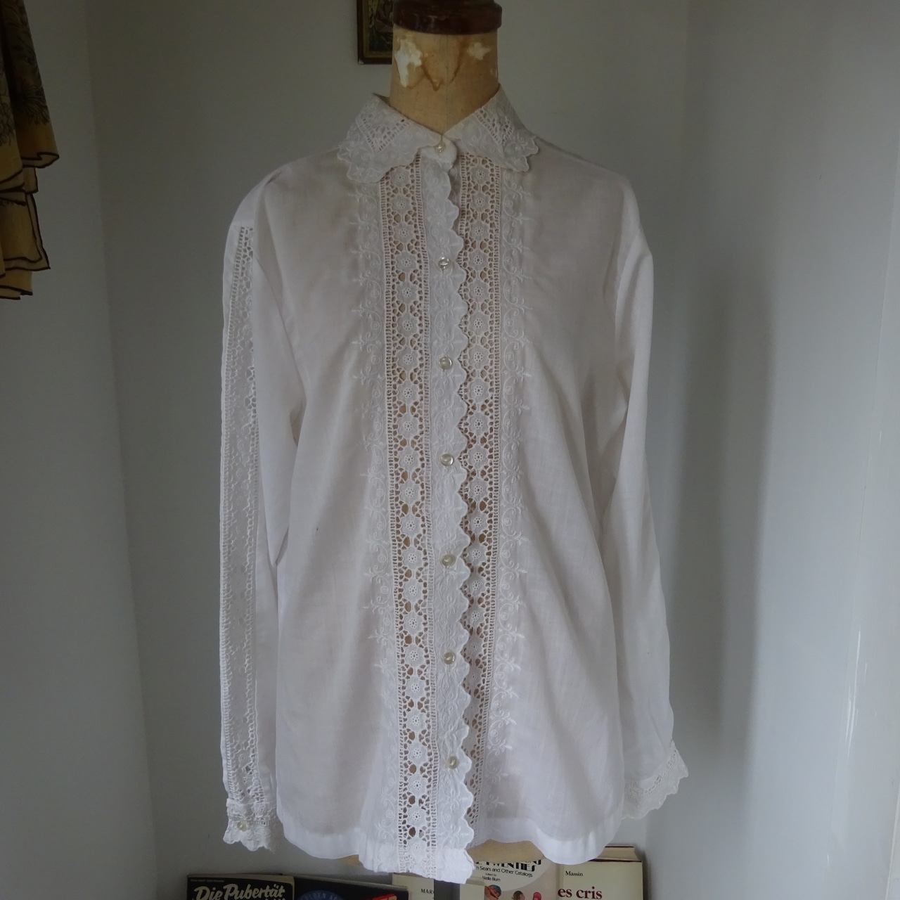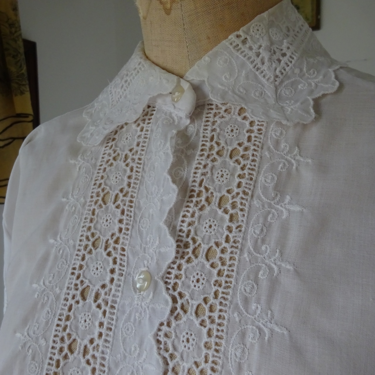 刺繍の透かしがたくさん入った可愛らしいブラウスです。