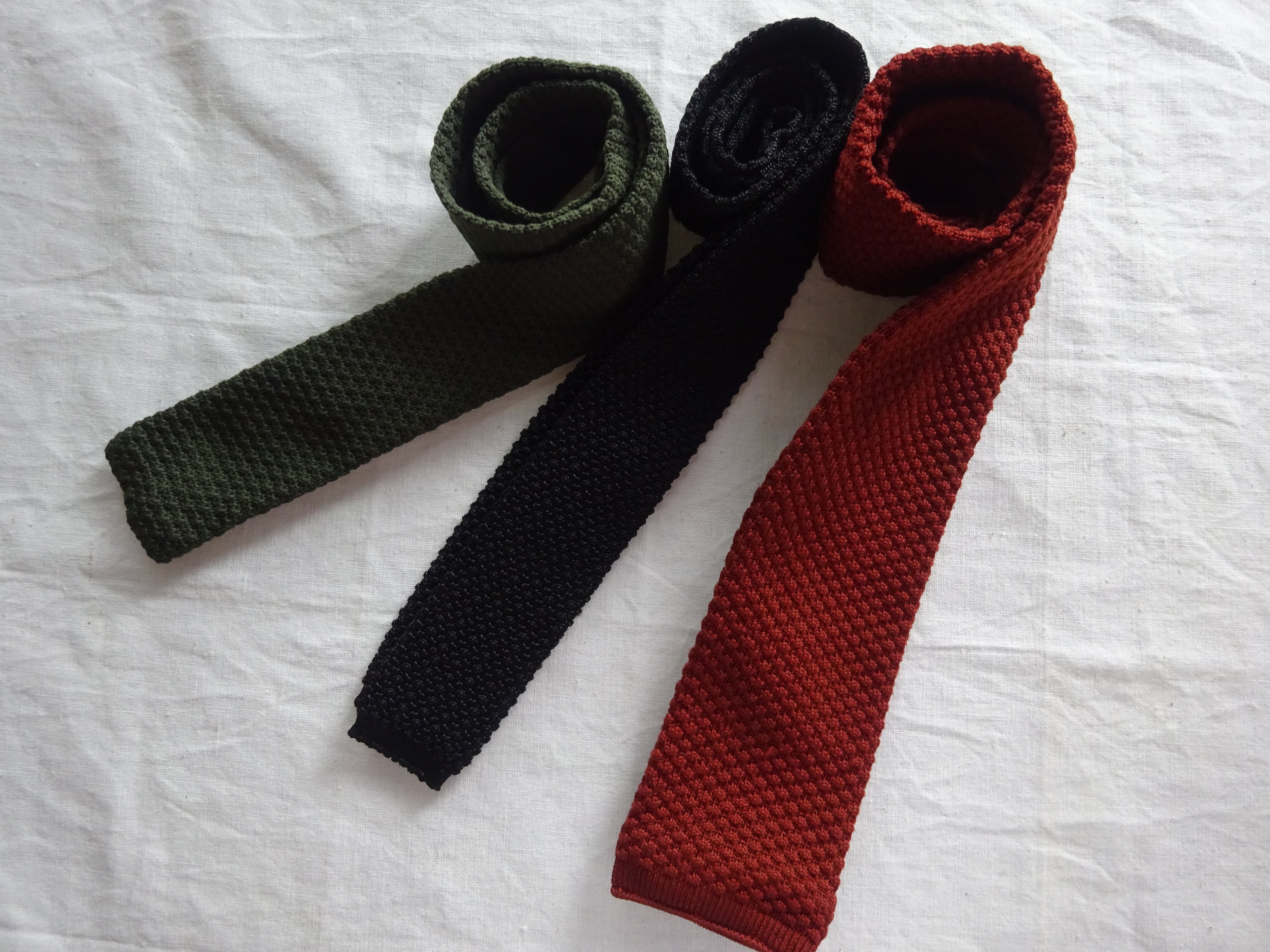 ポコポコした凹凸のある編み方でポップコーンのような可愛らしいネクタイ