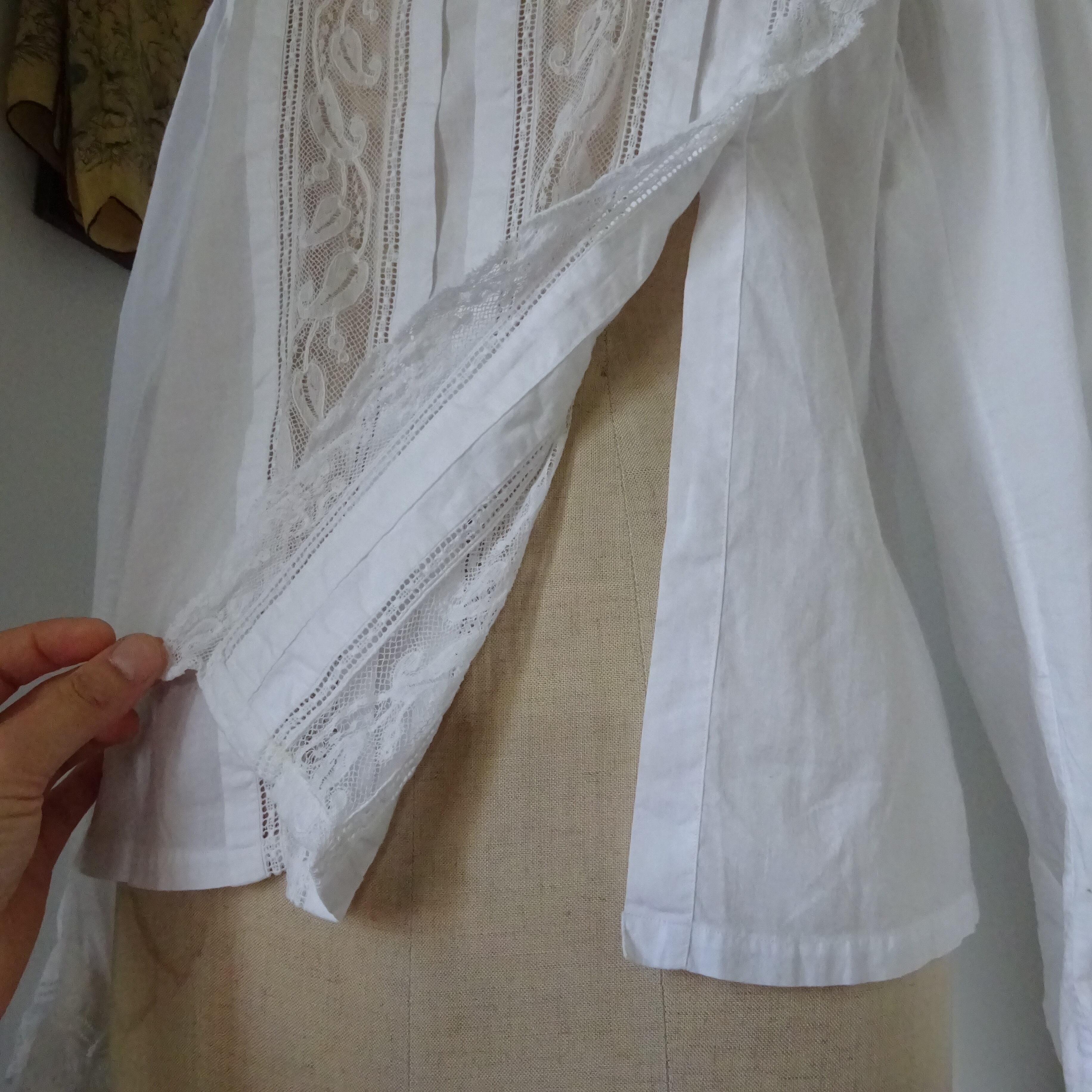 手編みののレースと手縫いがたくさん見られる丁寧な仕立て