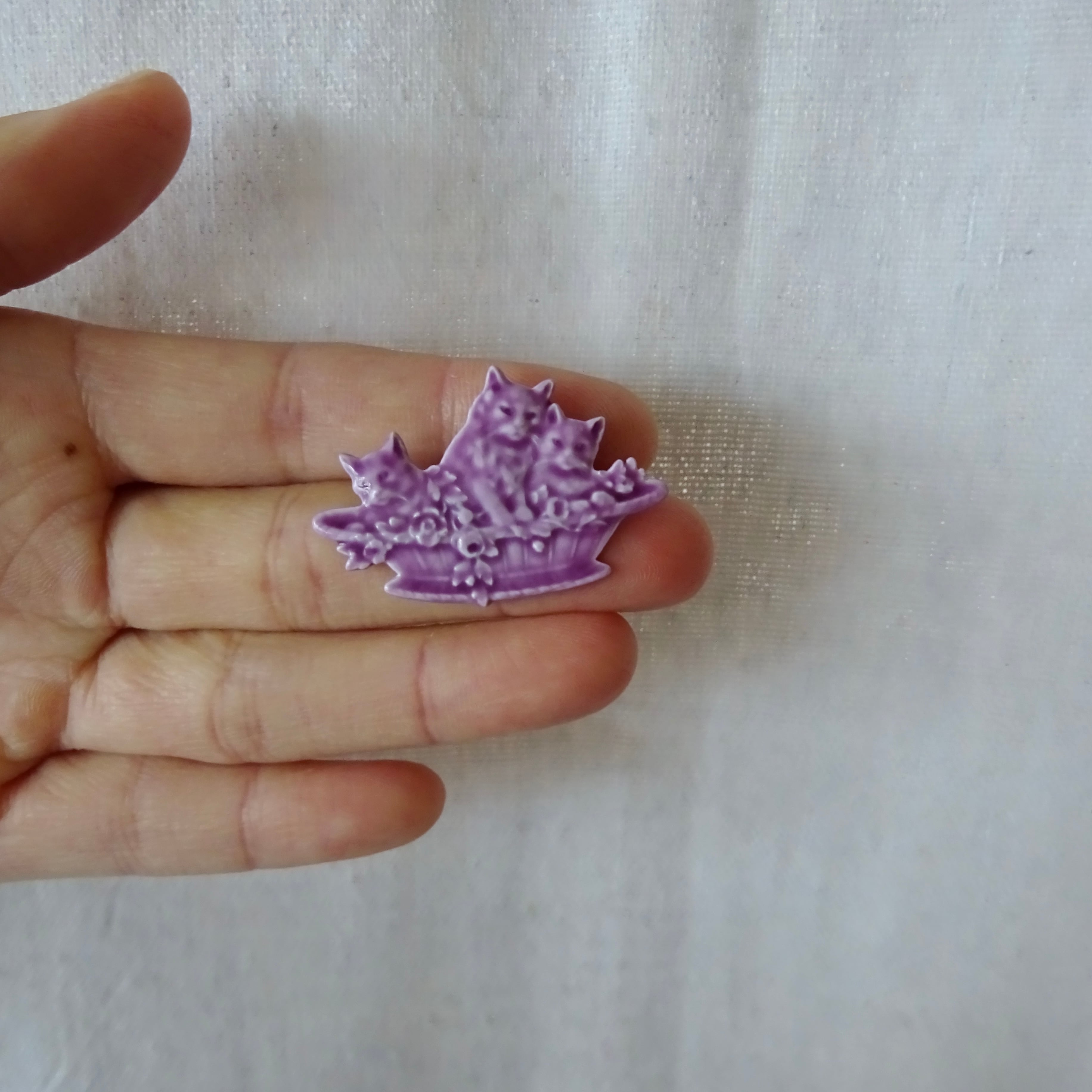 バスケットに入った子猫たちがとても可愛らしいブローチ