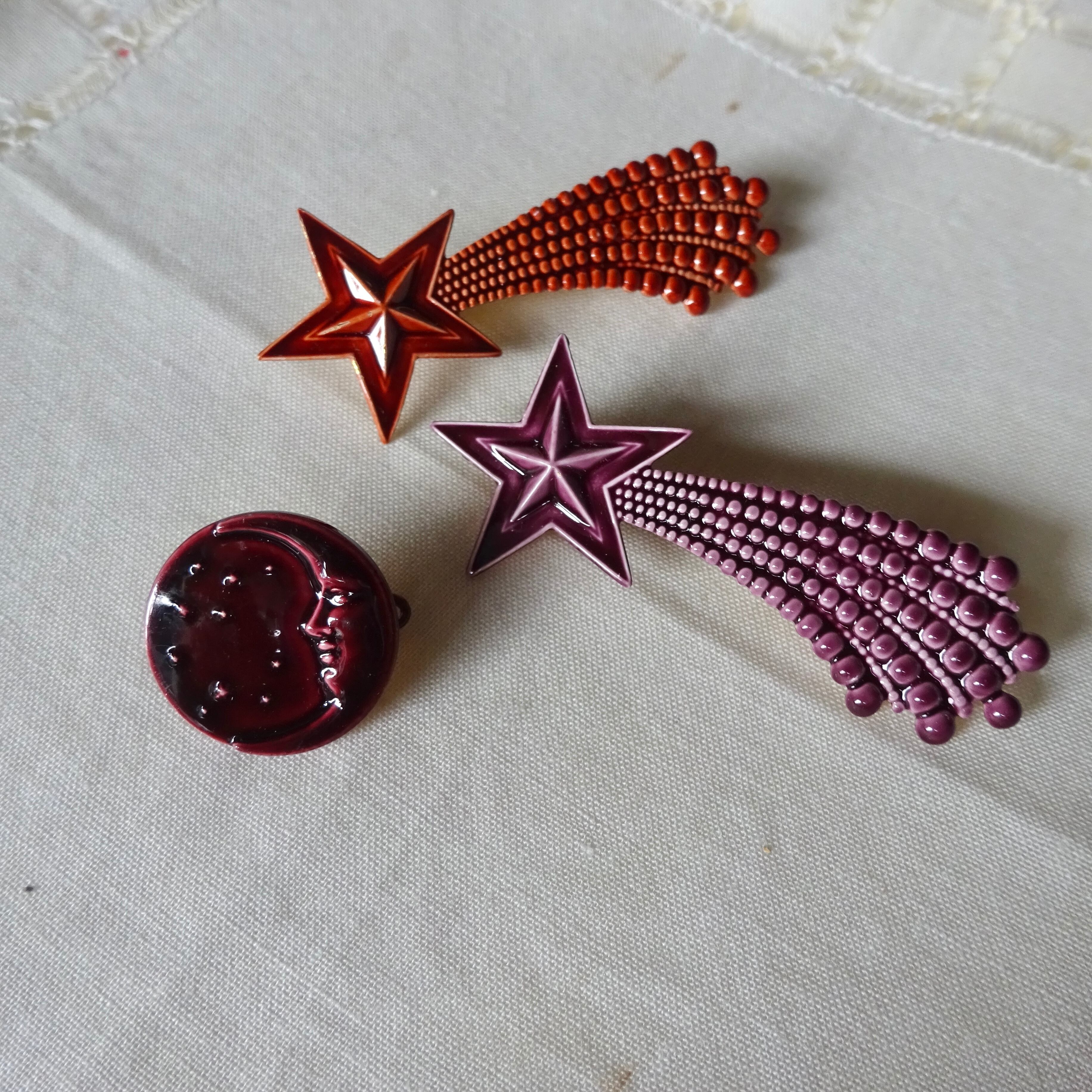 三日月の優しい横顔が、夜空に浮かんでいるような、エナメルの濃淡が美しいブローチ