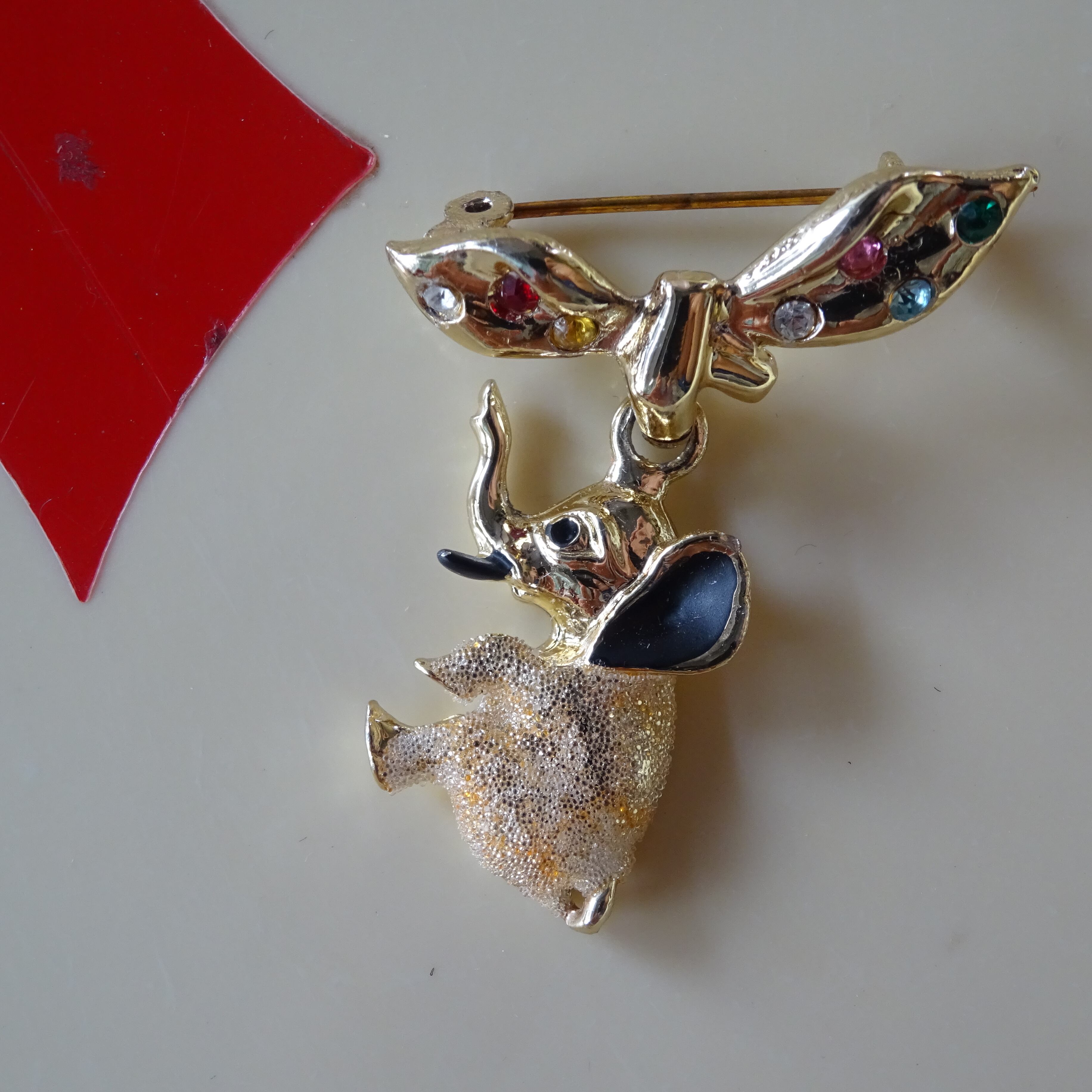 リボンにぶら下がった可愛らしいゾウさんのブローチ