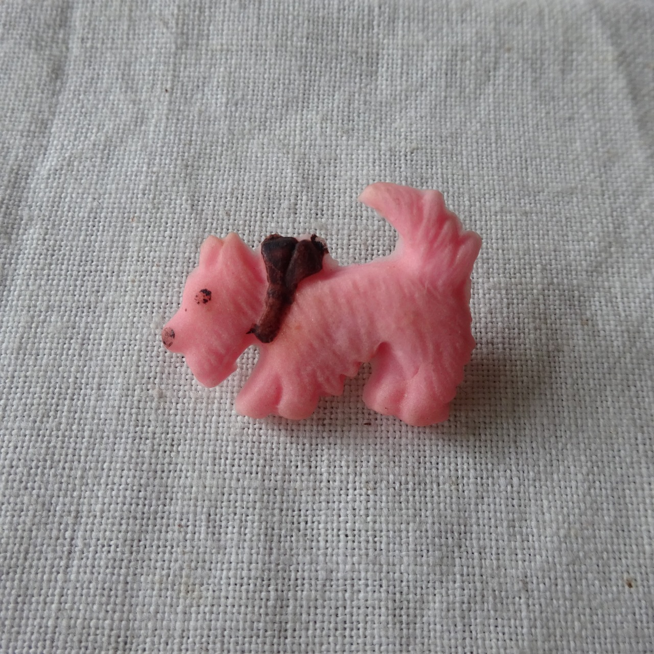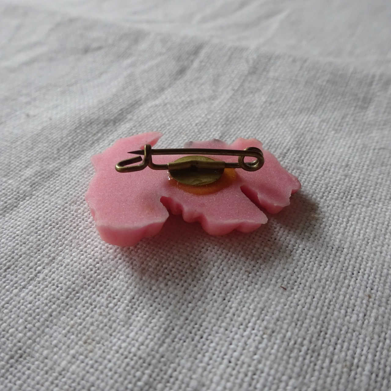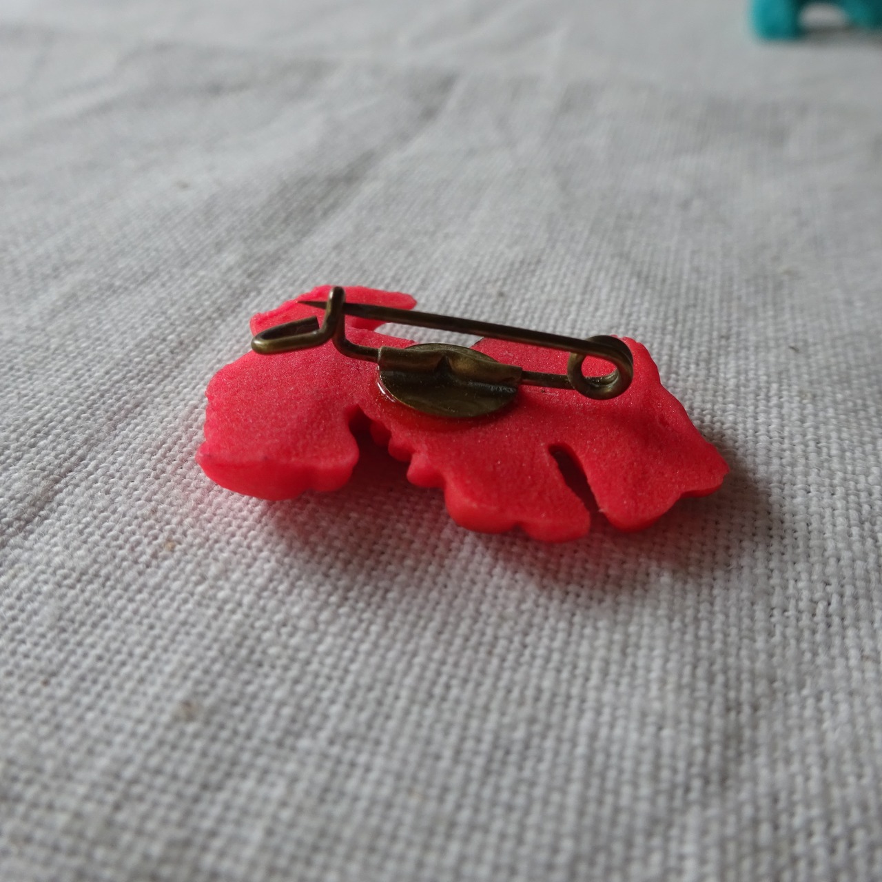 フロッキーのようにモコモコした質感に見えるとても不思議な素材で、愛着のあるブローチです。