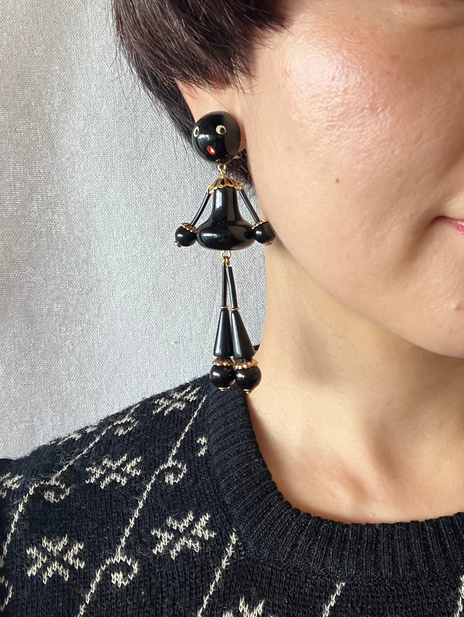 一目見ただけで可愛さが溢れている人形モチーフの特大イヤリング