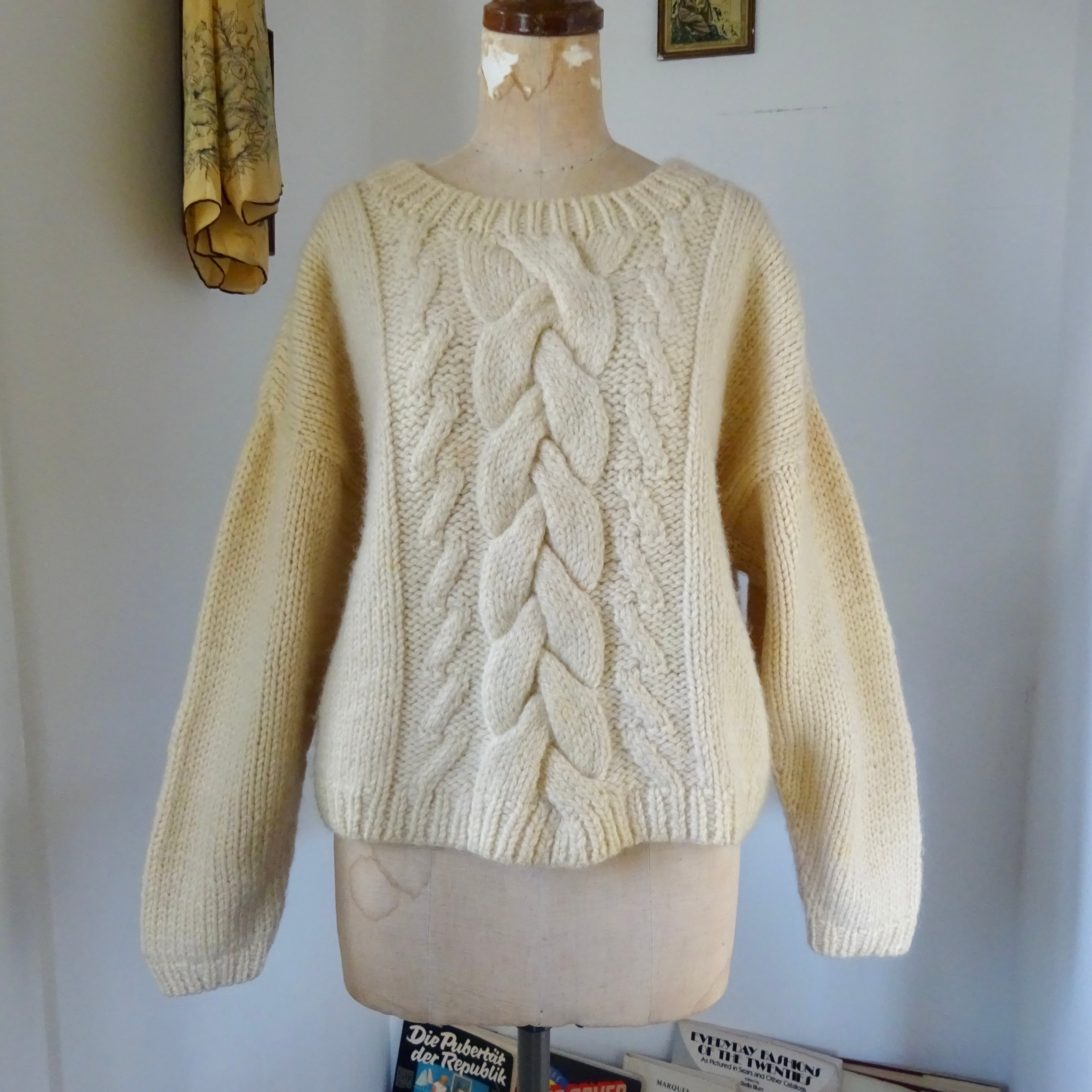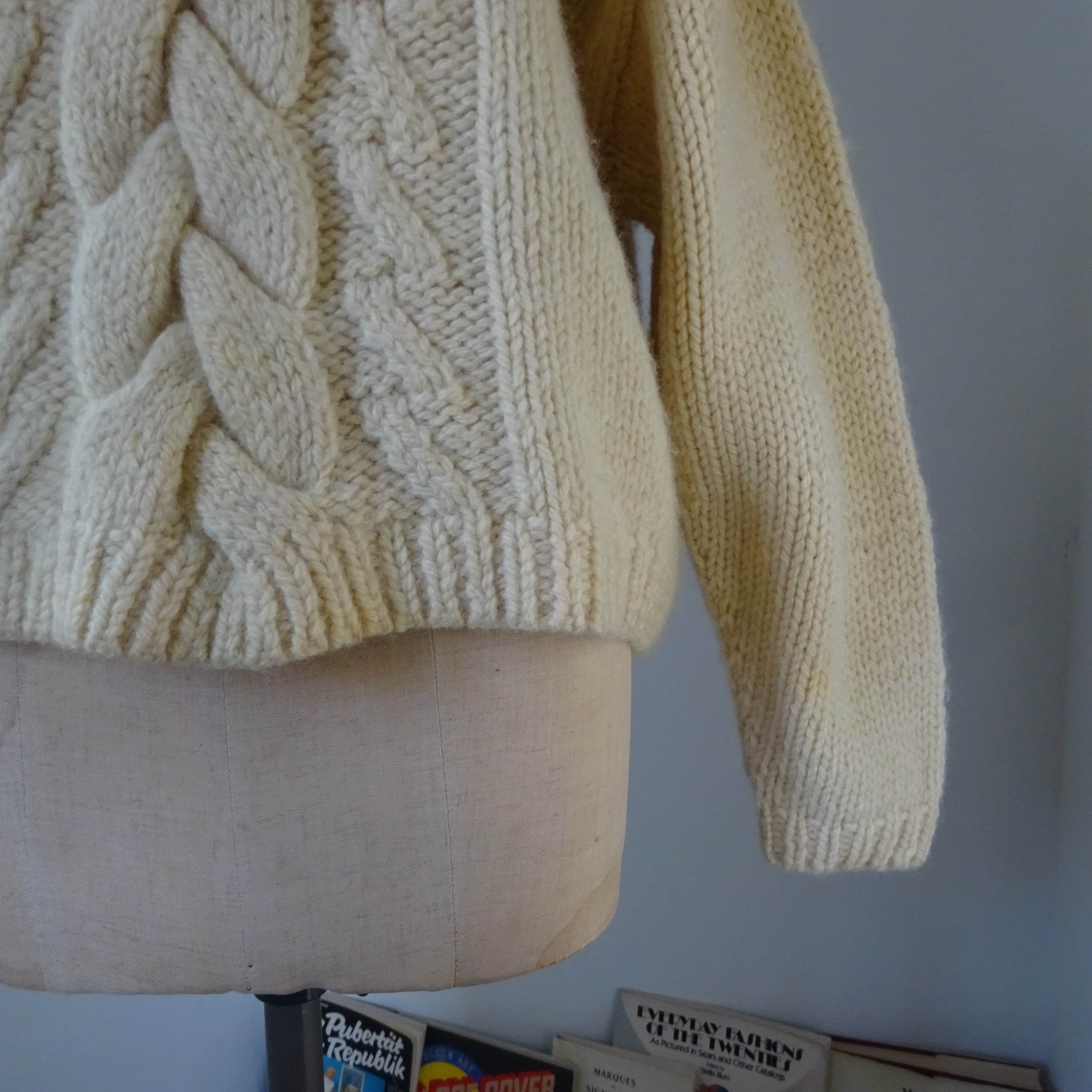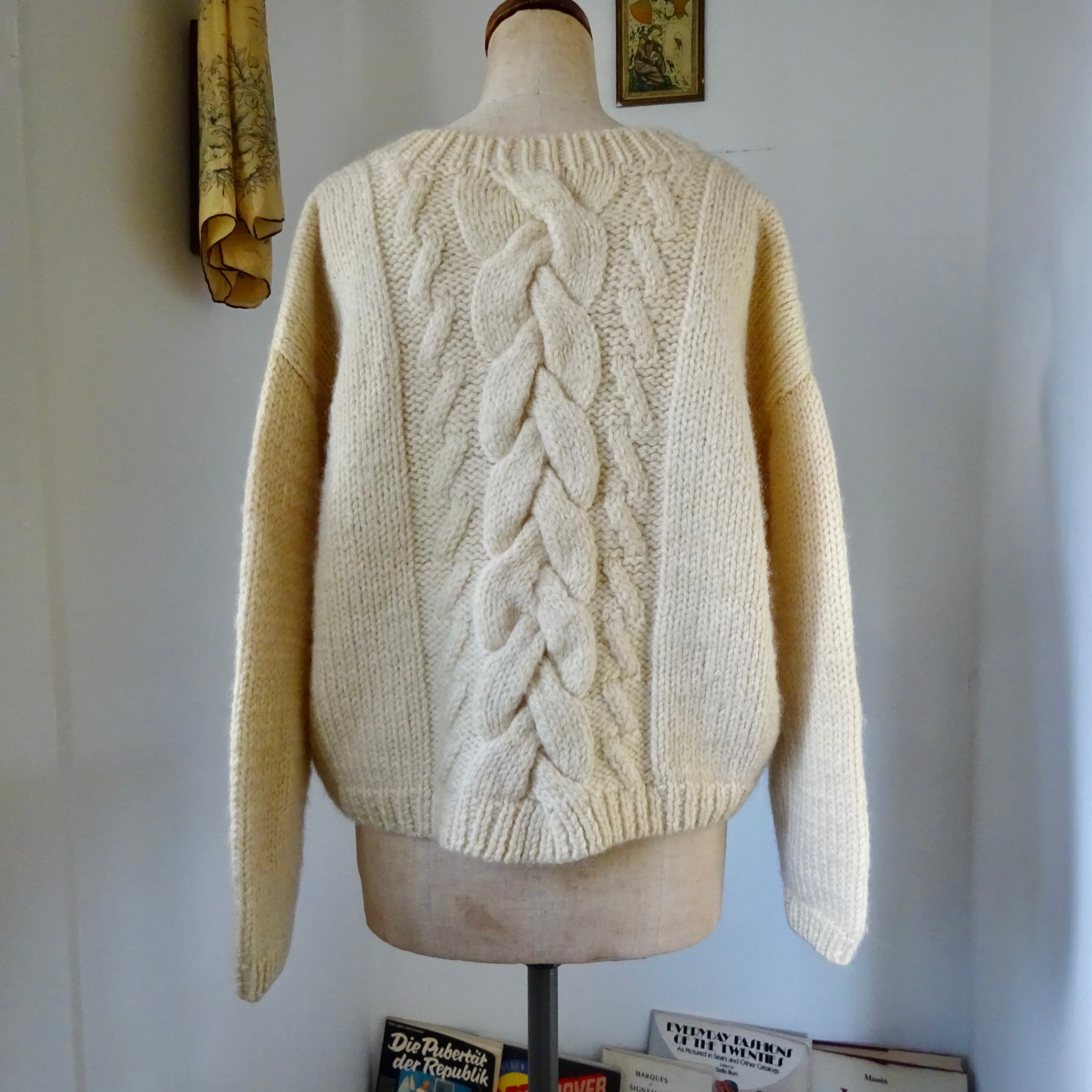 大きなケーブル編みと身幅、丈のバランスがとてもよい可愛らしいセーターです。
