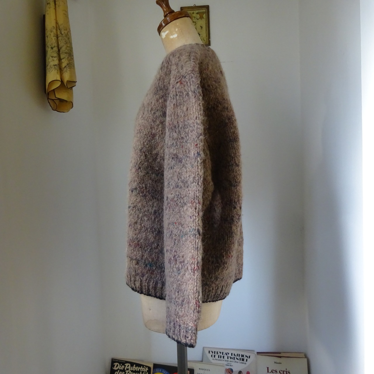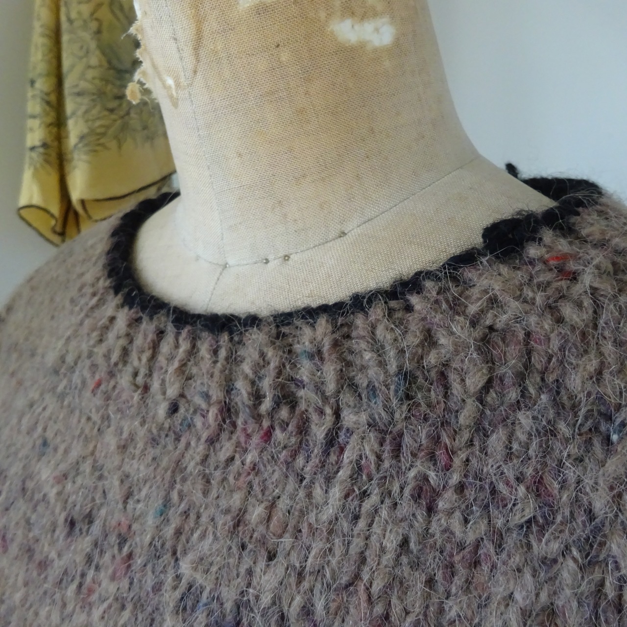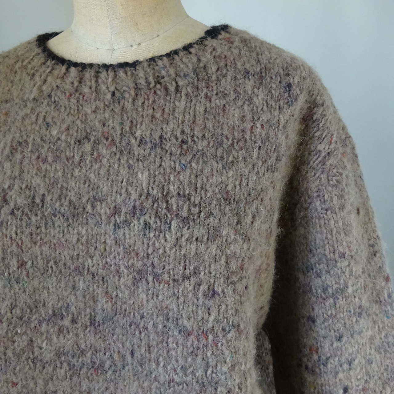 太い毛糸にネップが入ったツイードのセーター