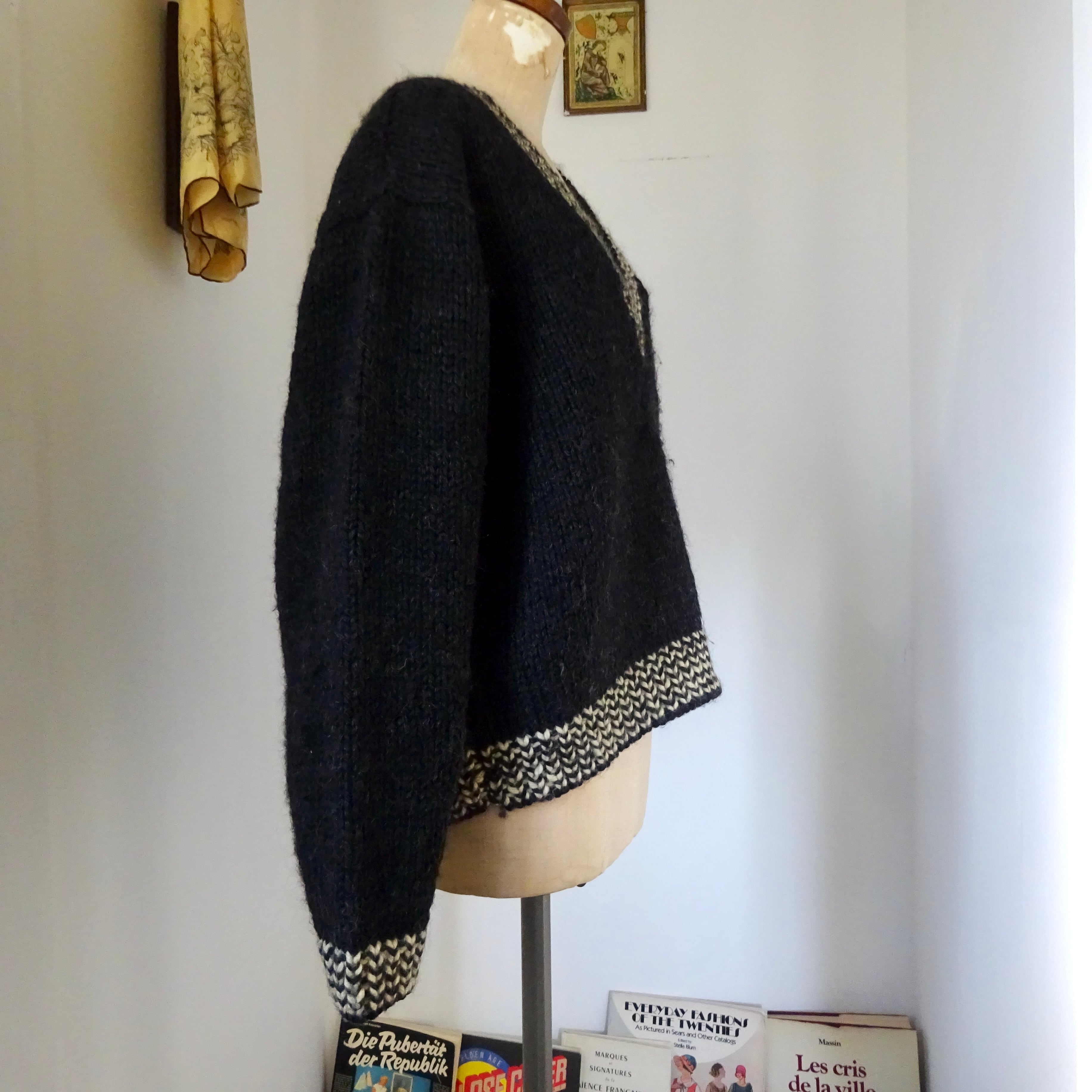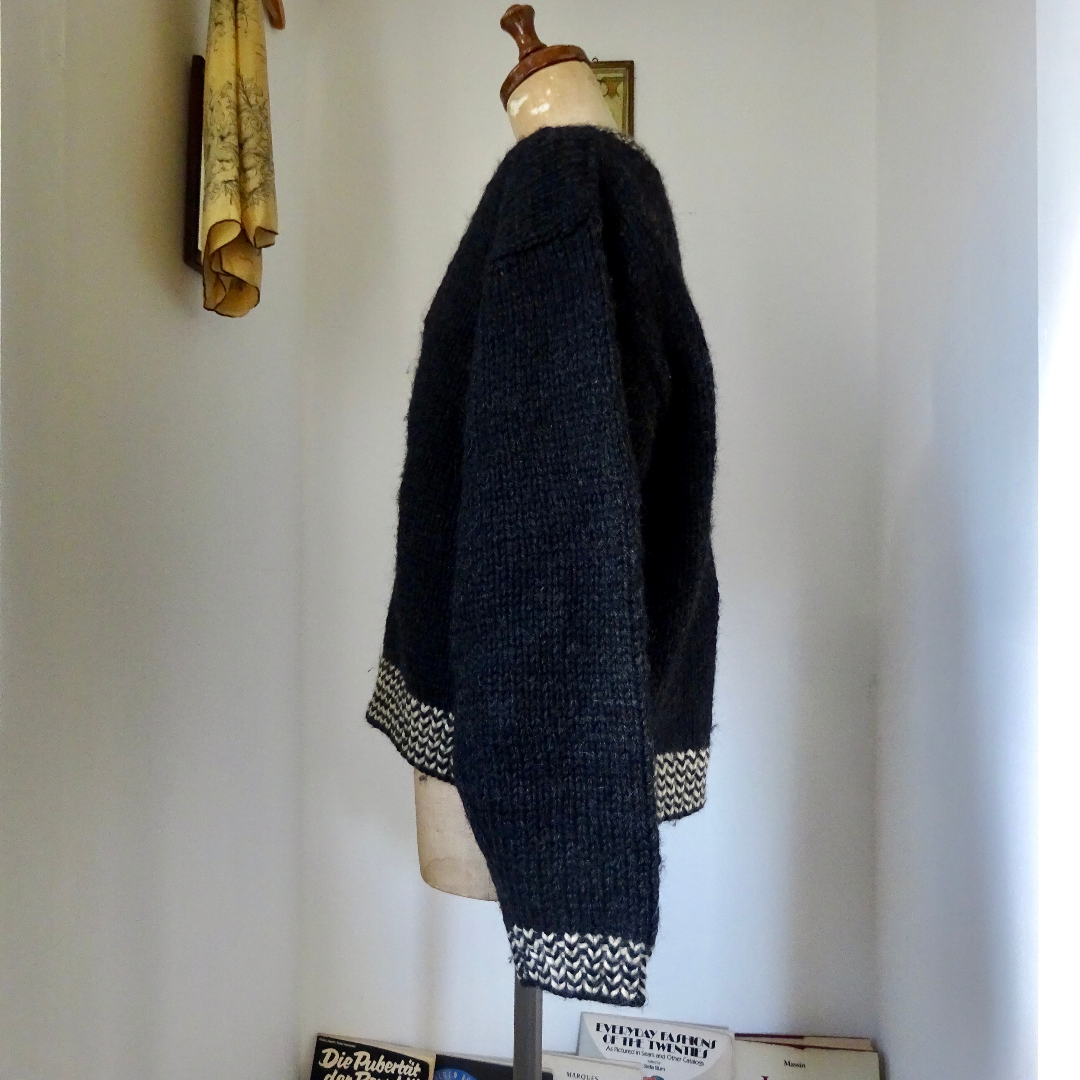 手編みは編んでいる時間や、技術・毛糸選びなど全て含めてとても丁寧に作られている一点もの。ウール100%となると毛糸もそれなりのお値段になると思います