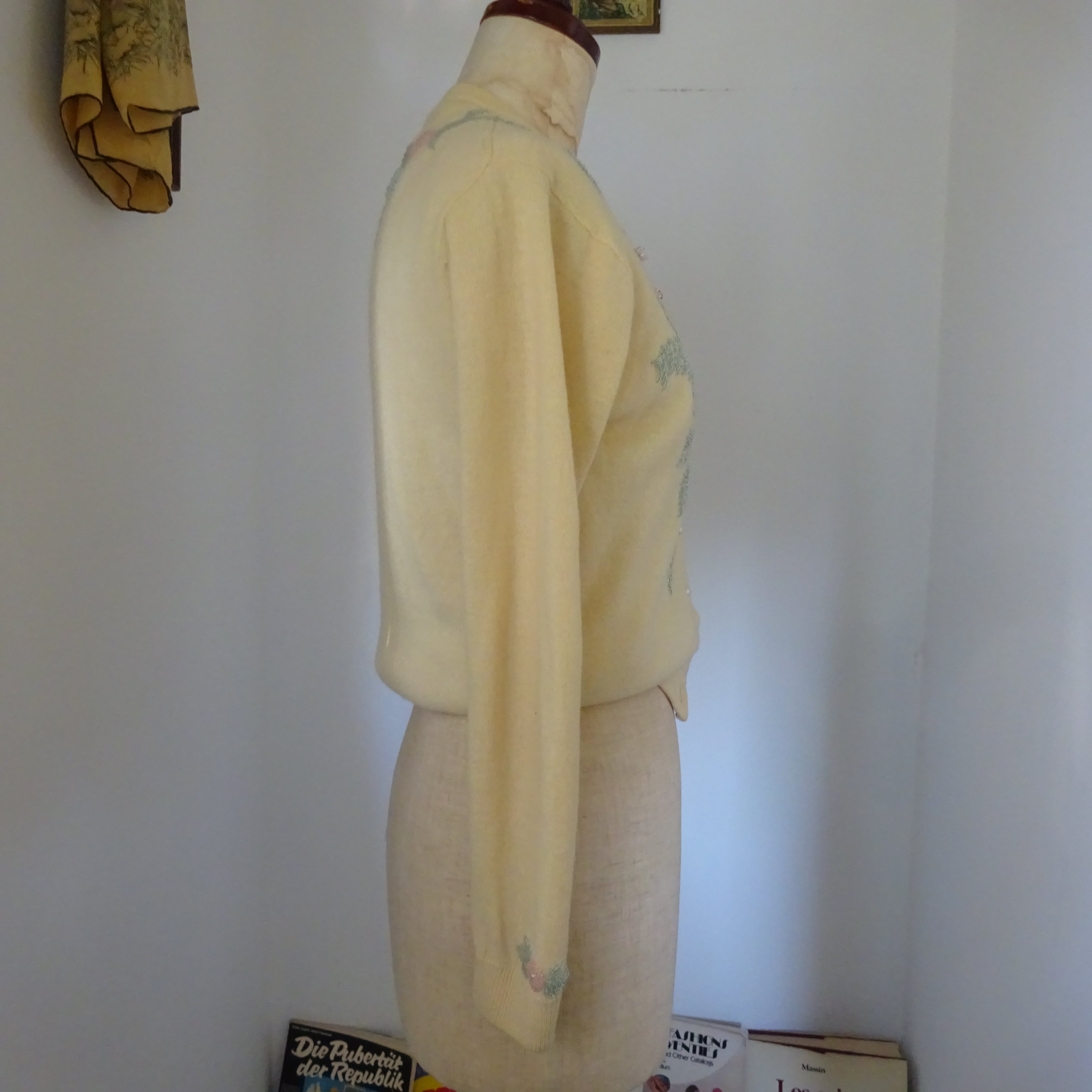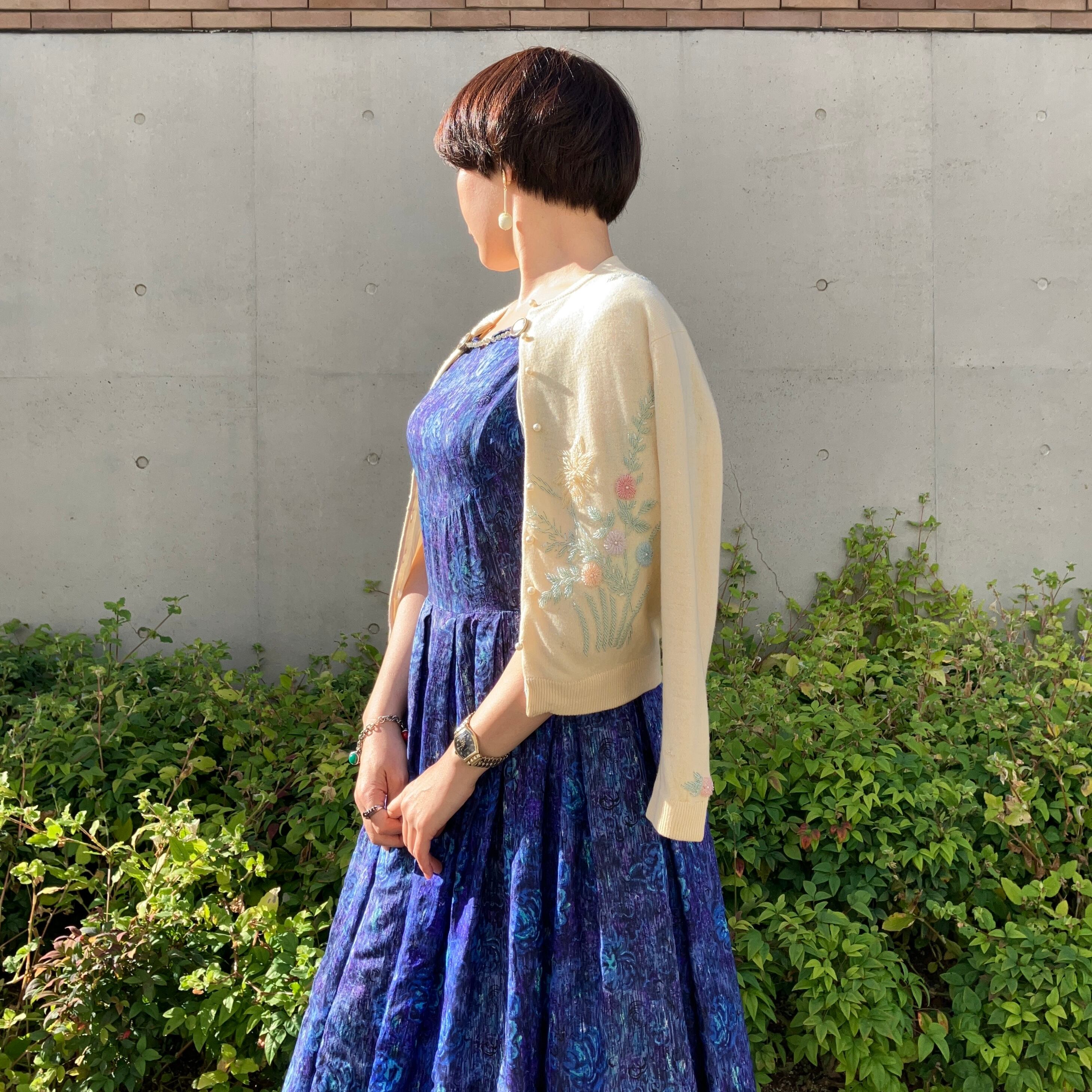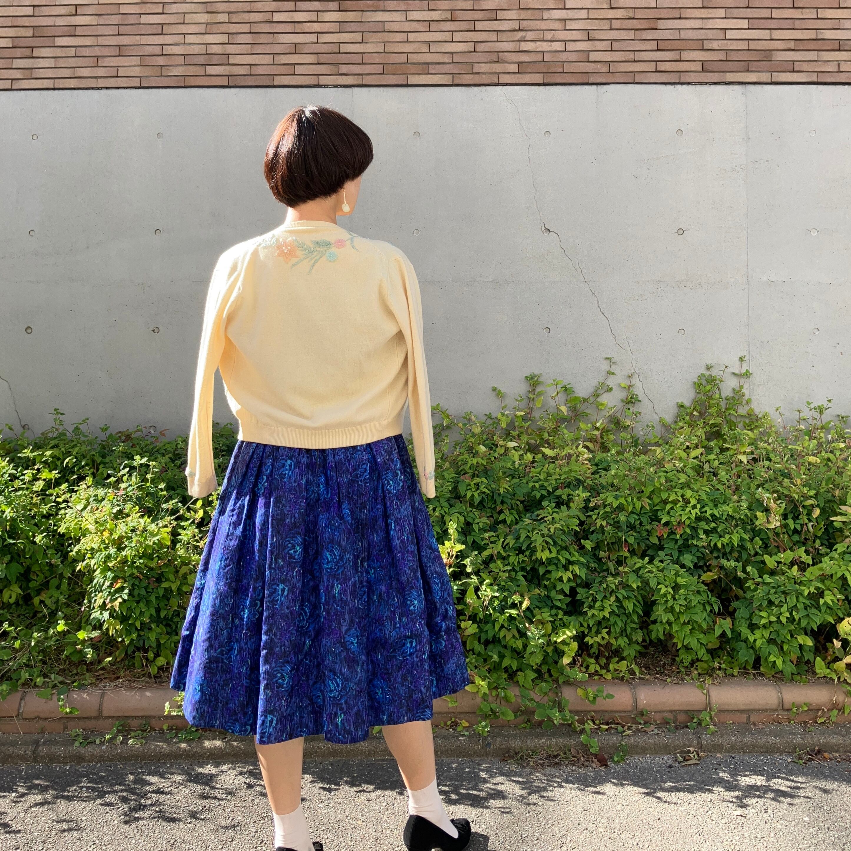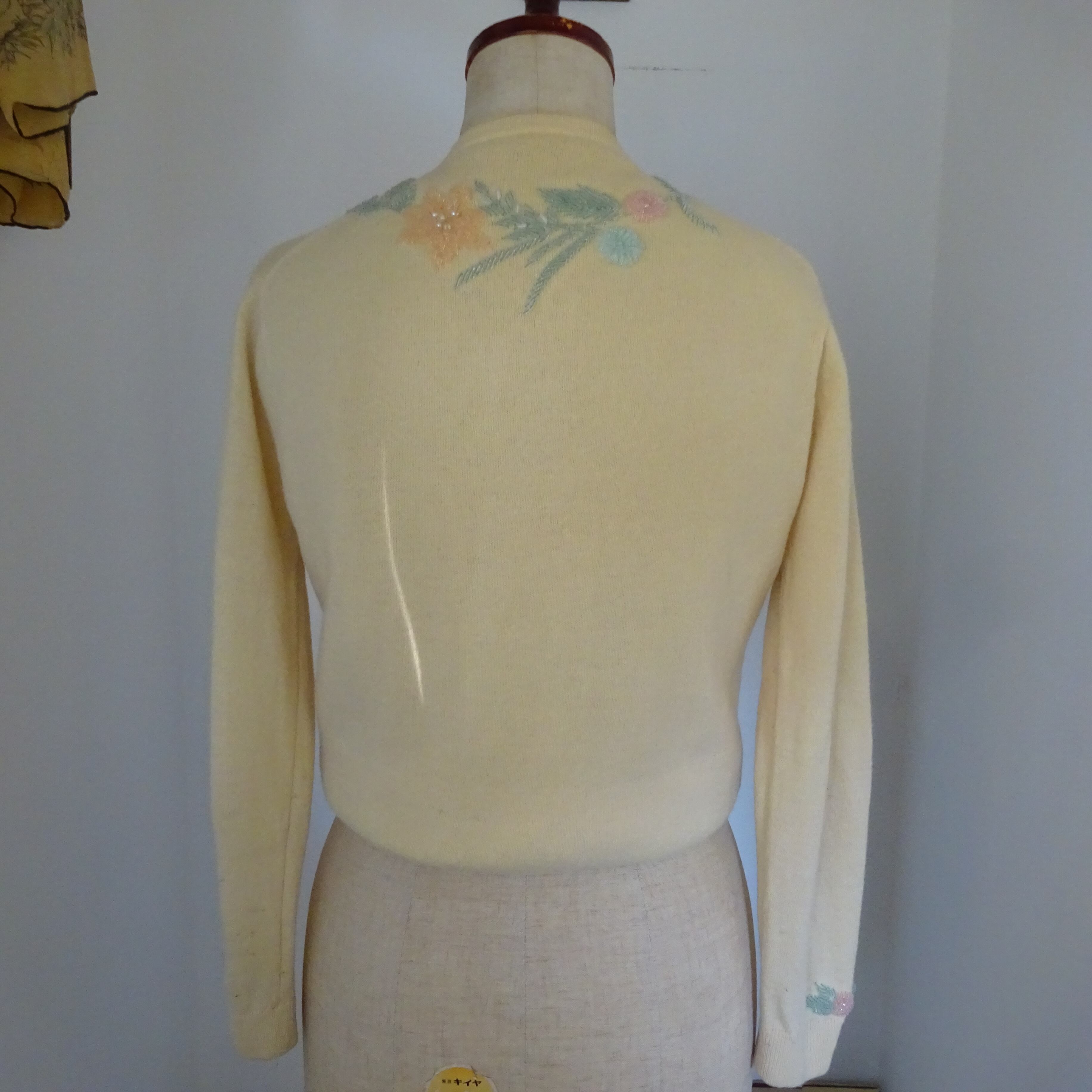 ハイゲージの滑らかなニットに大胆な刺繍がとても上品で可愛らしく、背中までお花が繋がっている手の込んだ一枚です。