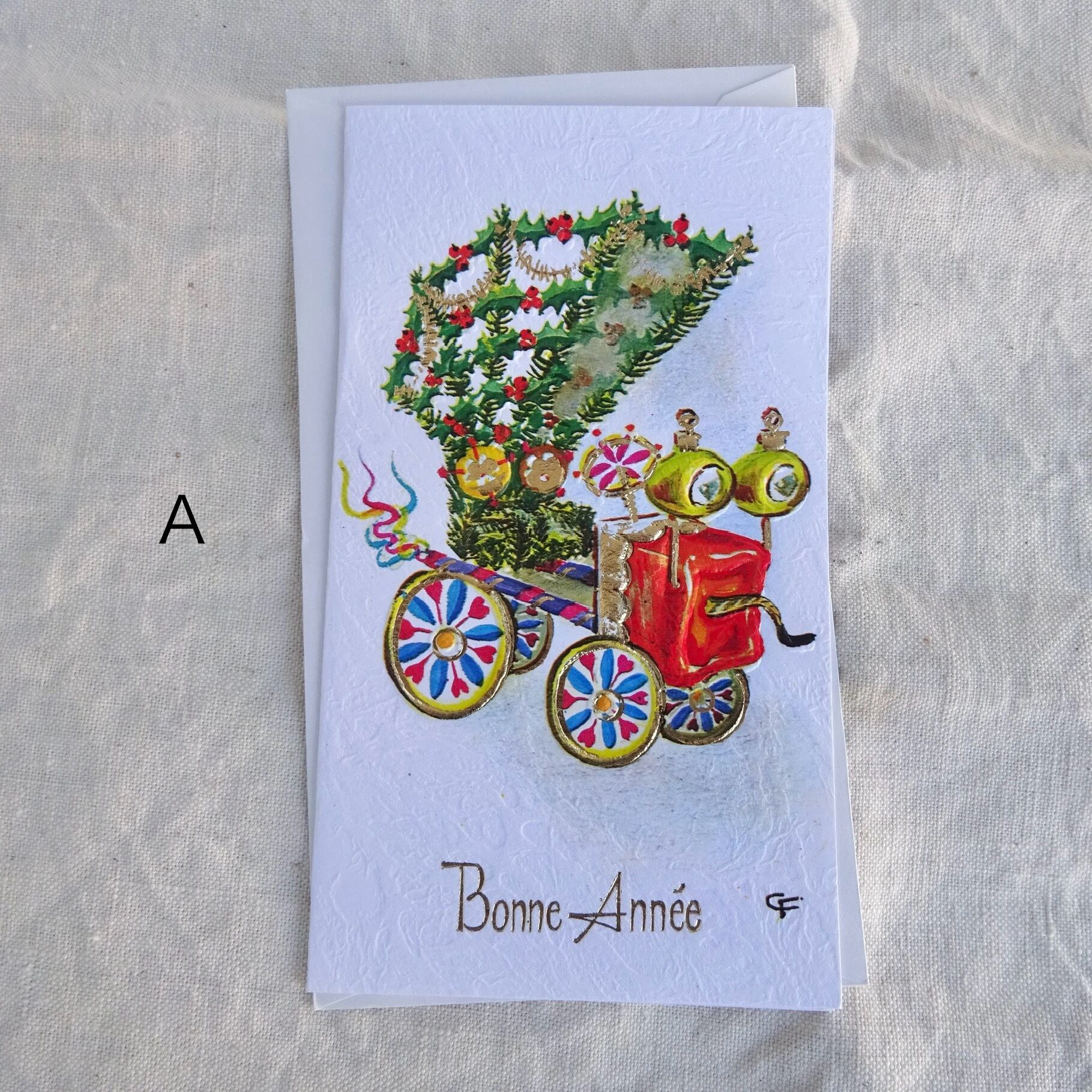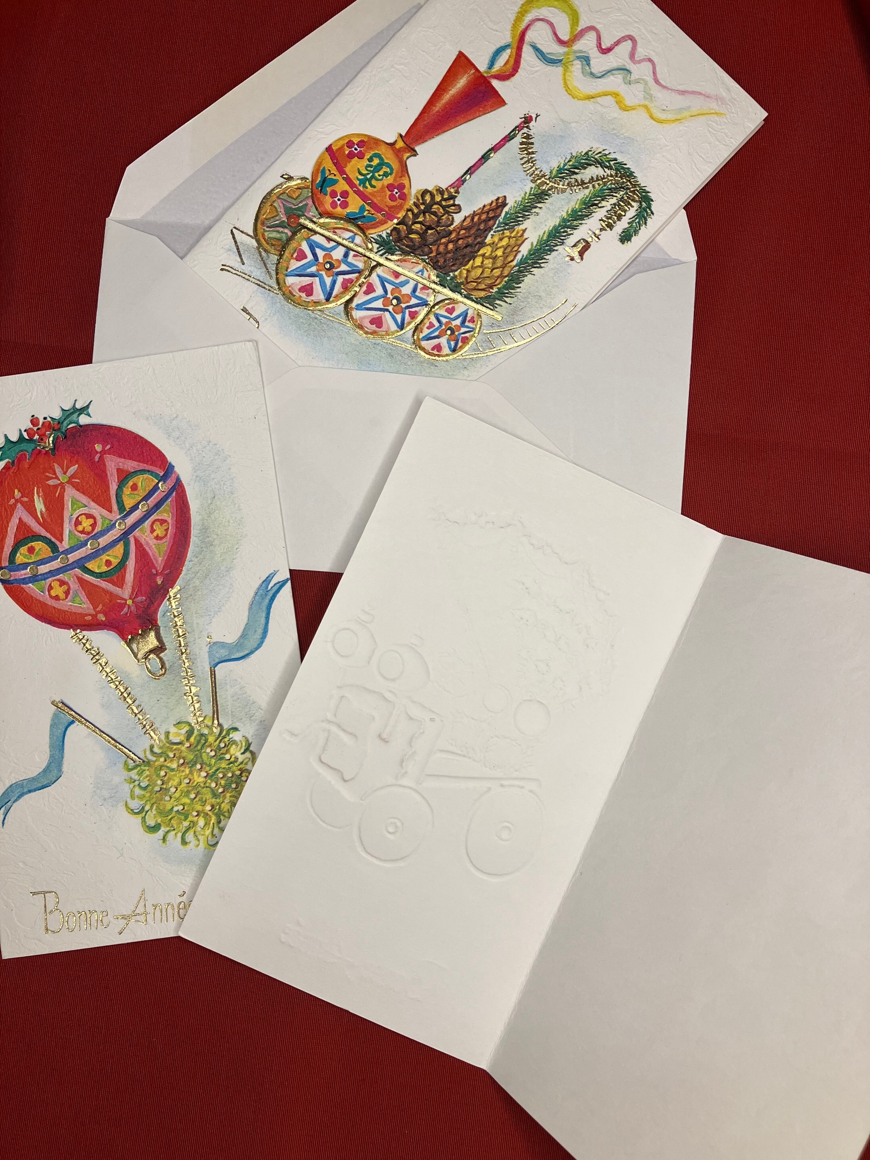 手描きタッチのクリスマスオーナメントはキラキラと金彩してあって、クリスマス独特の幸せムードに包まれたとても可愛らしいカードです。