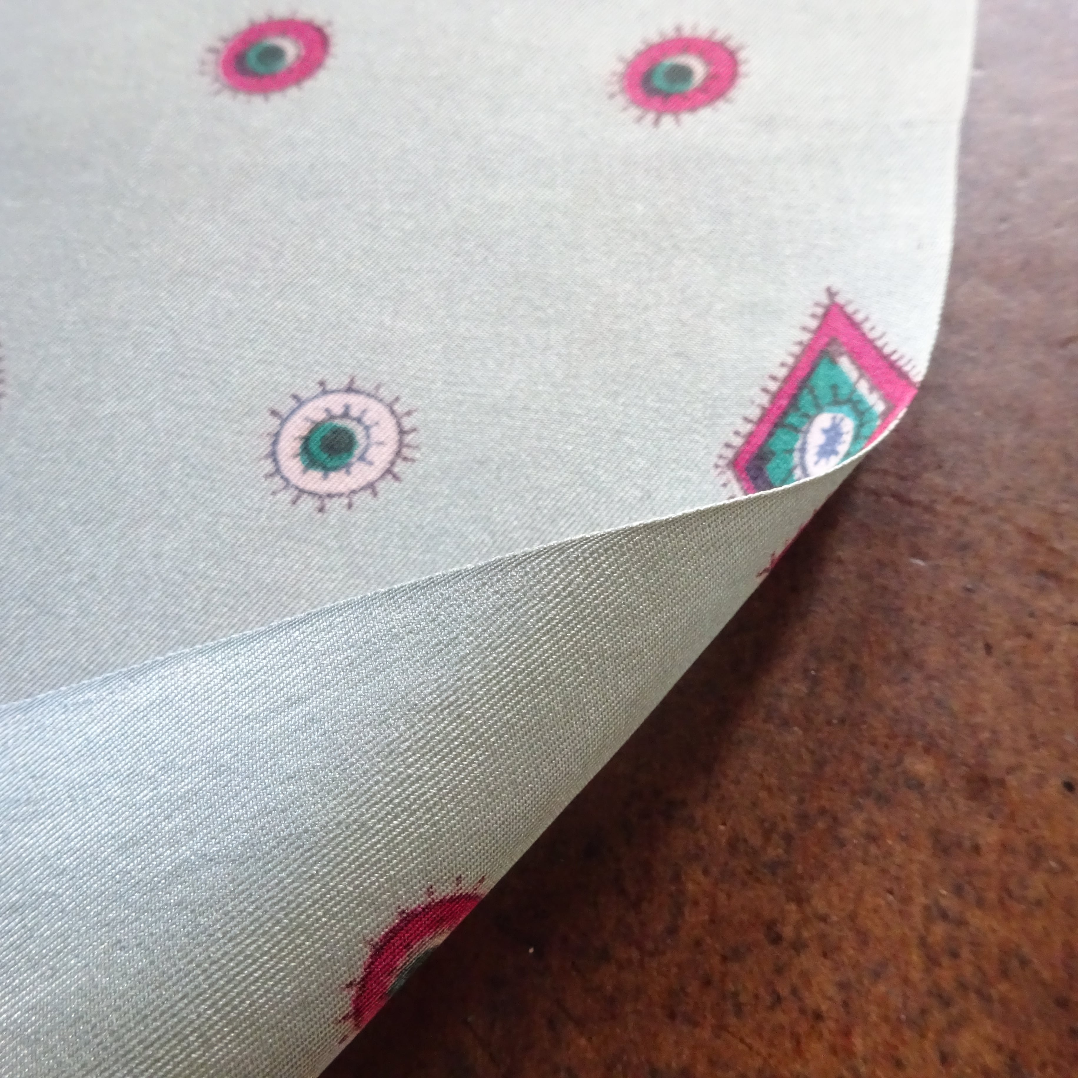 太めの長方形で、少しマットな質感のシルクスカーフ