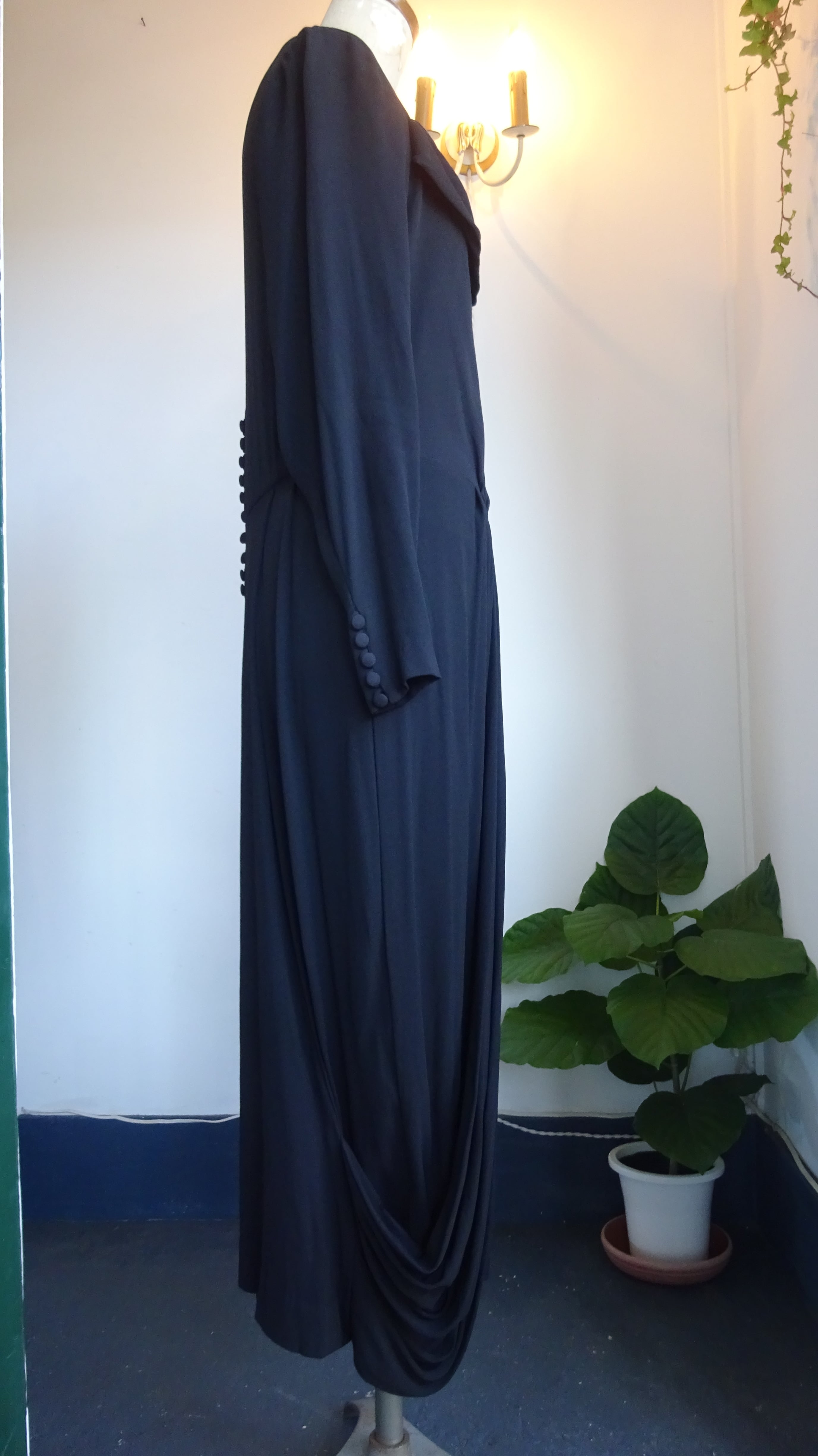 裏サテンジョーゼットという、マットな質感と艶のある質感が表裏一体になった、かなり上品な生地を贅沢に使用したドレス