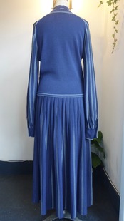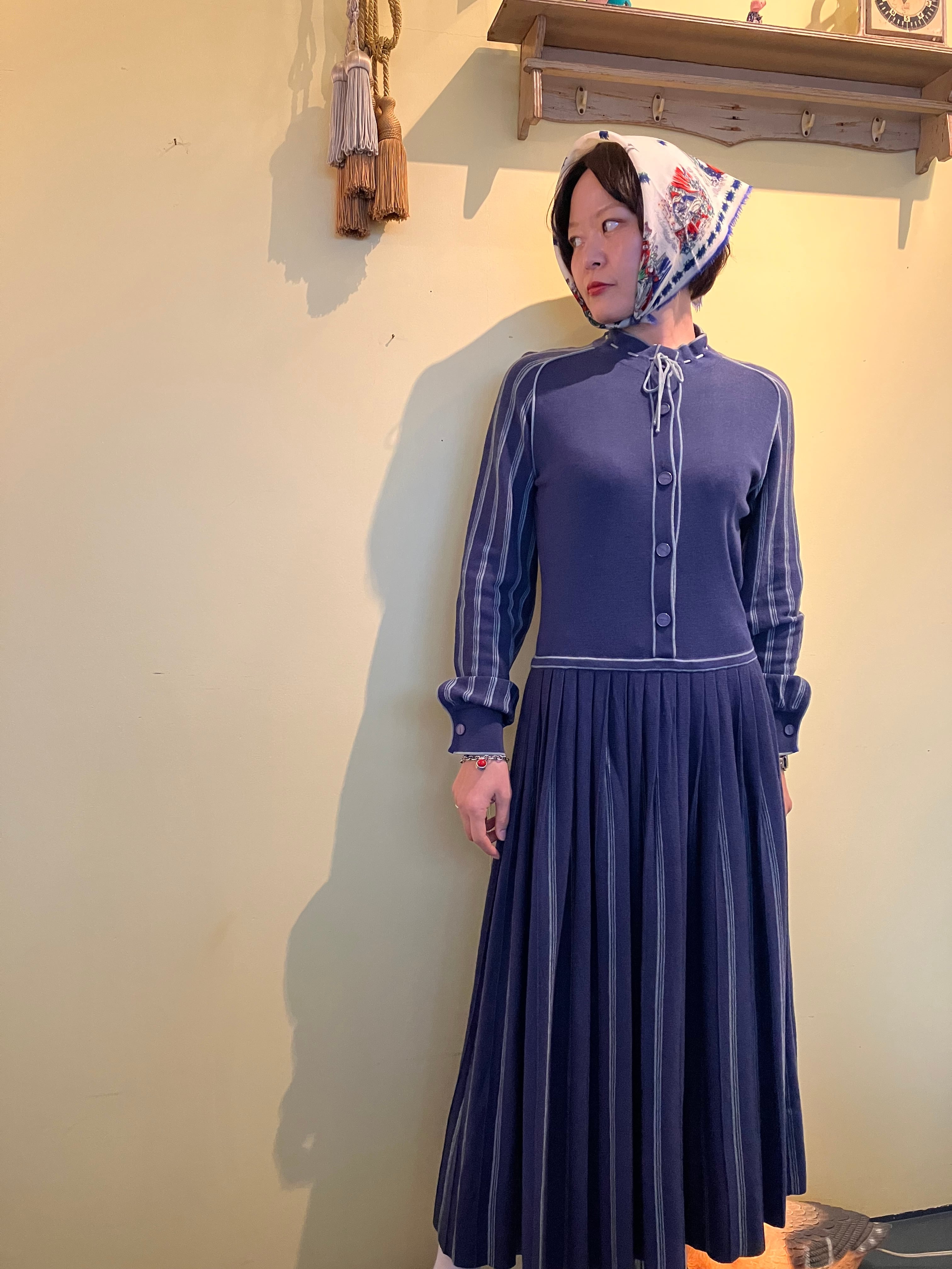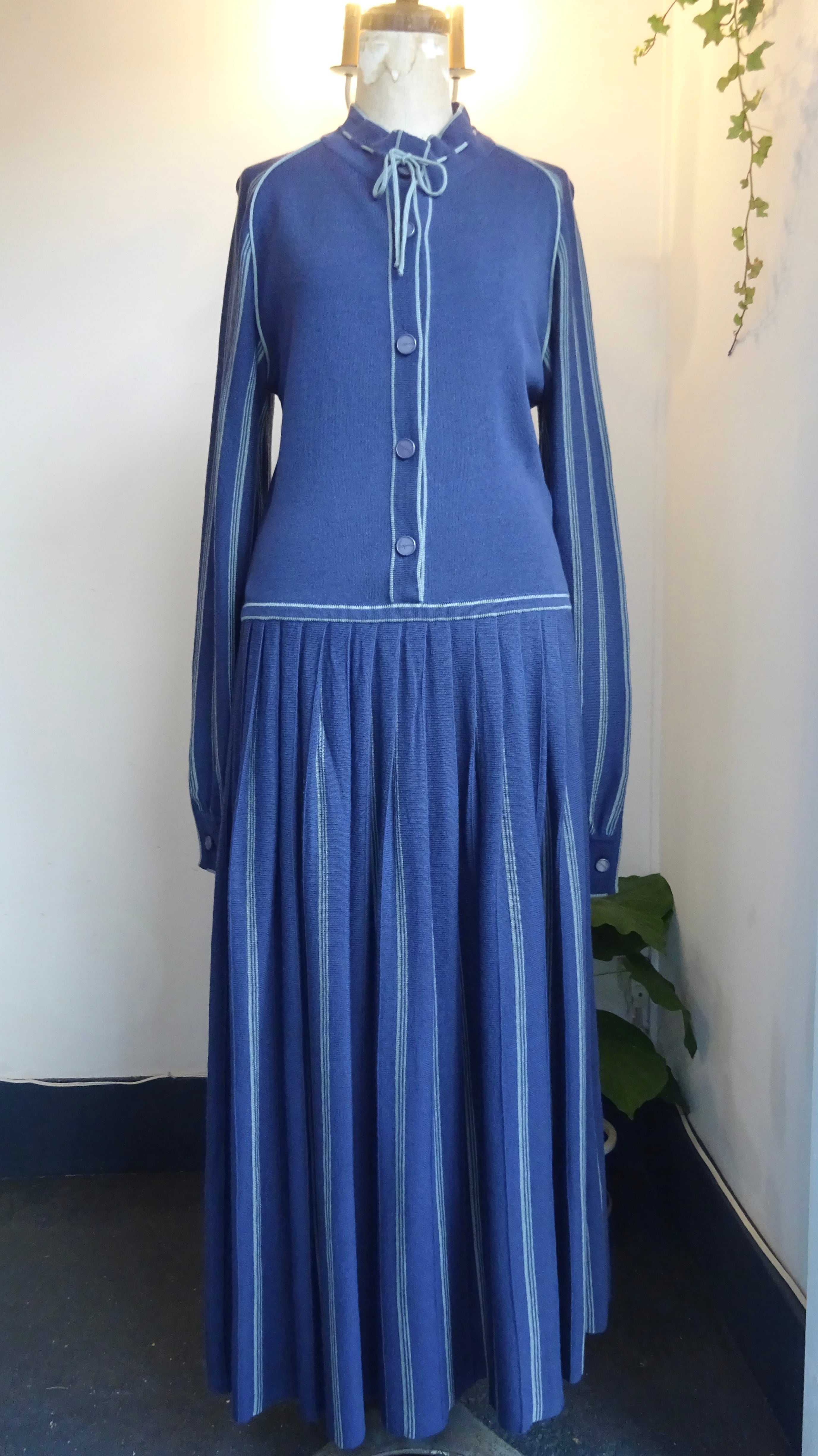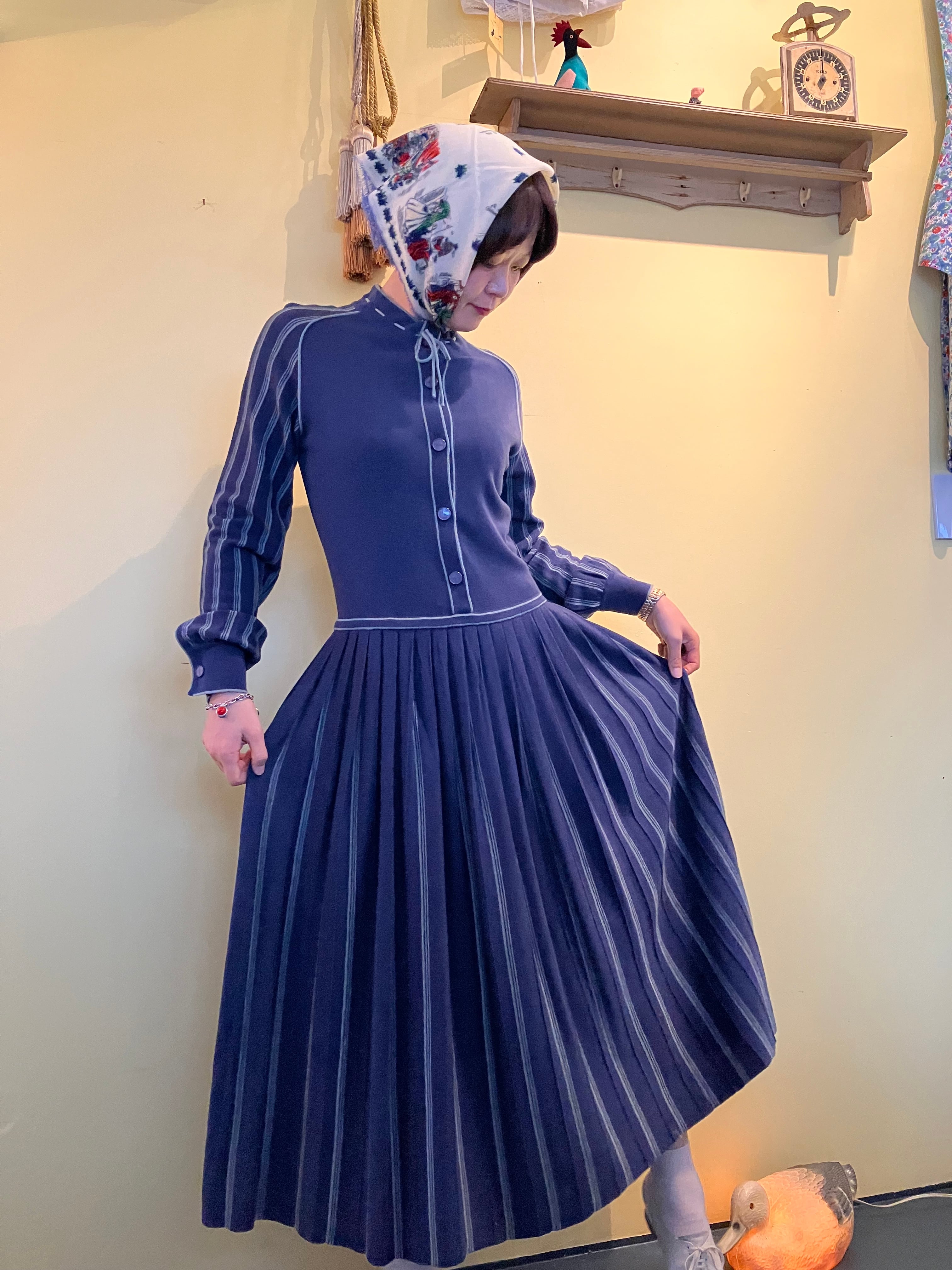 ラグランに程よくパフになった袖、ストライプのデザインがスラっと長い腕に見せてくれて、ローウエストからふんわり広がるプリーツスカートがとてもエレガントな印象です。