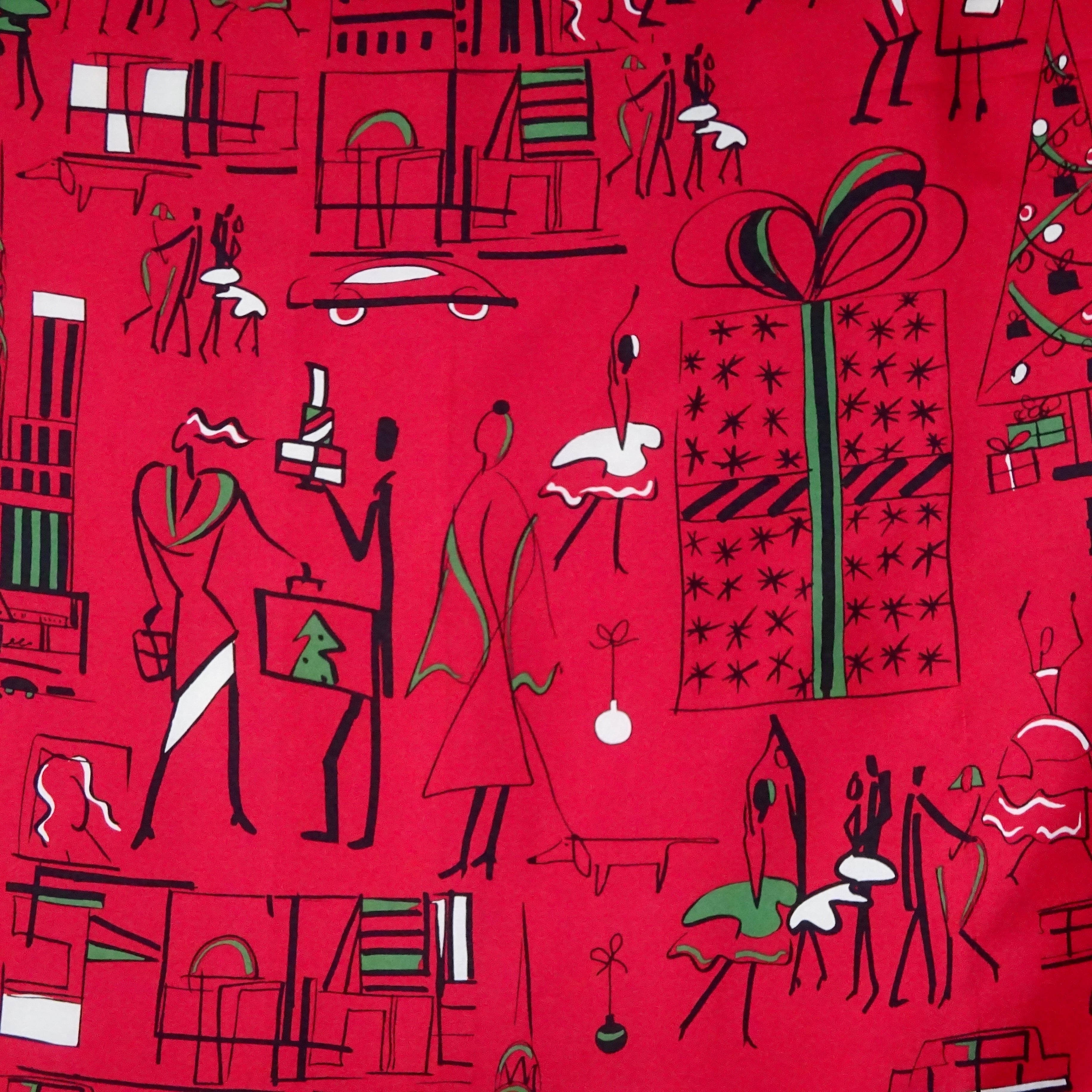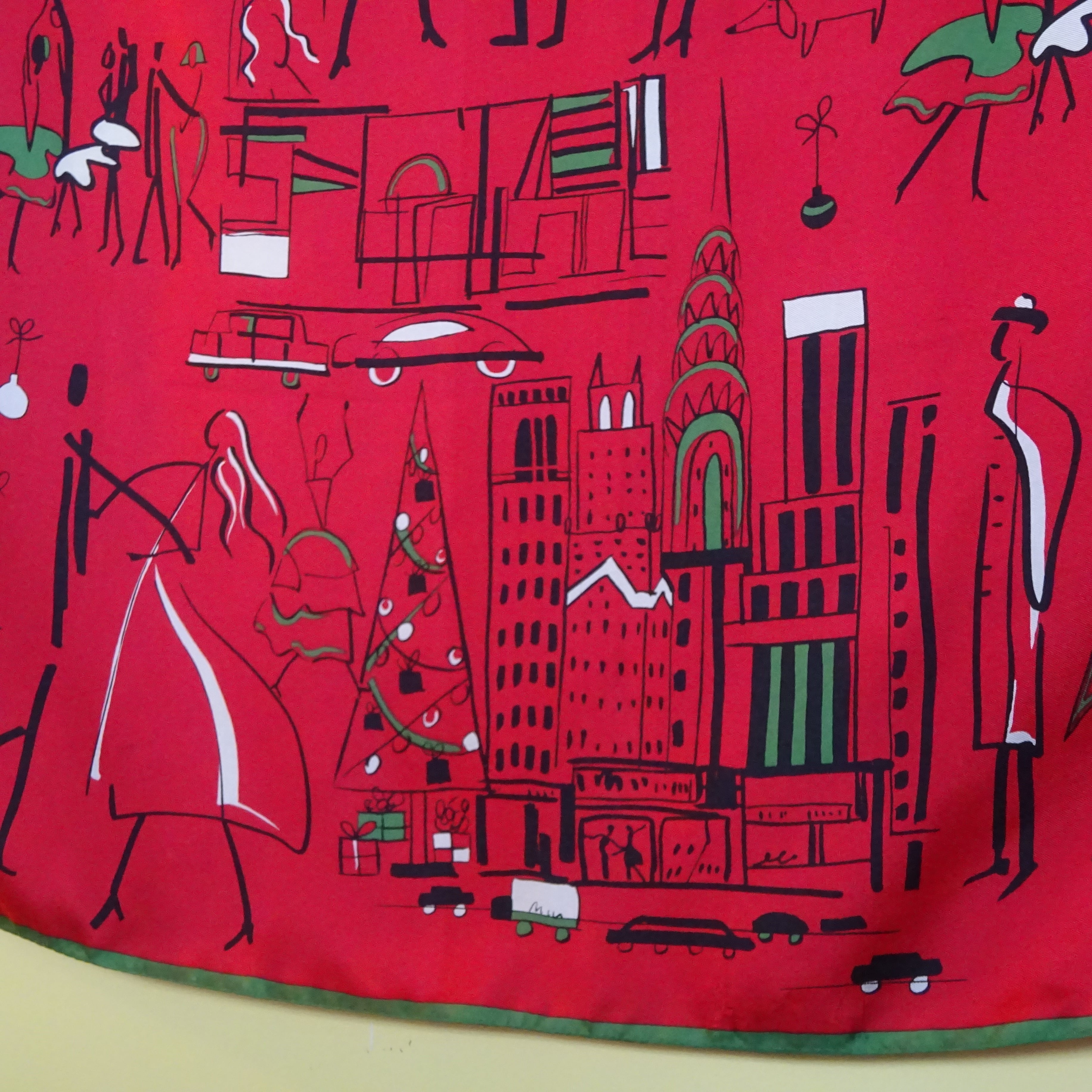 クリスマスで賑わう街並みや、人々の感情がとってもよく伝わってくるような、なんだかハッピーな柄のスカーフ