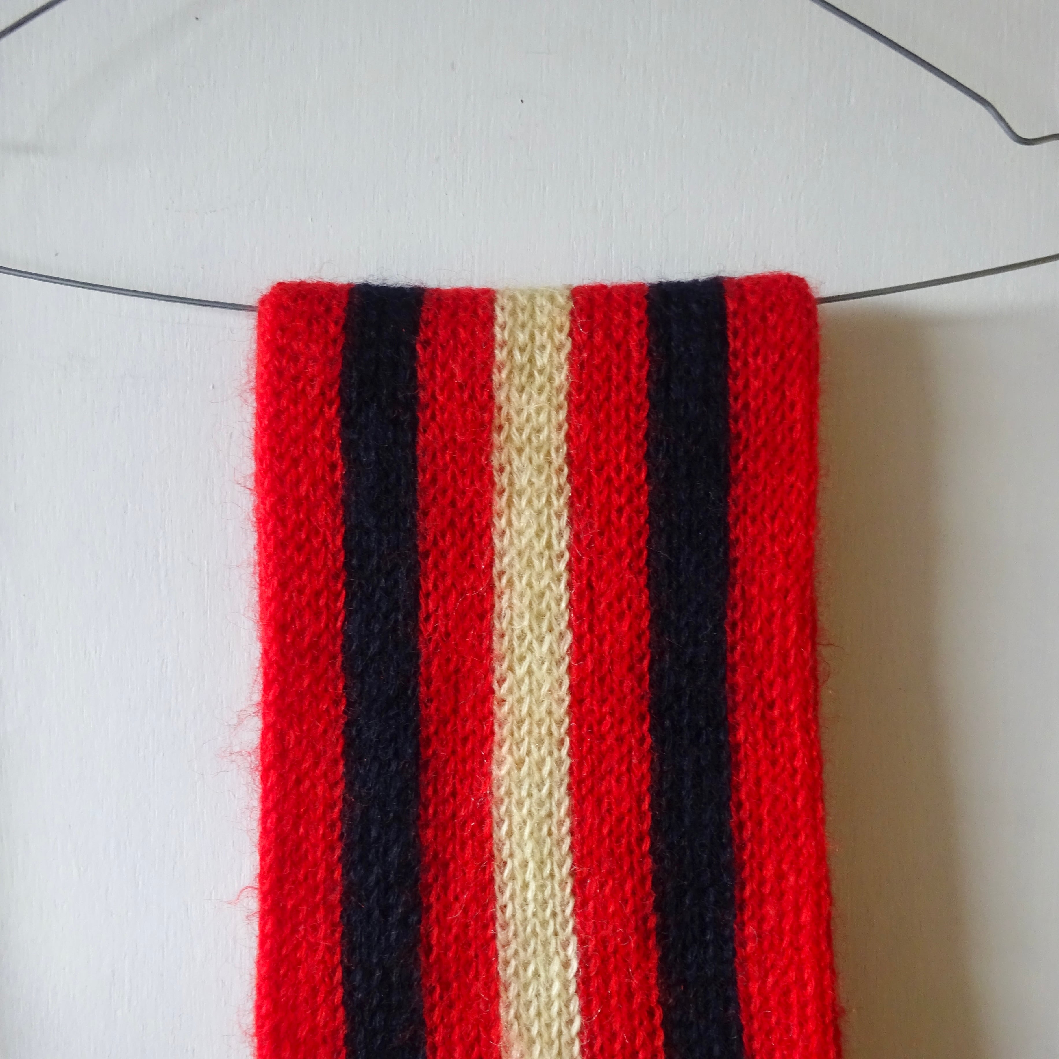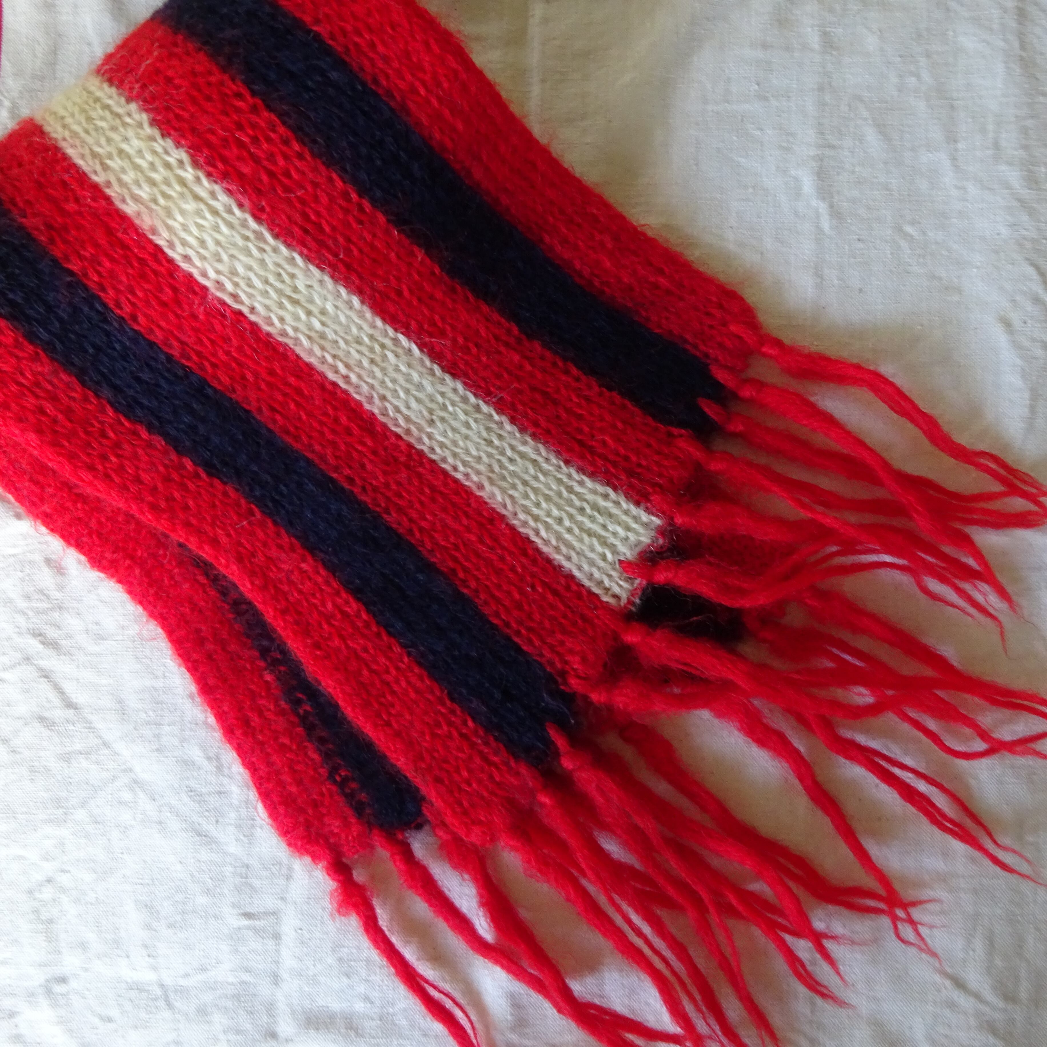 トリコロールカラーでふわっと軽くて暖かい手編みのマフラー