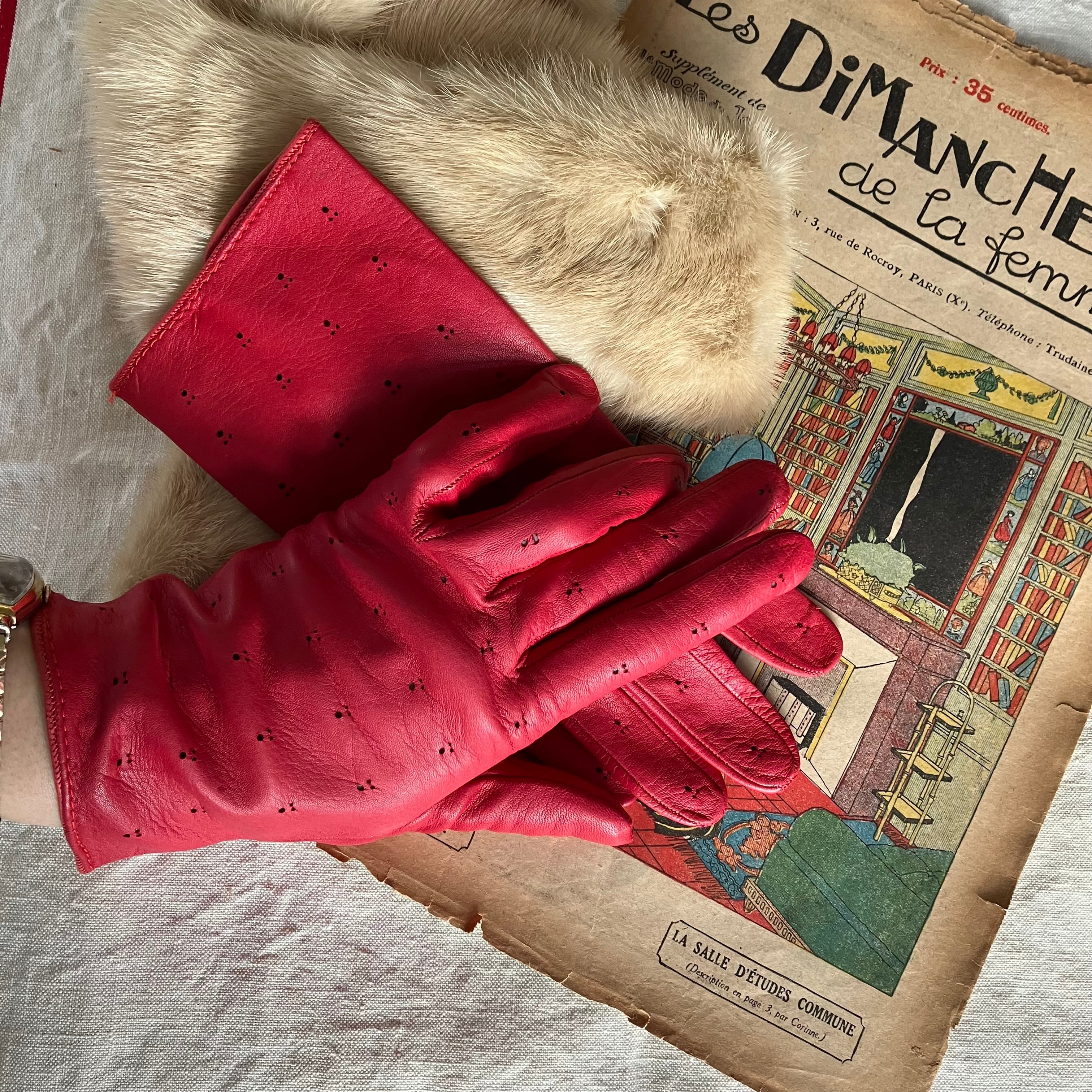ヴィンテージのレザーグローブでも色物は少ない方で、赤は便利ですがなかなか出てこない色味です。