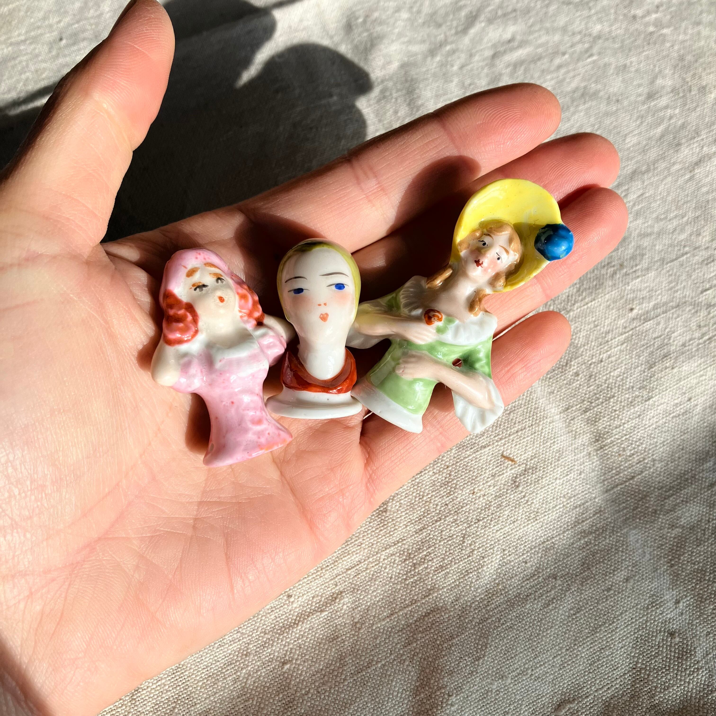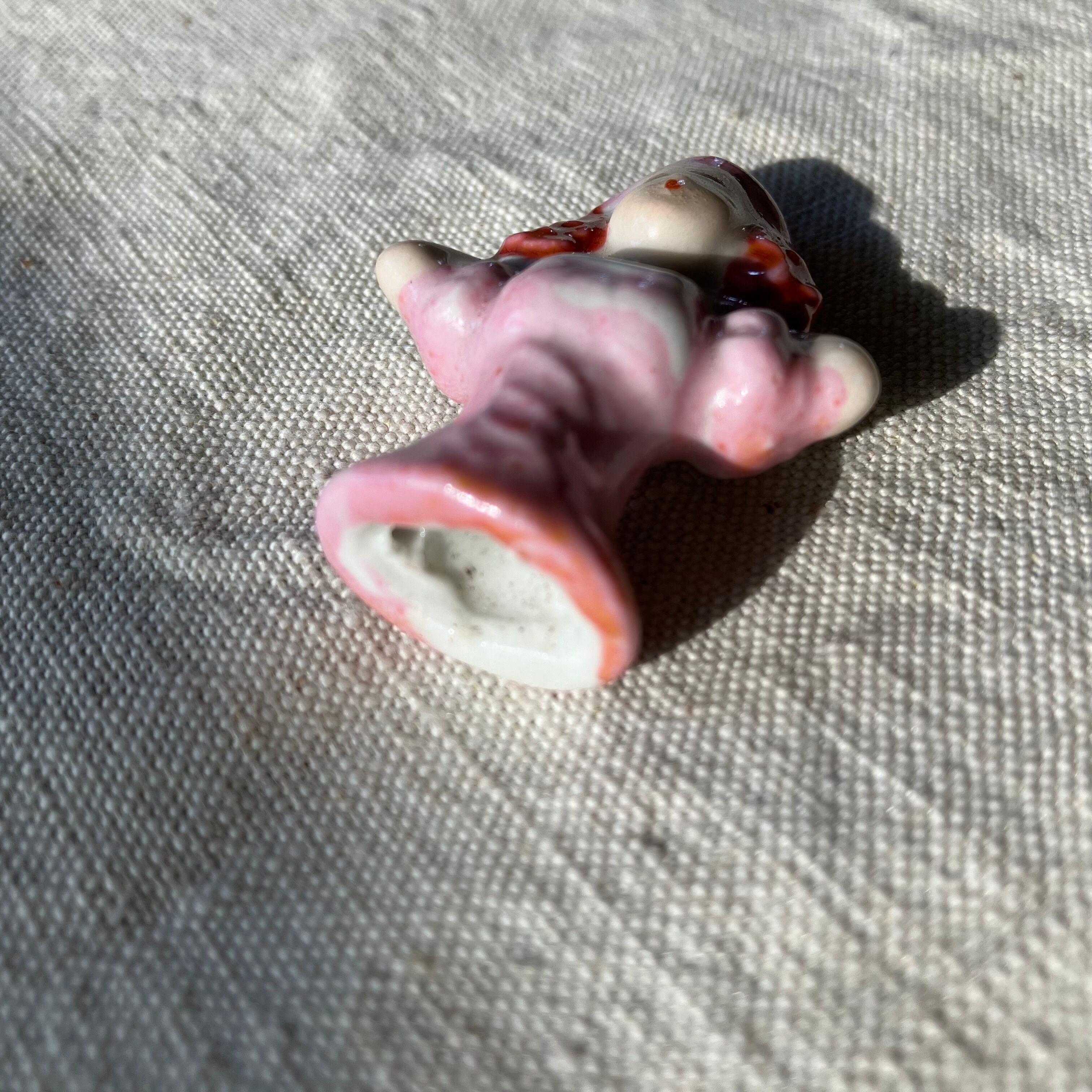 風に飛ばされそうな帽子を押さえる少し困り顔のフィギュリン