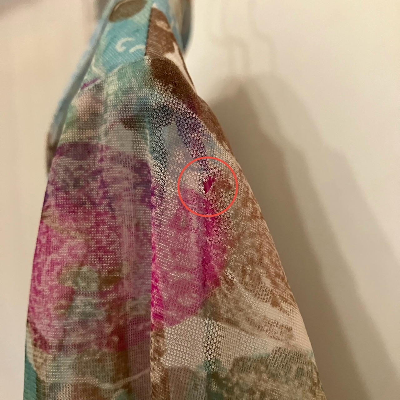 左袖の肩付近に4mm程の小穴×1