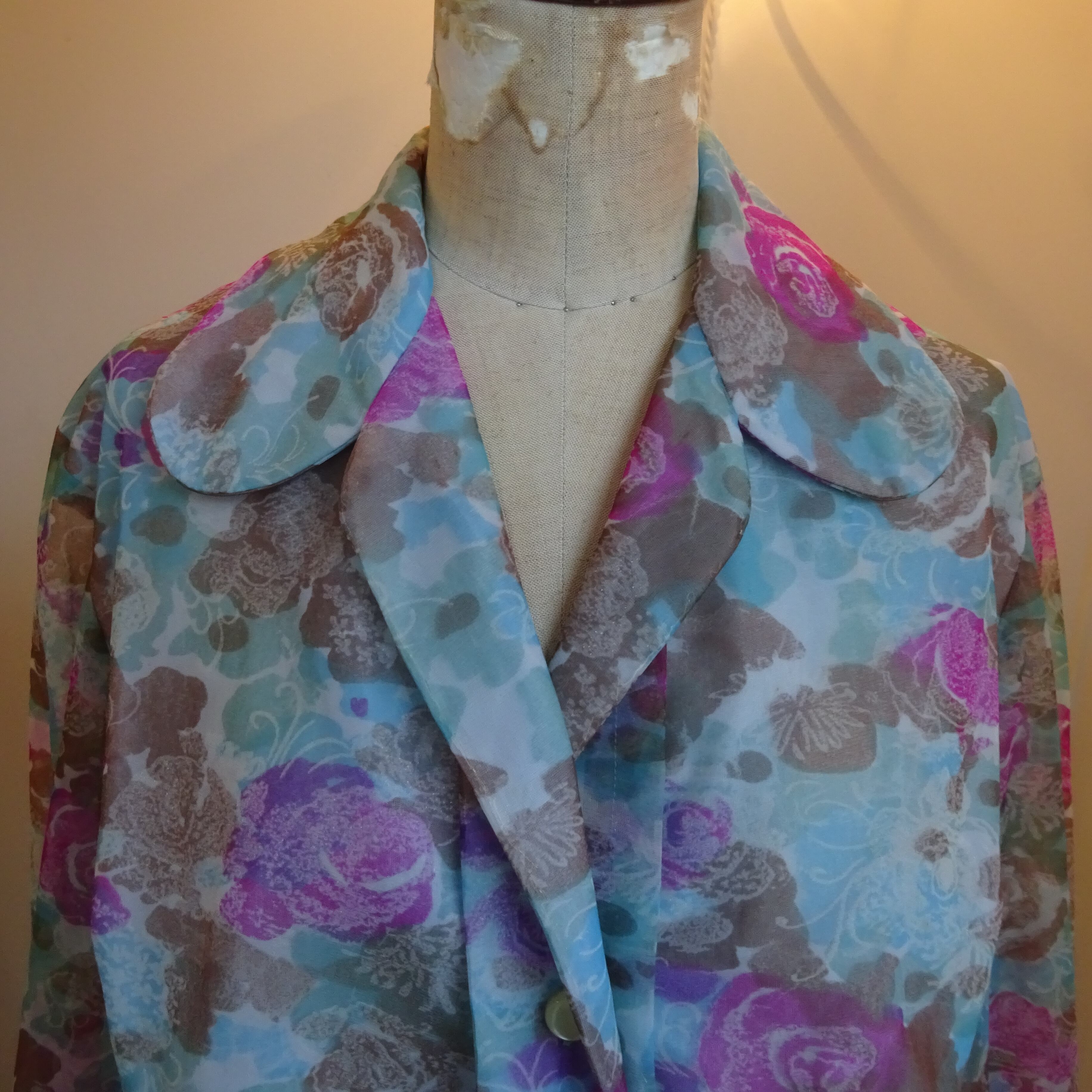 デフォルメされた丸くて大きな襟が60〜70年代らしく、立体的な作りがスタイルを良く見せてくれる優れた一枚です。