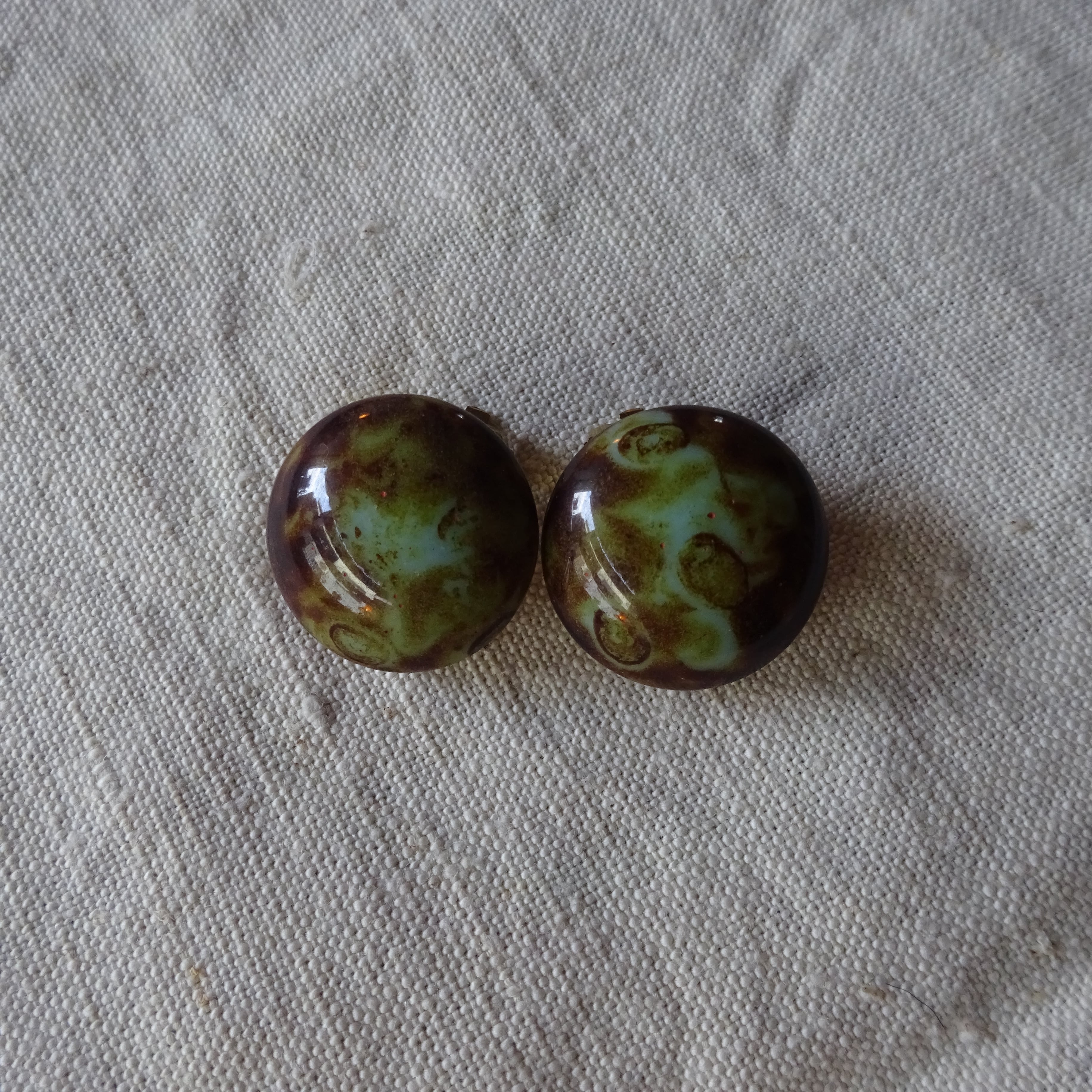 デッドストックのマーブル模様ガラスイヤリング