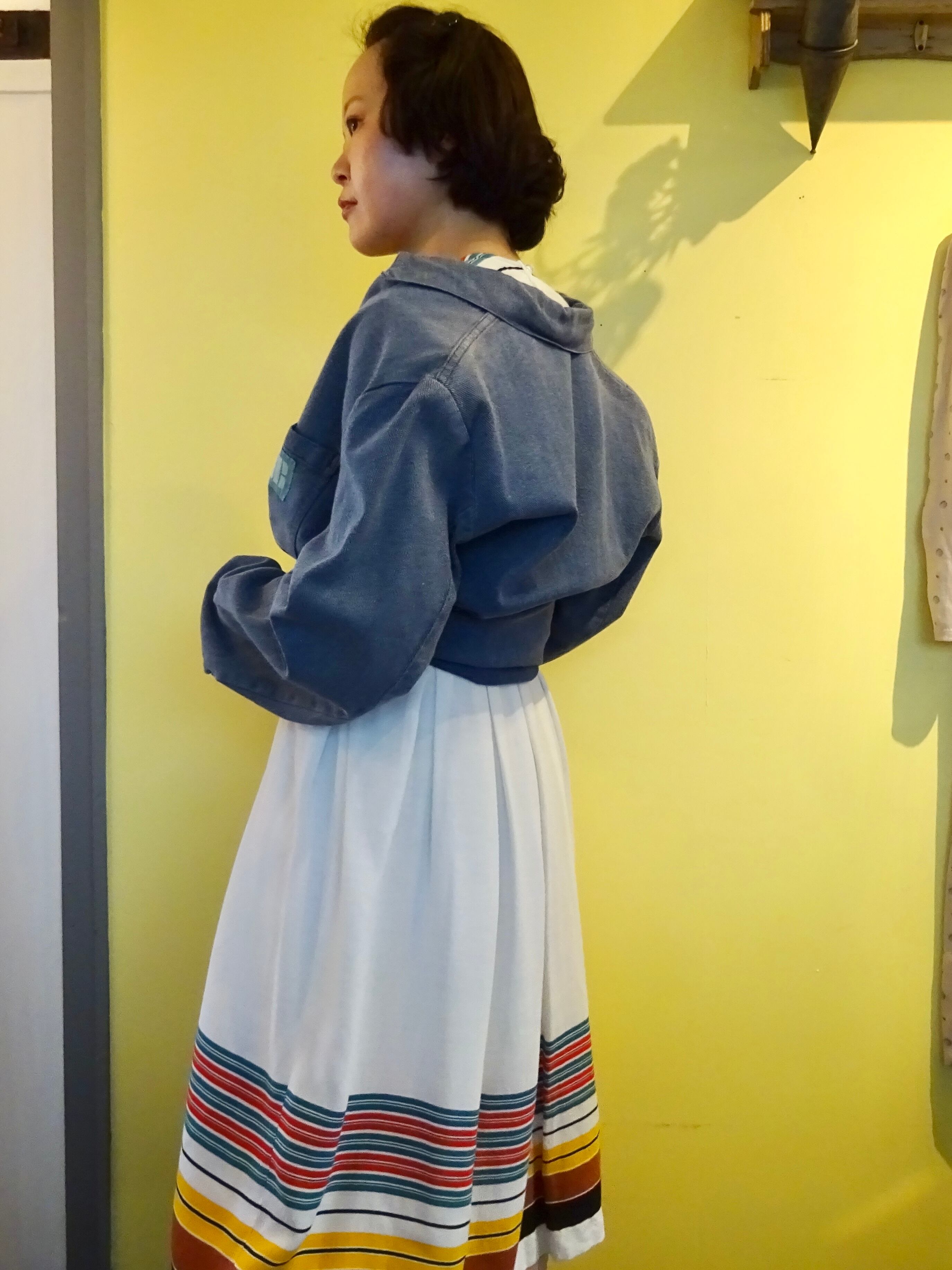 この年代によくあるような所謂フィット&フレアとはまた少し違ったシルエットで、ラフに、カジュアルに、組み合わせ次第で大人の魅力も発揮するデザインです。