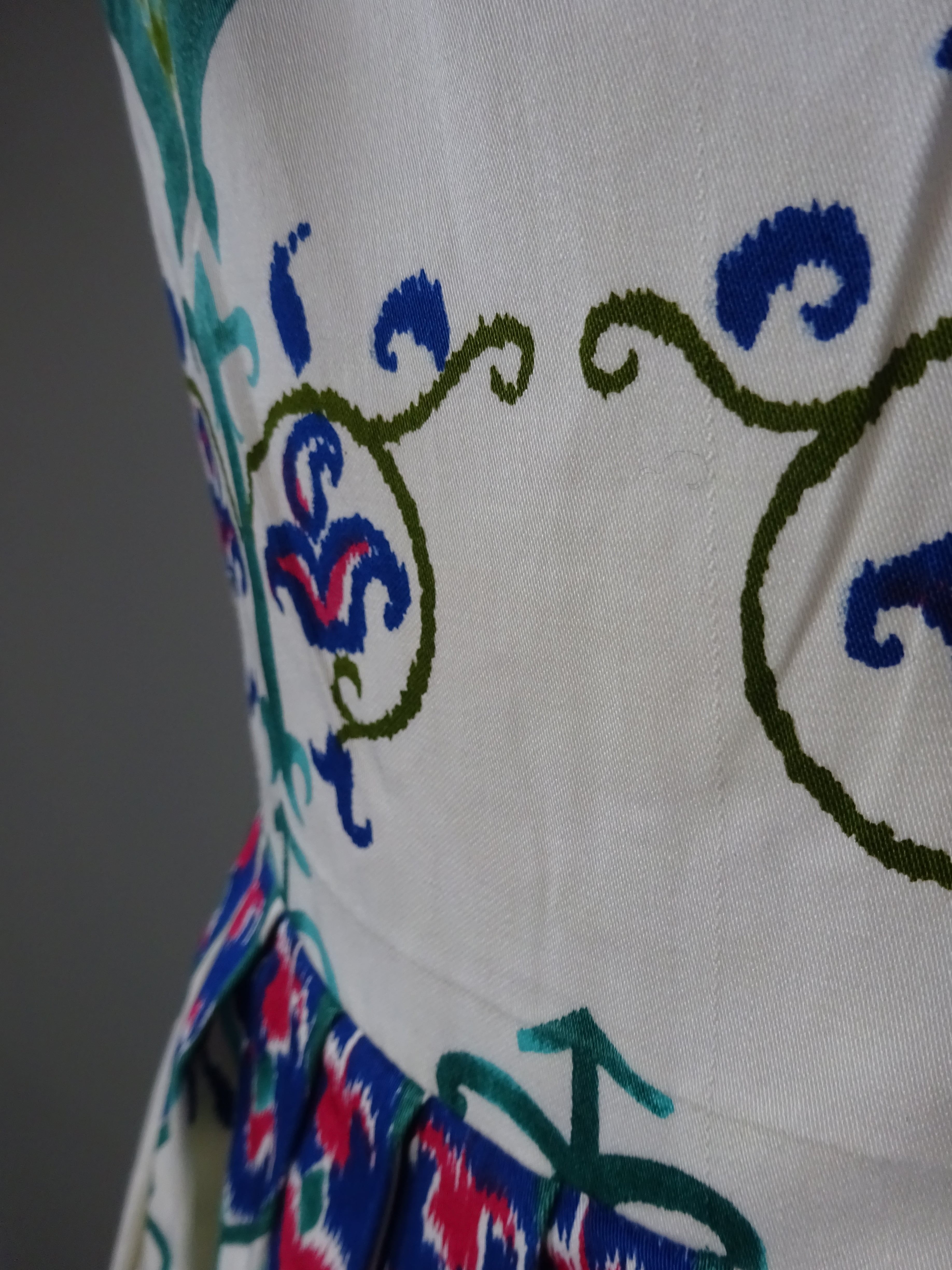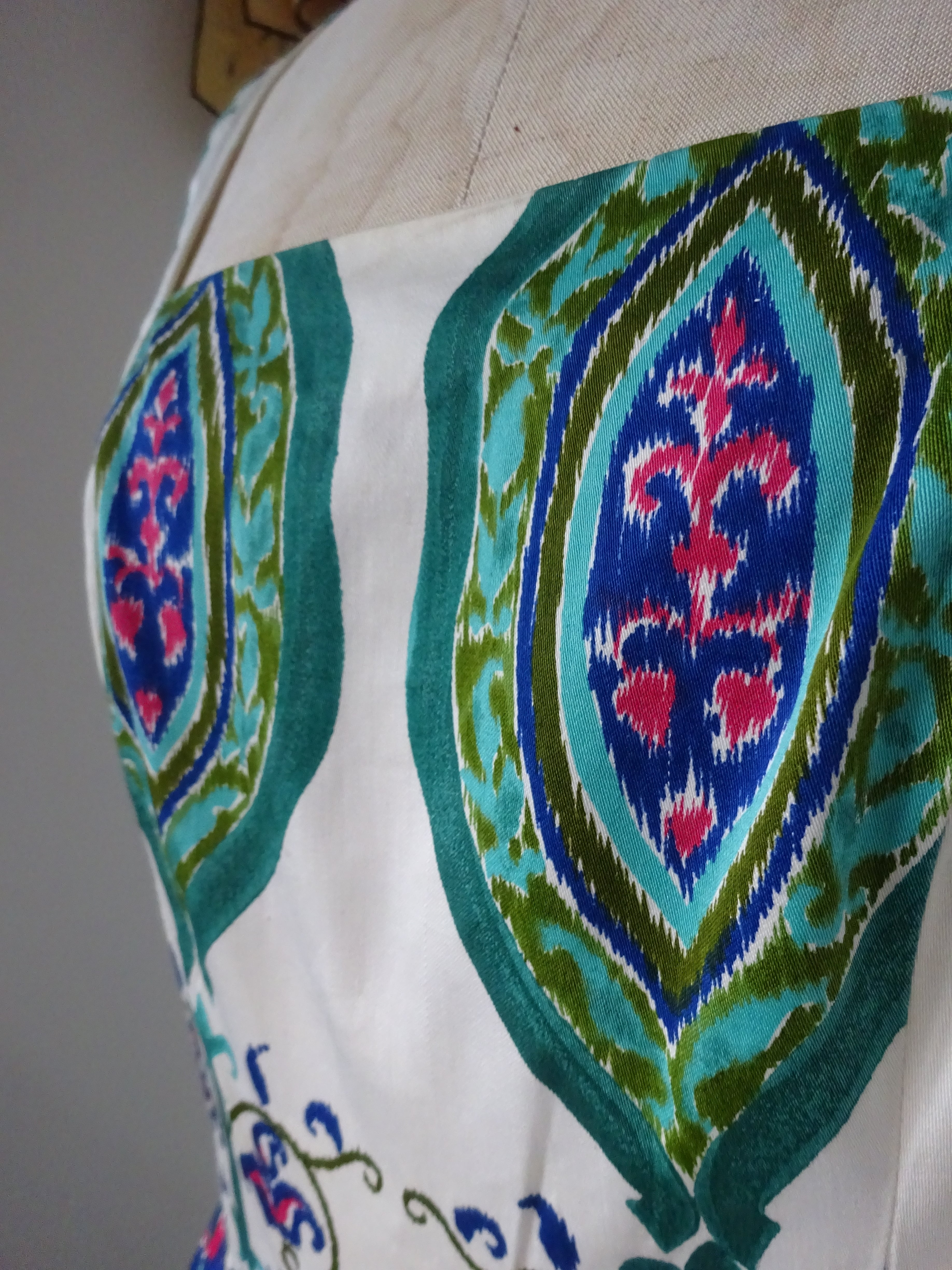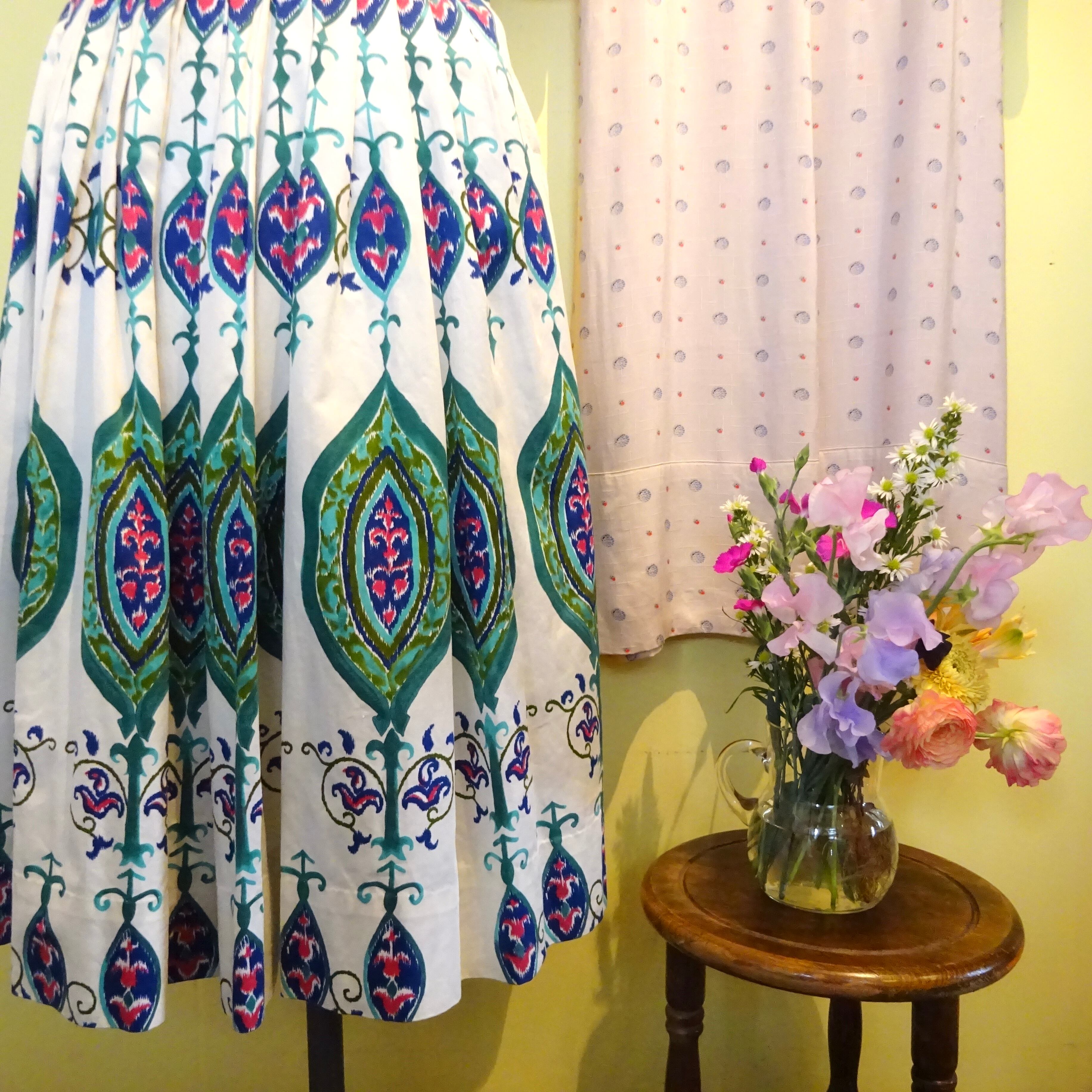コットンがかなり上質でとても滑らかなのですが、ちょっとしたカーテンなどにも出来そうなくらい織りや発色が美しいテキスタイルです。