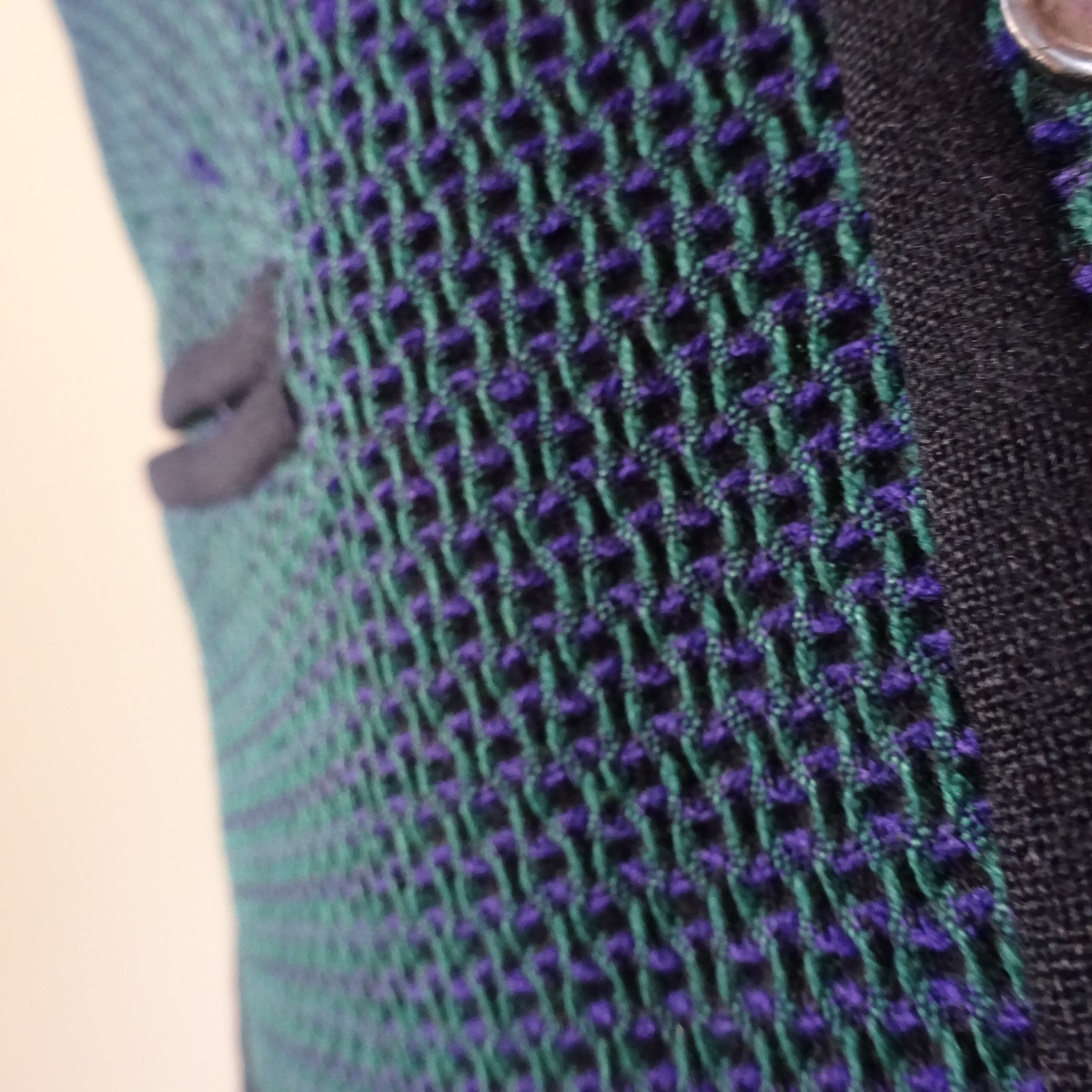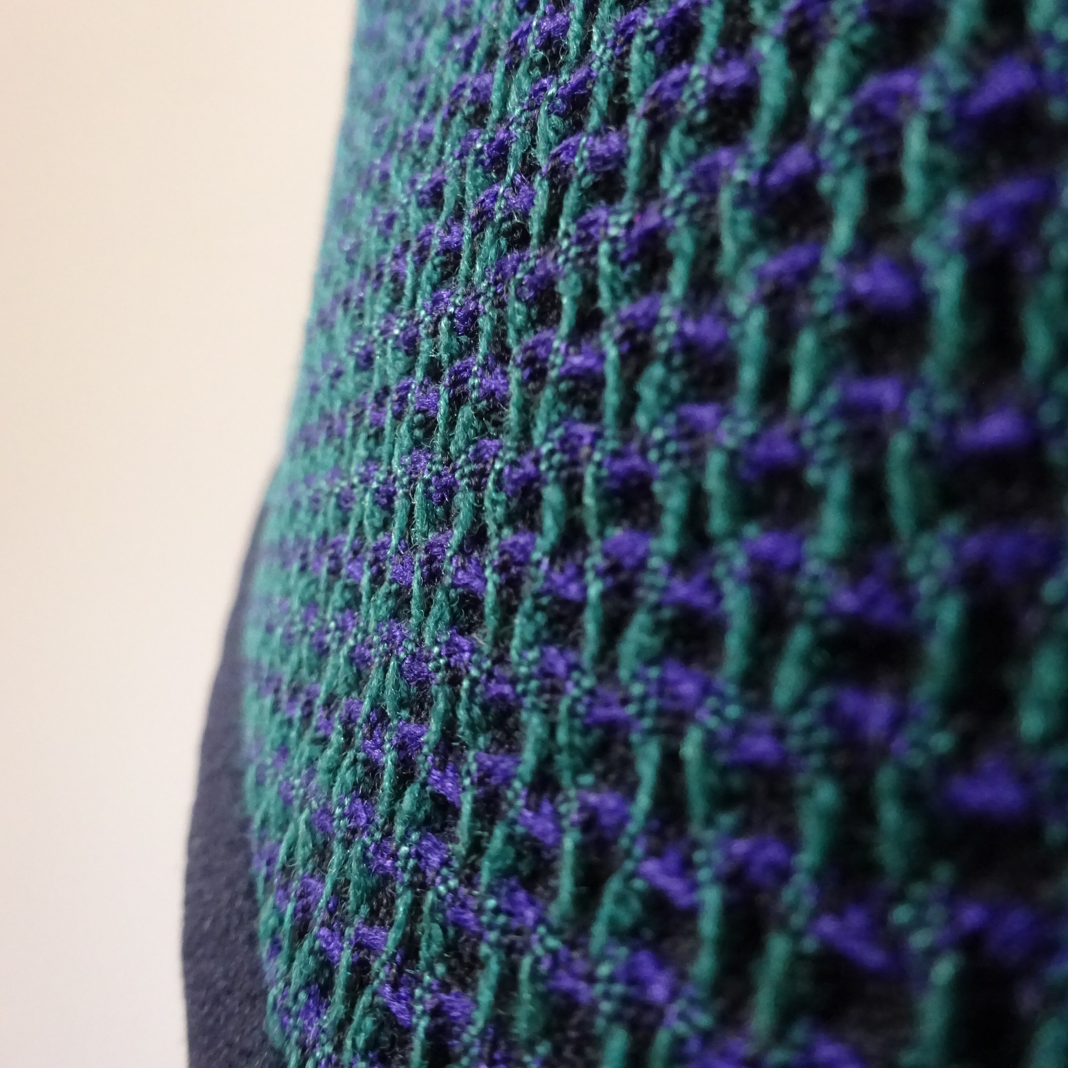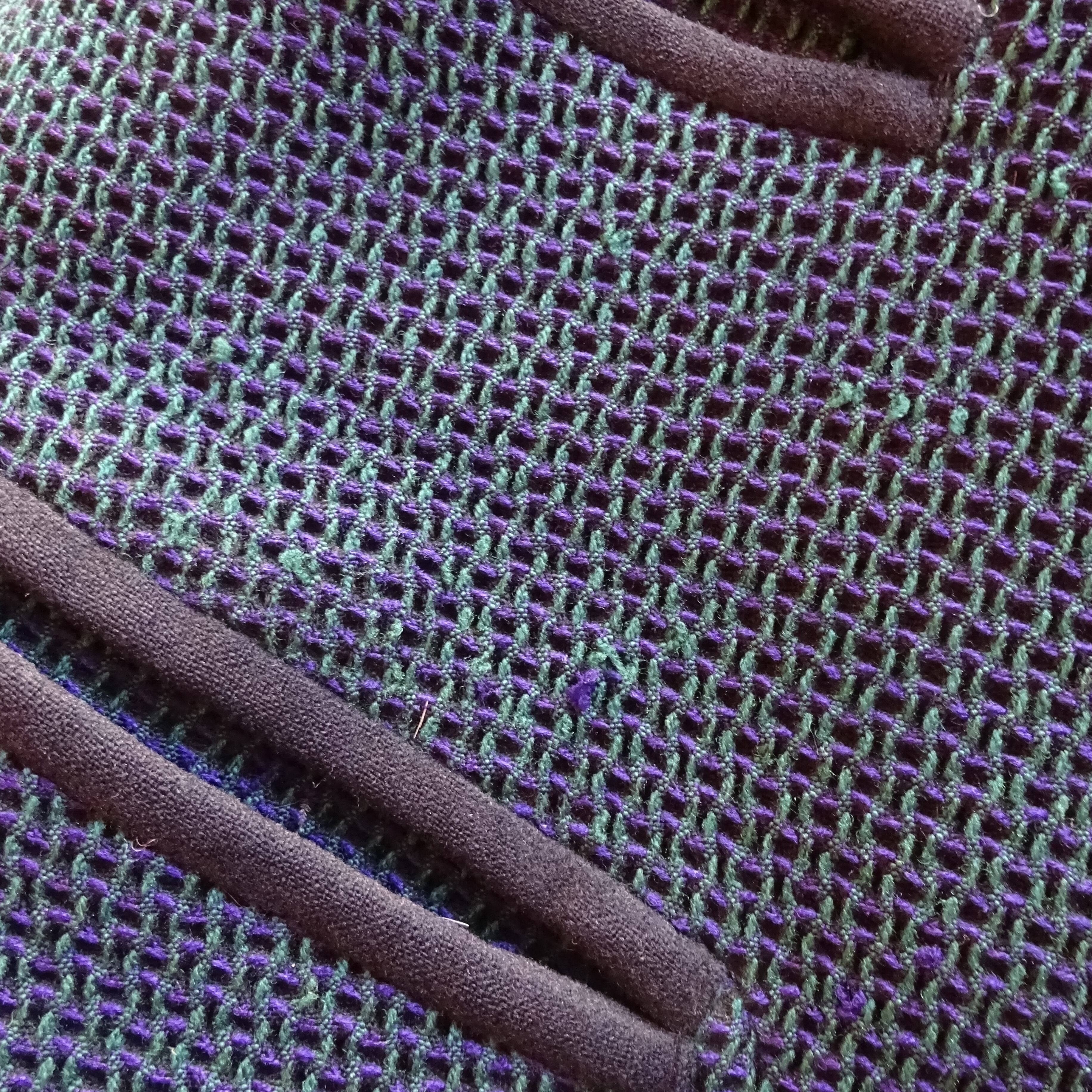 ただとにかく生地や作りが良く、紫と緑のコントラスト、どのように織られているのか分からないワッフルのような縦横の凹凸