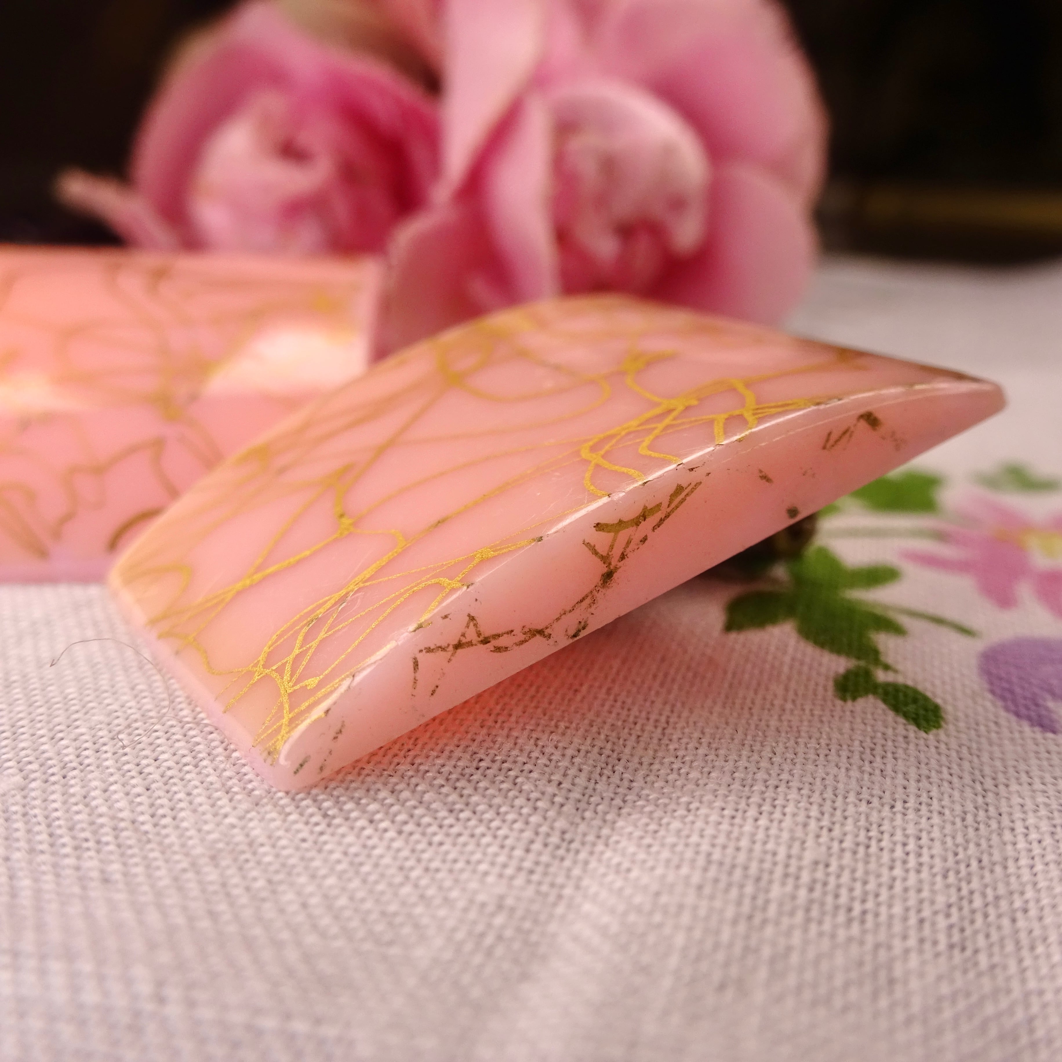 ピンク × ゴールドの抽象的な柄はいかにもミッドセンチュリー感漂うデザインです。