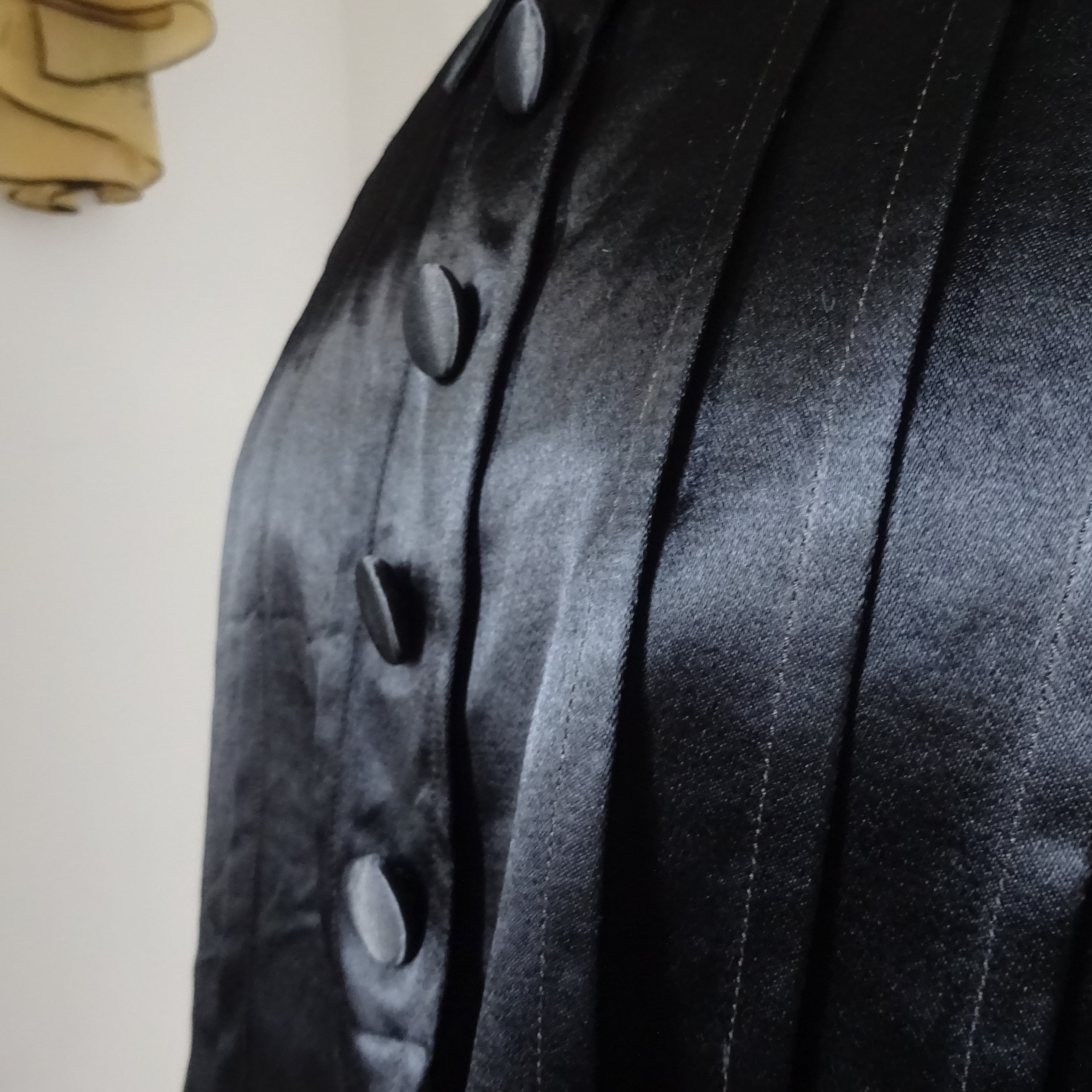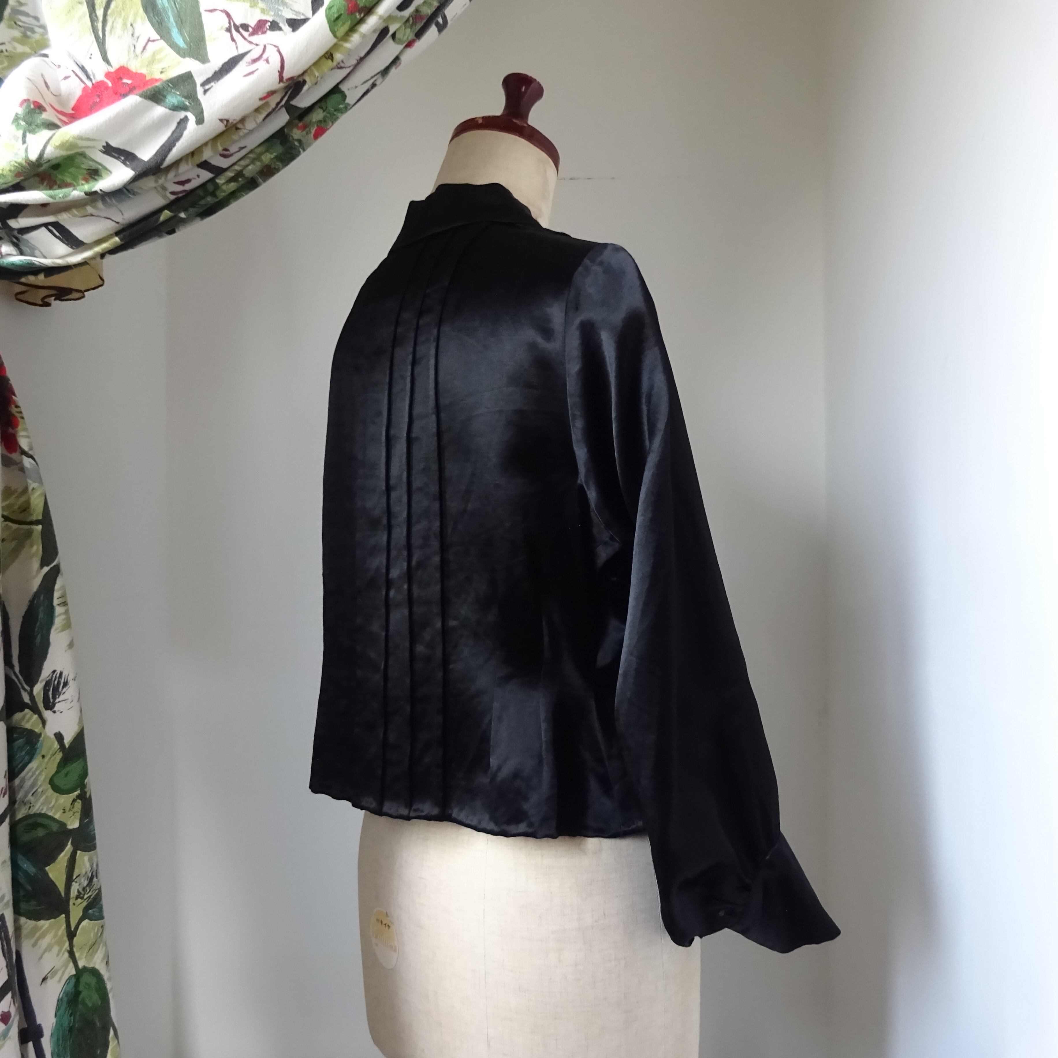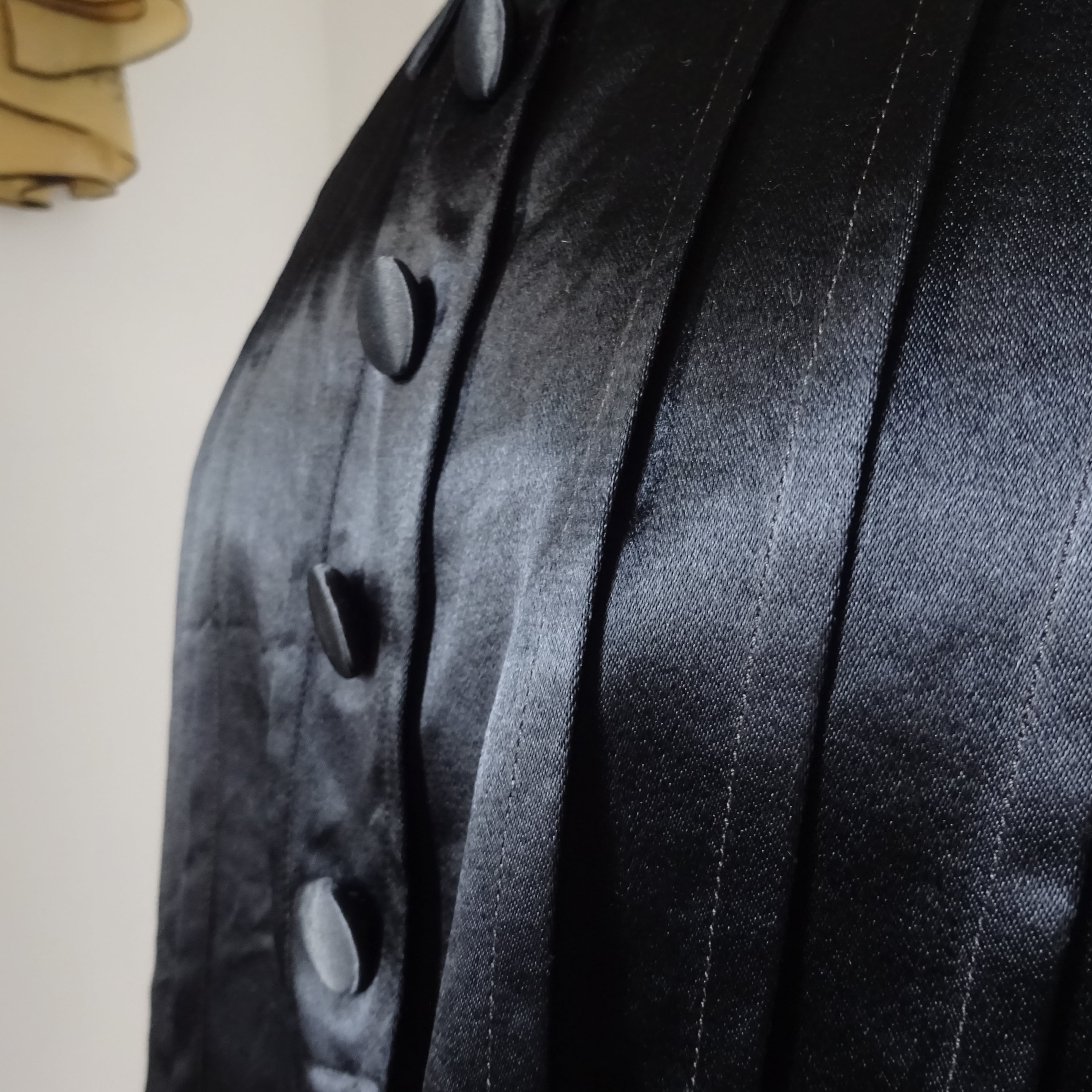 現行のものでは考えられないほどしっかりとした生地のサテンで、どうやって裁断したらかなシルエットになるんだろうというくらい美しい袖。