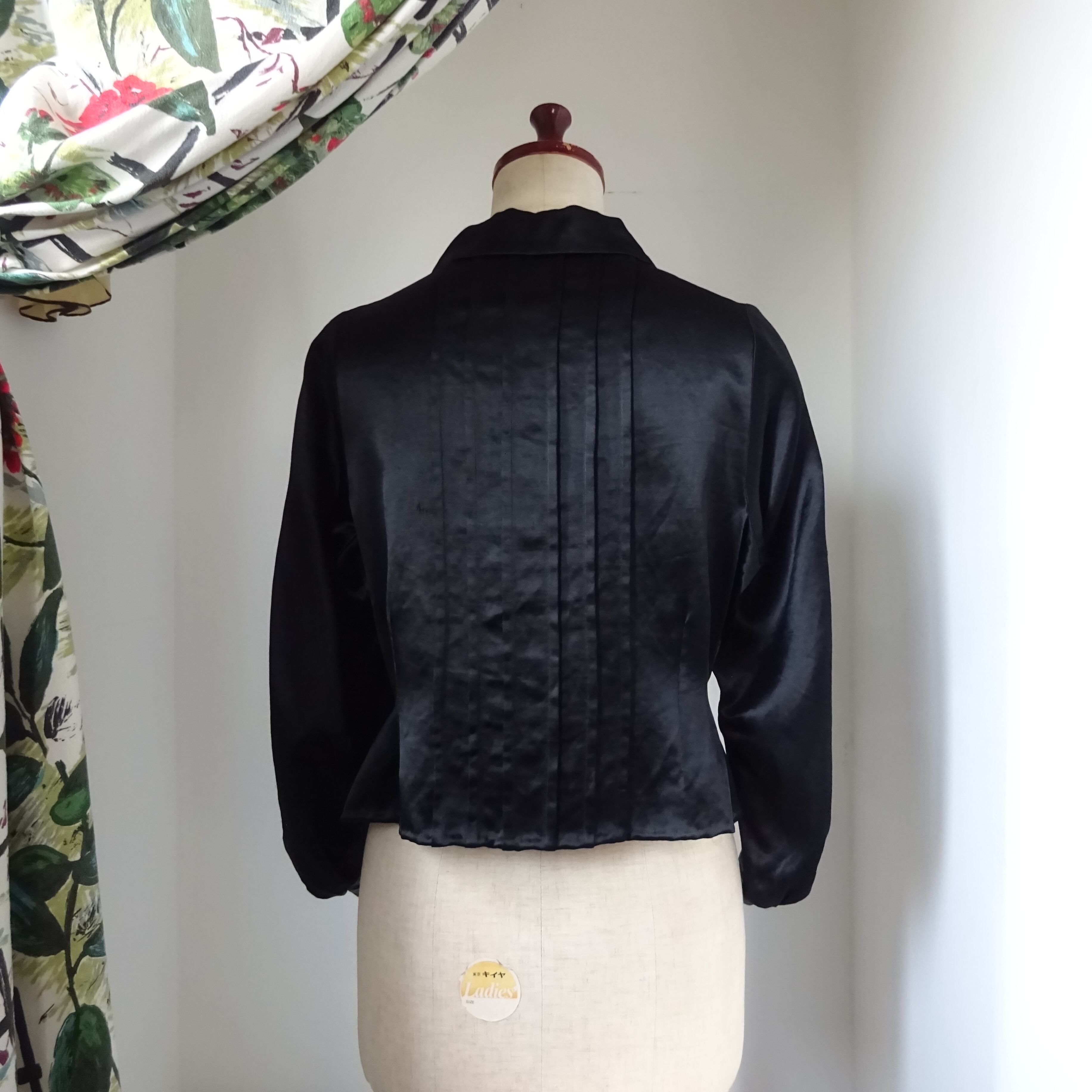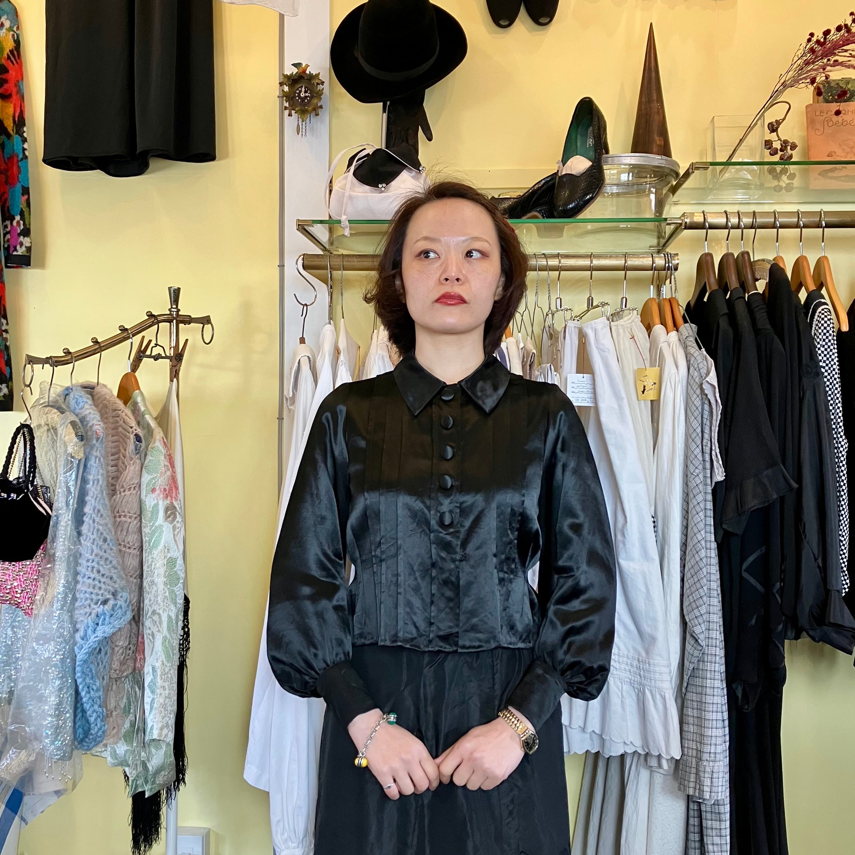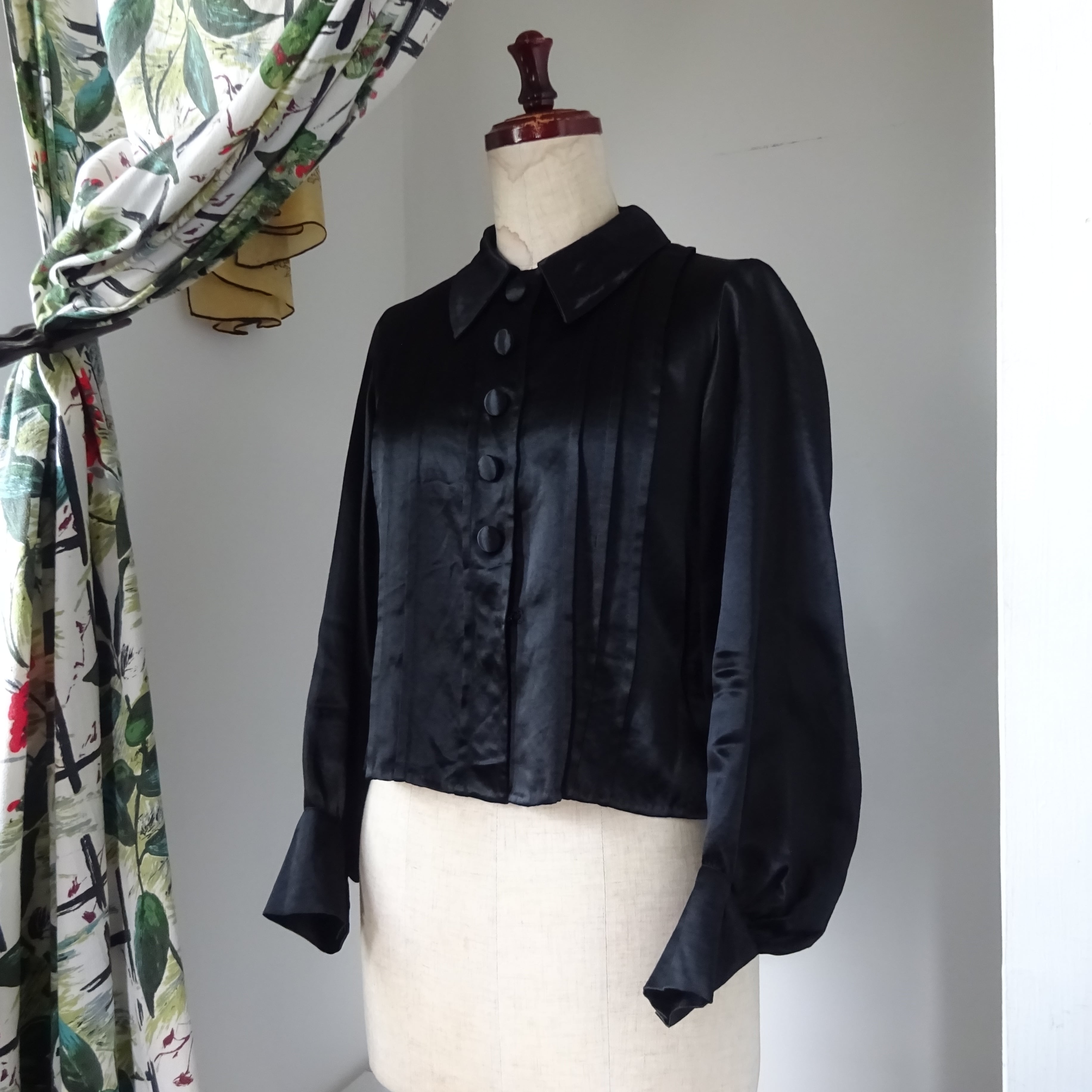 現行のものでは考えられないほどしっかりとした生地のサテンで、どうやって裁断したらかなシルエットになるんだろうというくらい美しい袖。