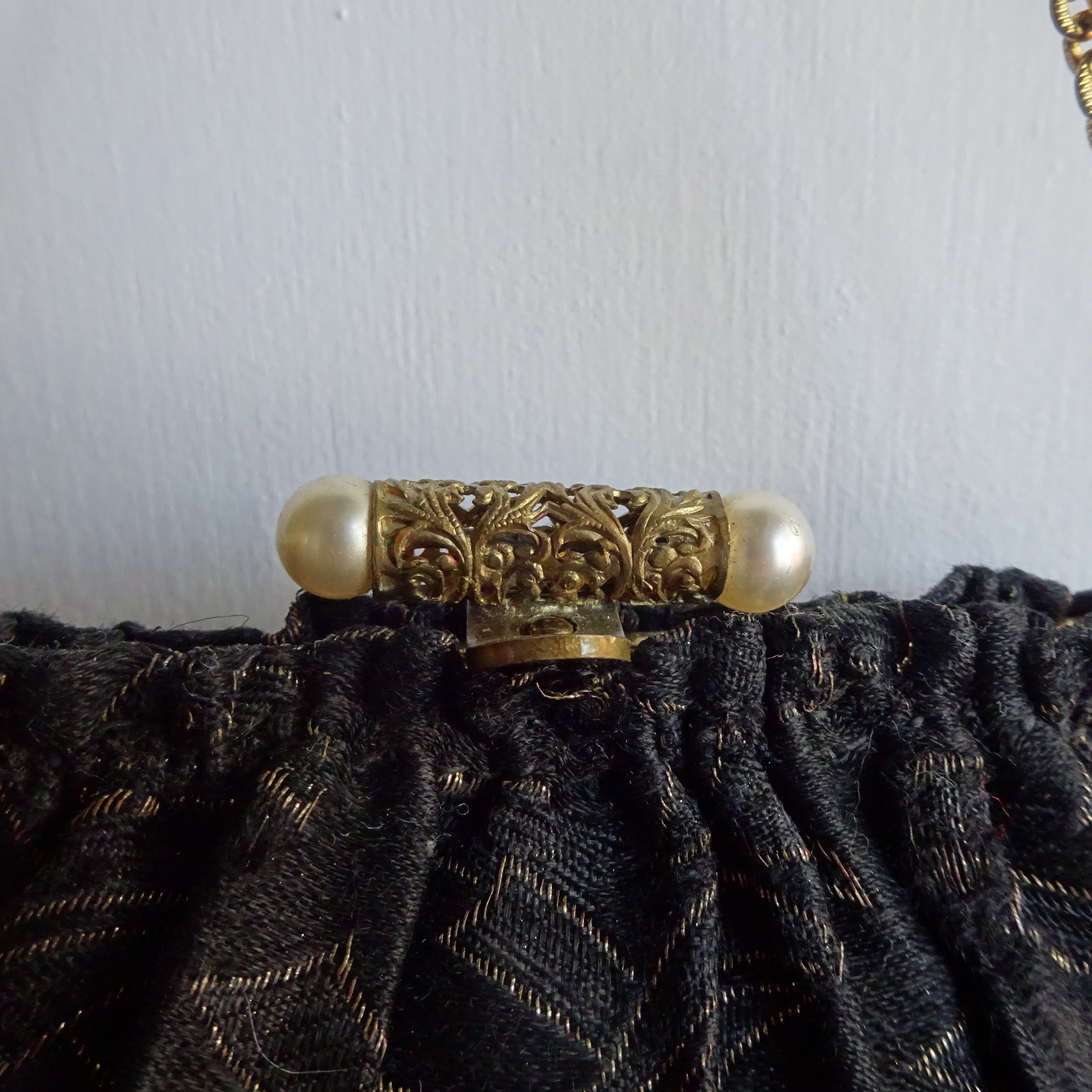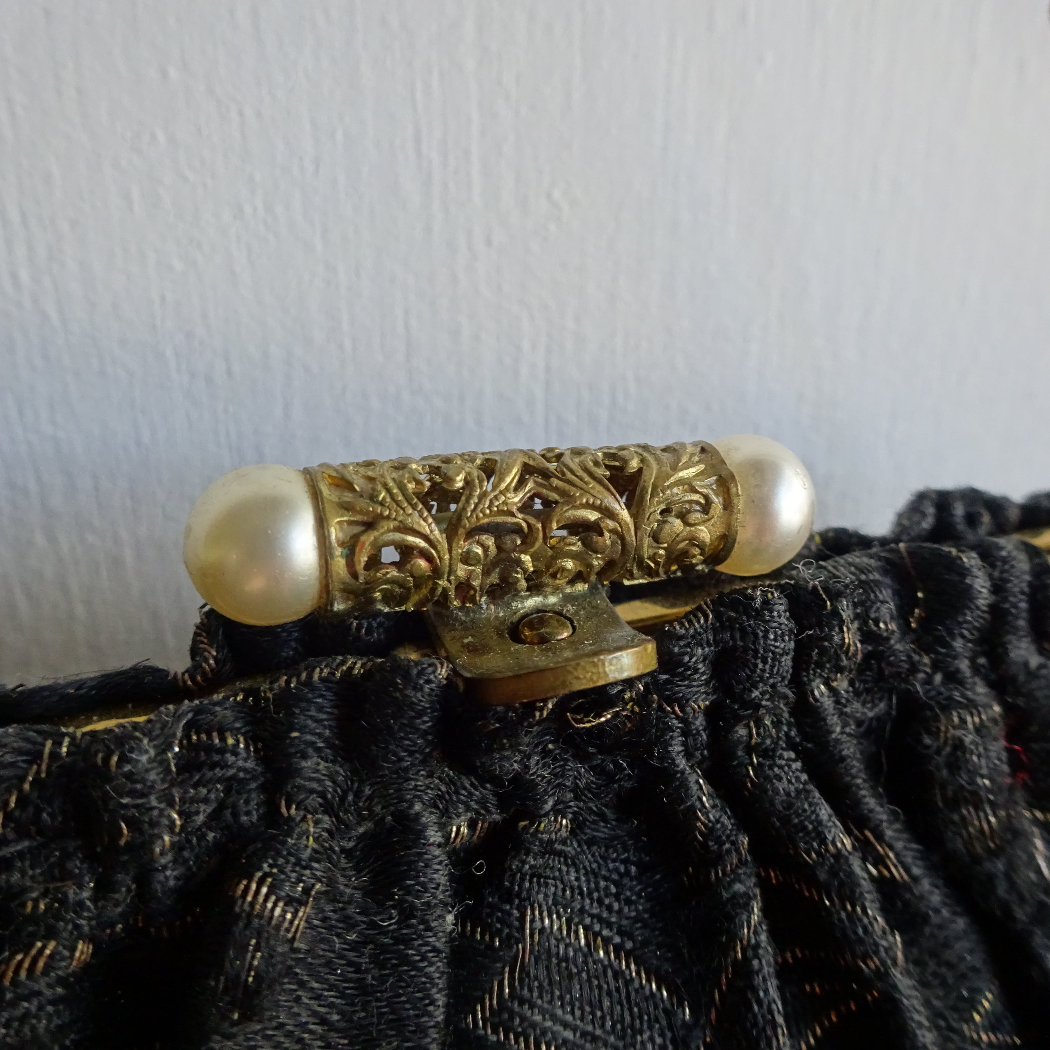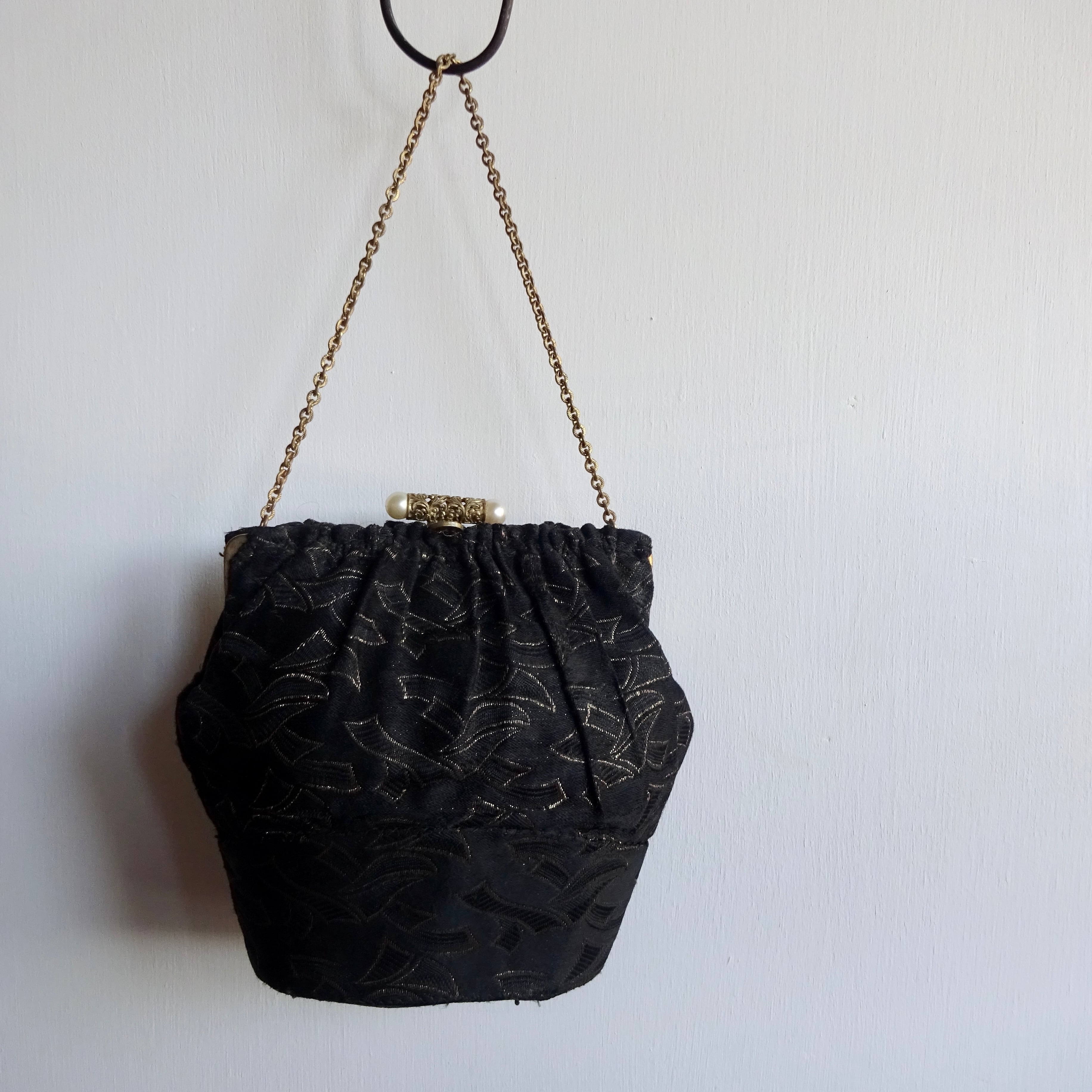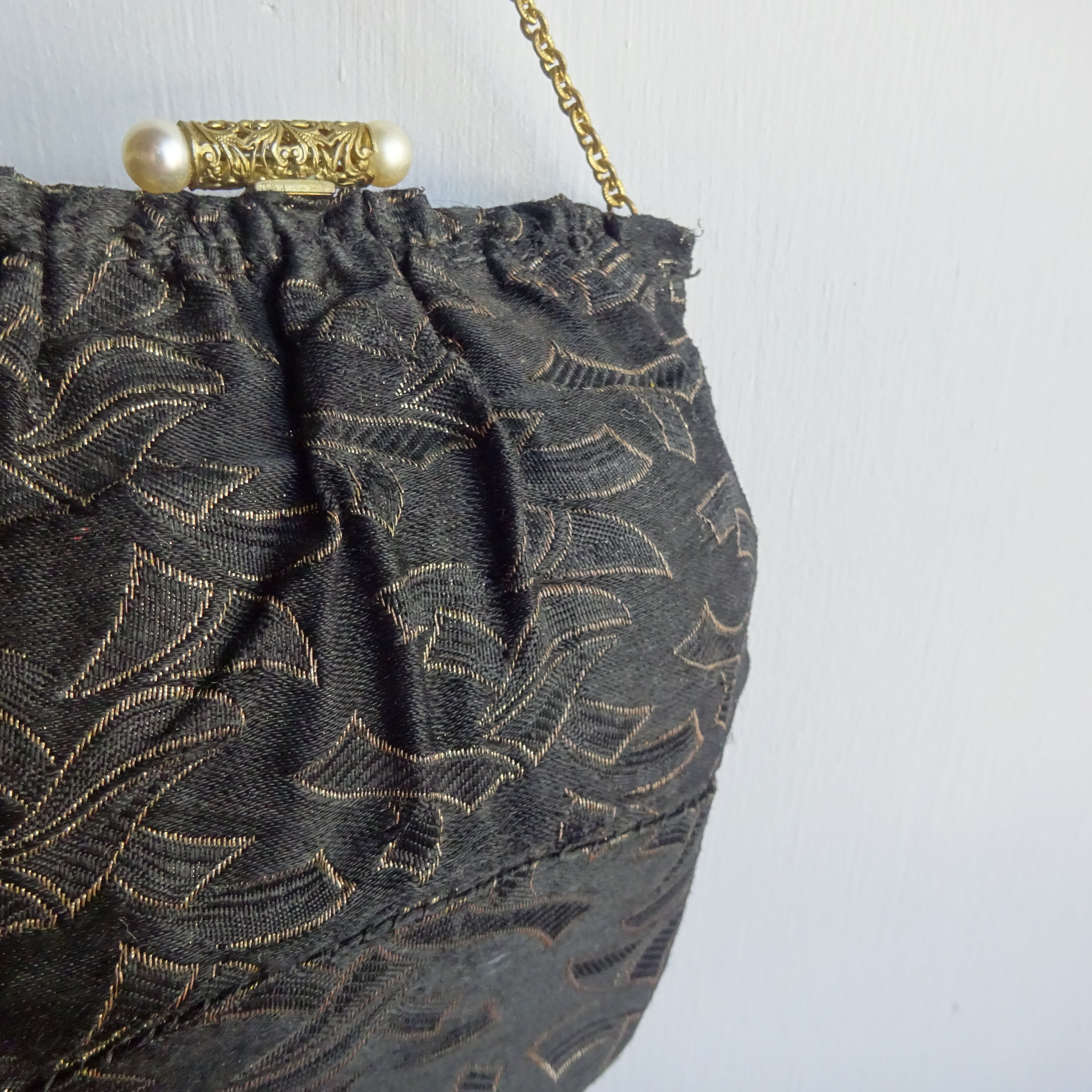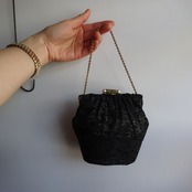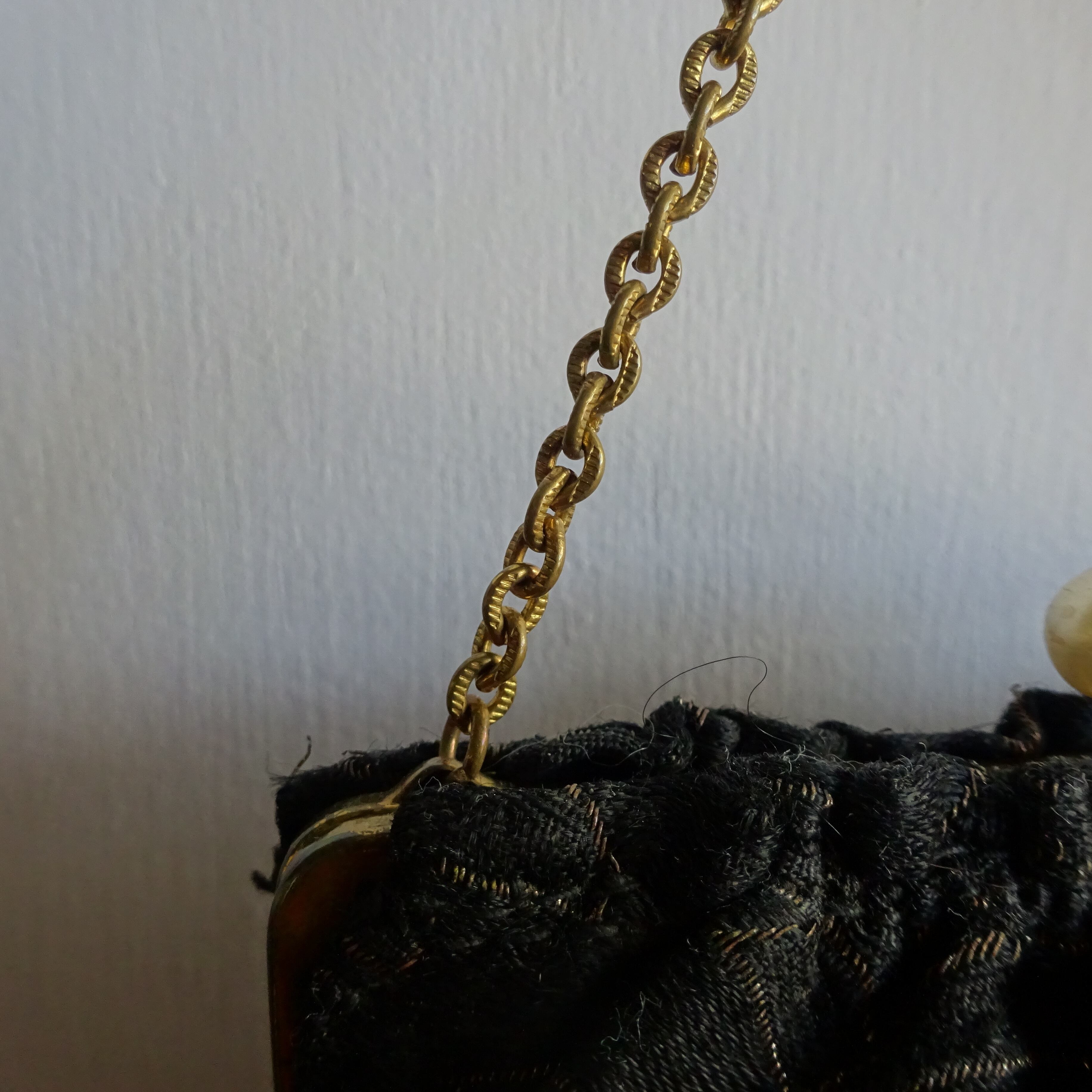 ブラックにゴールドの、リボンテープを散りばめたようなジャガード織りのパース